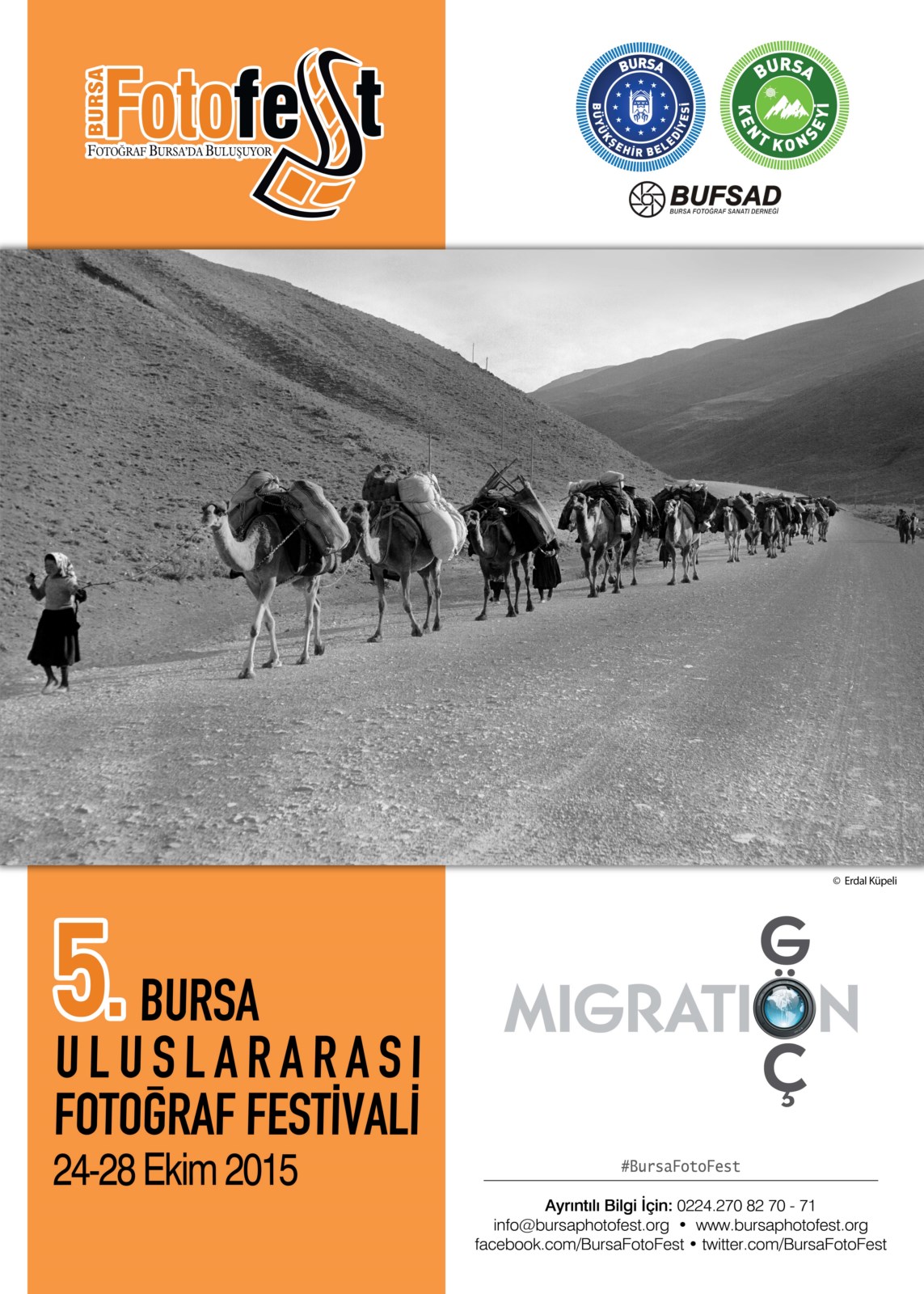 Bursa Büyükşehir Belediyesi, Bursa Kent Konseyi (BKK) ve Bursa Fotoğraf Sanatı Derneği (BUFSAD) işbirliğiyle bu yıl 24-28 Ekim 2015 tarihleri arasında Uluslararası Bursa Fotoğraf Festivali’nin (BursaFotoFest), beşincisi düzenleniyor. ‘Göç’ temasıyla Atatürk Kongre Kültür Merkezi’nde (Merinos AKKM) yapılacak olan BursaFotoFest, sergileriyle yüzbinlerce kişiyi fotoğraf sanatı etrafında buluşturacak.