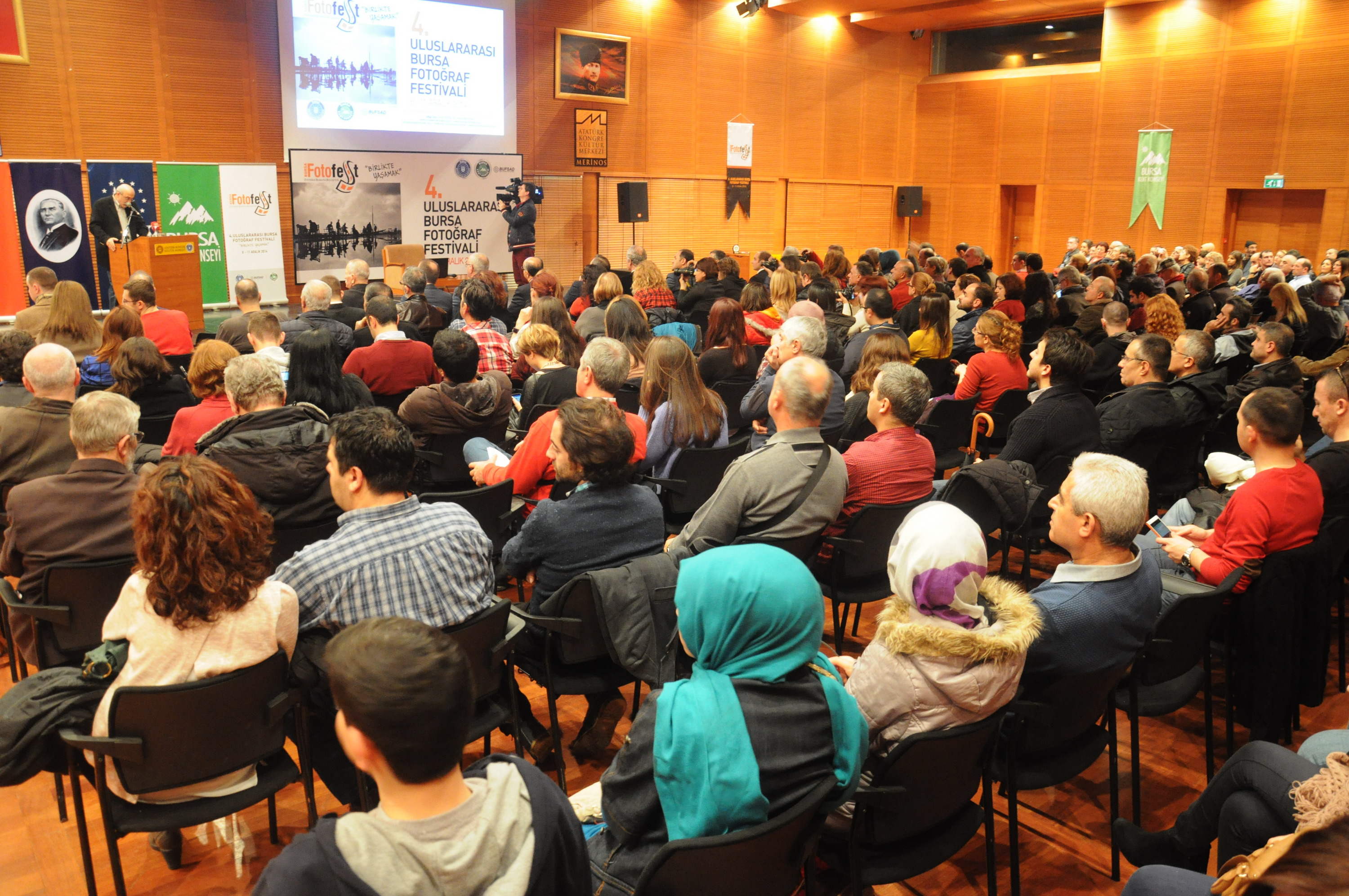 Bursa Büyükşehir Belediyesi, Bursa Kent Konseyi (BKK) ve Bursa Fotoğraf Sanatı Derneği (BUFSAD) işbirliğiyle düzenlenen ‘4. Uluslararası BursaFotoFest, Cumhuriyet Caddesi’ndeki coşkulu festival yürüyüşünün ardından Atatürk Kongre Kültür Merkezi’ndeki (Merinos AKKM) programlarla devam etti.