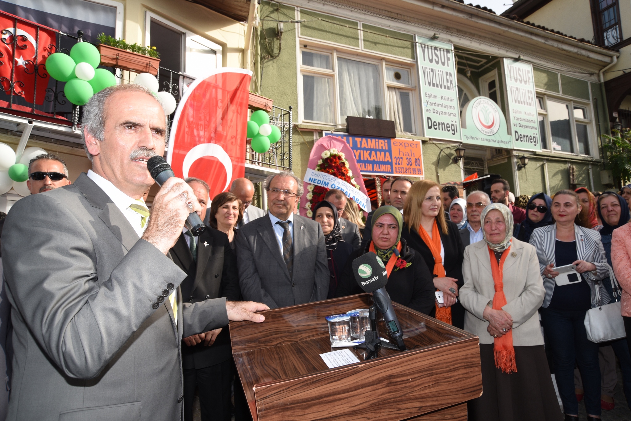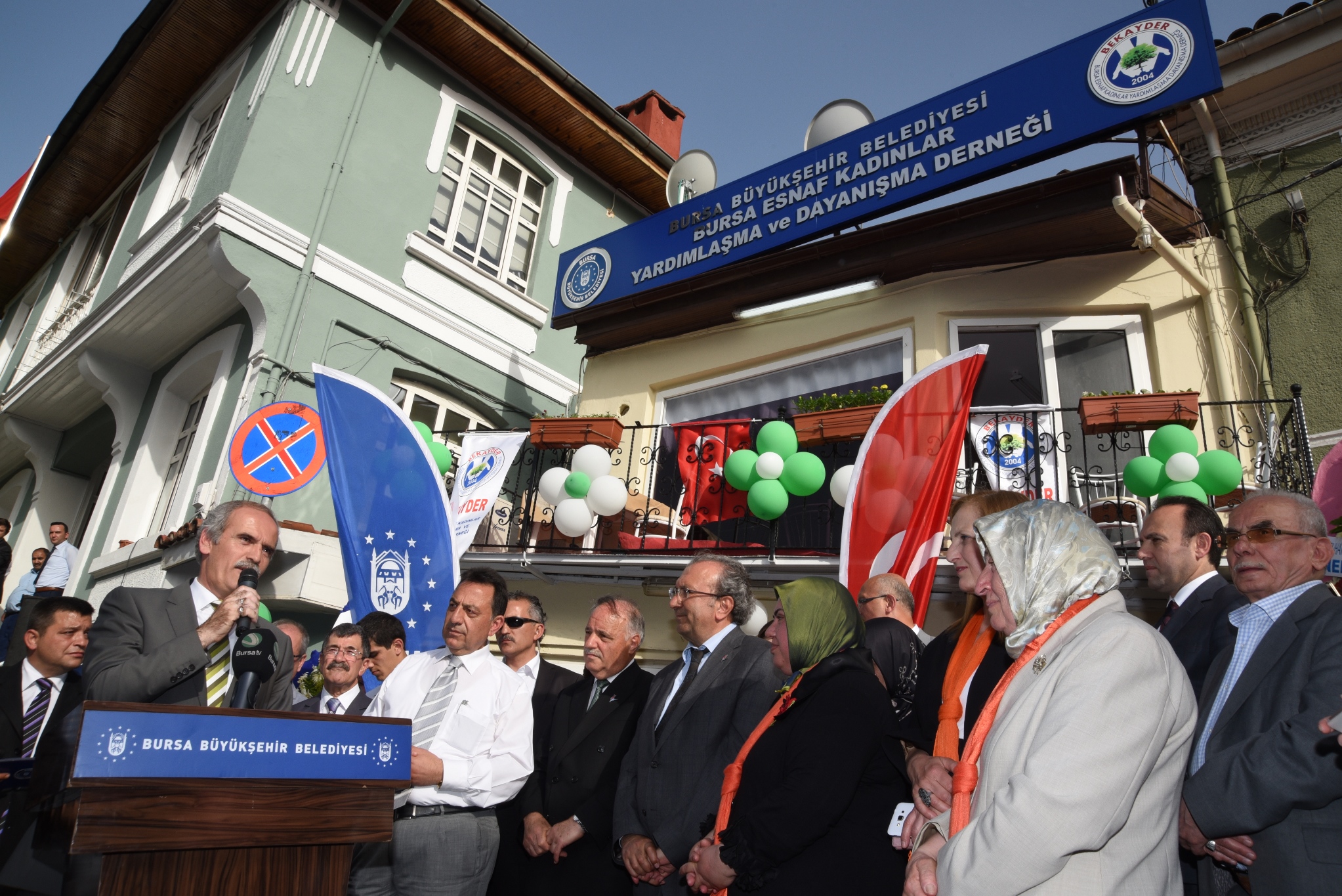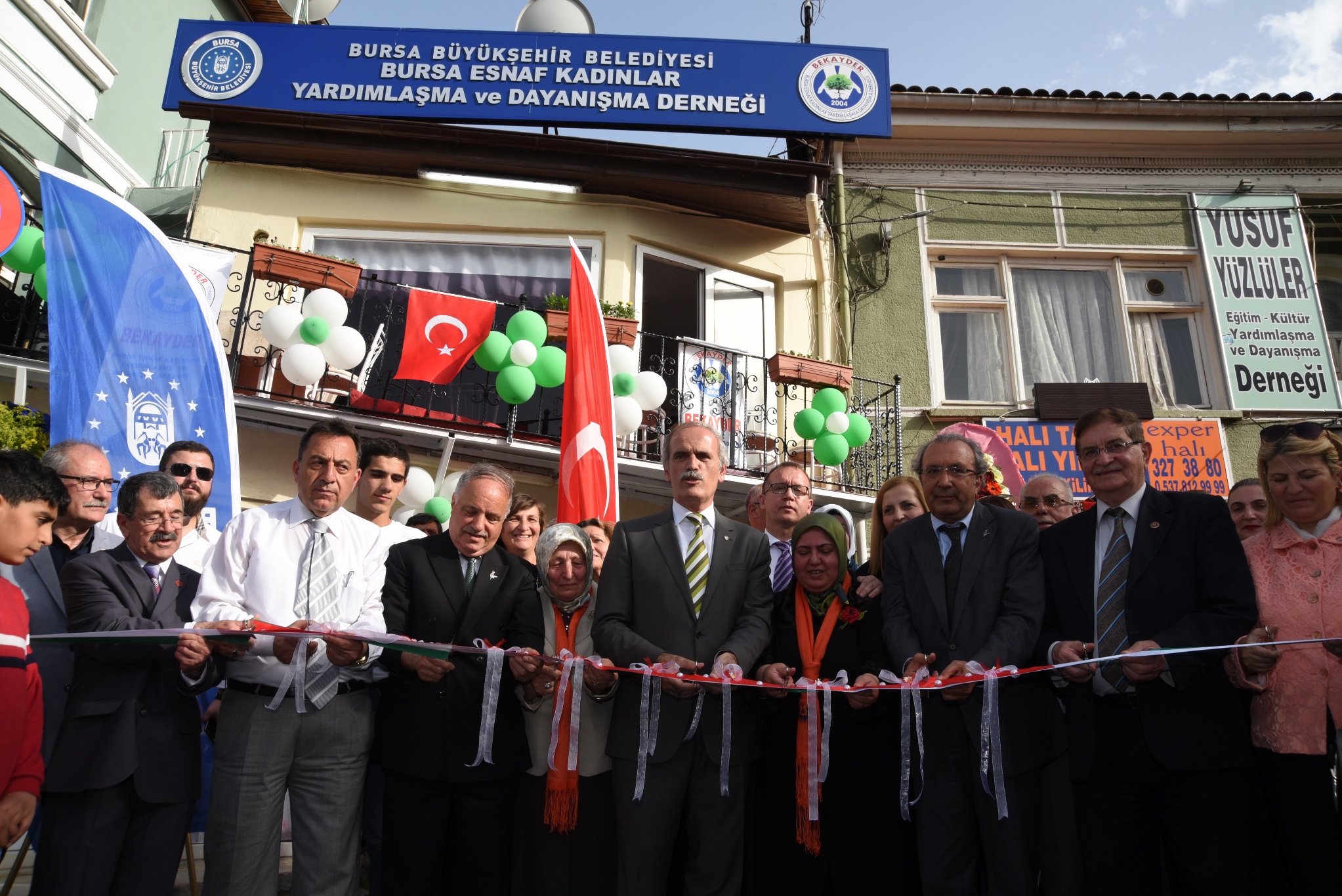 Büyükşehir Belediyesi’nce kiralanan ve Bursa Esnaf Kadınları Yaşatma ve Dayanışma Derneği’nin kullanımına sunulan binanın açılışı yapıldı. Çok sayıda davetlinin iştirak ettiği açılışa; Başkan Altepe, Vali Yardımcısı Ergun Güngör, Bursa Esnaf ve Sanatlar Odaları Birliği Başkanı Arif Tak, Gemlik Belediye Başkanı Refik Yılmaz, Bursa Esnaf Kadınları Yaşatma ve Dayanışma Derneği Başkanı Hacer Özyürek ile Yeşil Mahalle Muhtarı Hasan Basri Yetkin de katıldı.