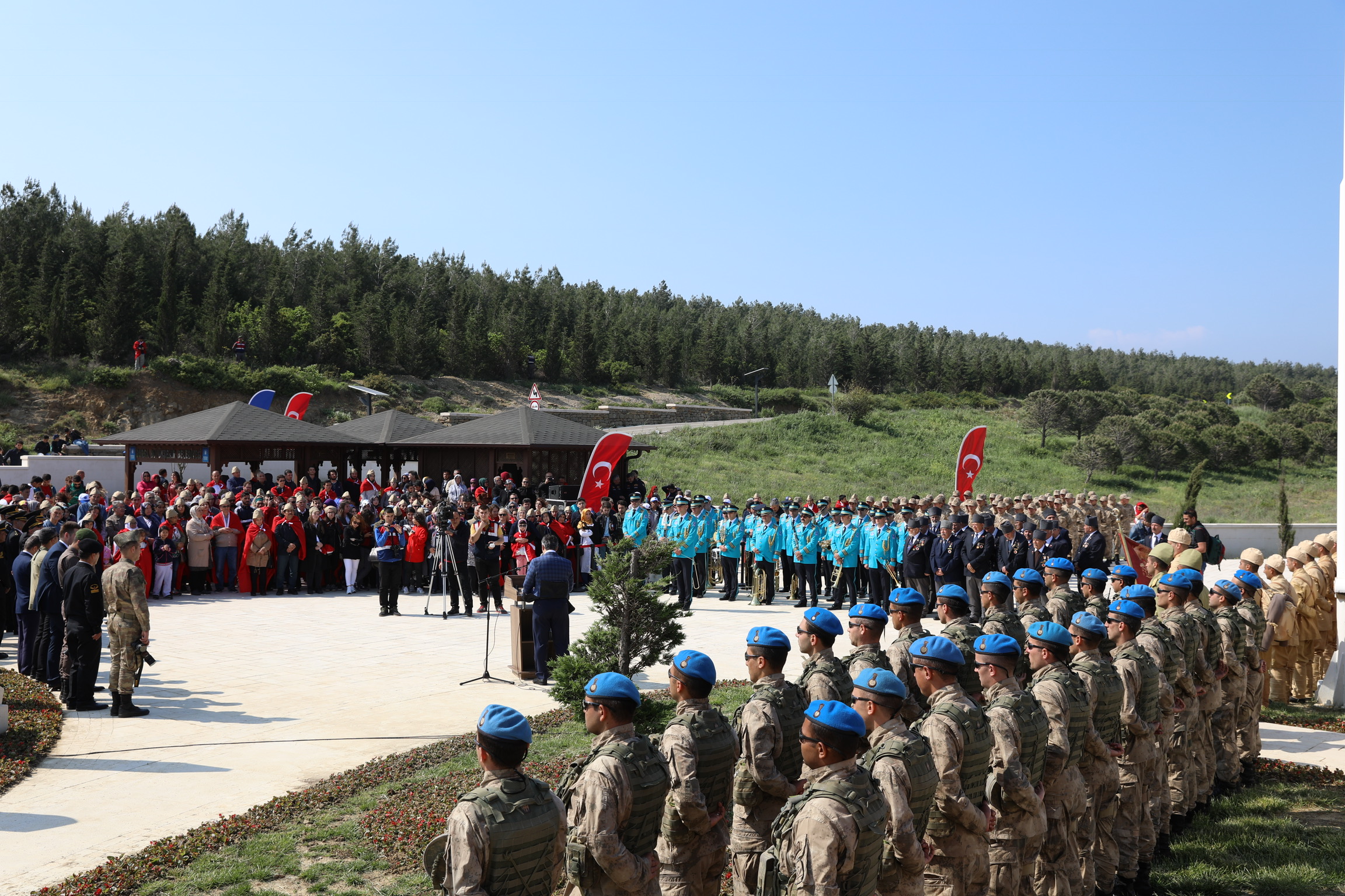 Bursa Büyükşehir Belediyesi tarafından düzenlenerek geçen yıl yeniden ziyaretlere açılan Kireçtepe Jandarma Şehitliği, Çanakkale Zaferi’nin 103. yıldönümünde de misafirlerini ağırladı. Büyükşehir Belediyesi’nin gerçekleştirdiği organizasyonla bir araya gelen yüzlerce Bursalı, 20 otobüsle Gelibolu Yarımadası’nda bulunan şehitliğe çıkarma yaptı. Vatandaşların ellerinde Türk bayrakları kalplerinde heyecanla eşlik ettiği törene Büyükşehir Belediye Başkanı Alinur Aktaş, Bursa Garnizon Komutanı Tuğgeneral Ahmet Hacıoğlu, Çanakkale Jandarma Eğitim ve Alay Komutanı Albay Hüseyin Topuz ve Kıbrıs muharip gazileri de katıldı.