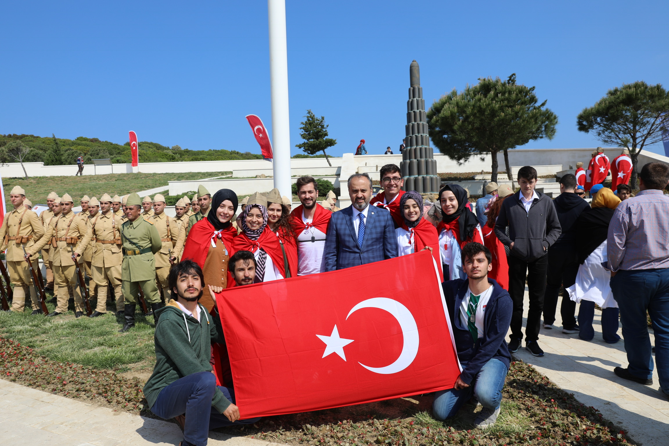Bursa Büyükşehir Belediye Başkanı Alinur Aktaş, anma töreninde yaptığı konuşmada, 1915 ile 1916 yılları arasında gerçekleşen ve 300 bin Osmanlı askerinin şehit düştüğü Çanakkale Zaferi’nin ‘tarihin şerefli sayfalarını dolduran’ kutlu bir destan olduğunu söyledi. Sadece Türkiye tarihini değil dünya tarihini de yakından ilgilendiren, sonuçları itibariyle bütün milletleri etkileyen harpte Osmanlı kuvvetlerinin İngiliz ve Fransız donanmalarına karşı Çanakkale Boğazı’nda destansı bir mücadele verdiğini söyleyen Başkan Aktaş, “Sonuçta yüzbinlerce şehidimiz oldu fakat düşman donanmaları da ağır kayıplar ile geri çekilmek zorunda kaldı. Yakın tarihimizde yaşanan bu zafer, daima hafızalarımızdadır” diye konuştu.