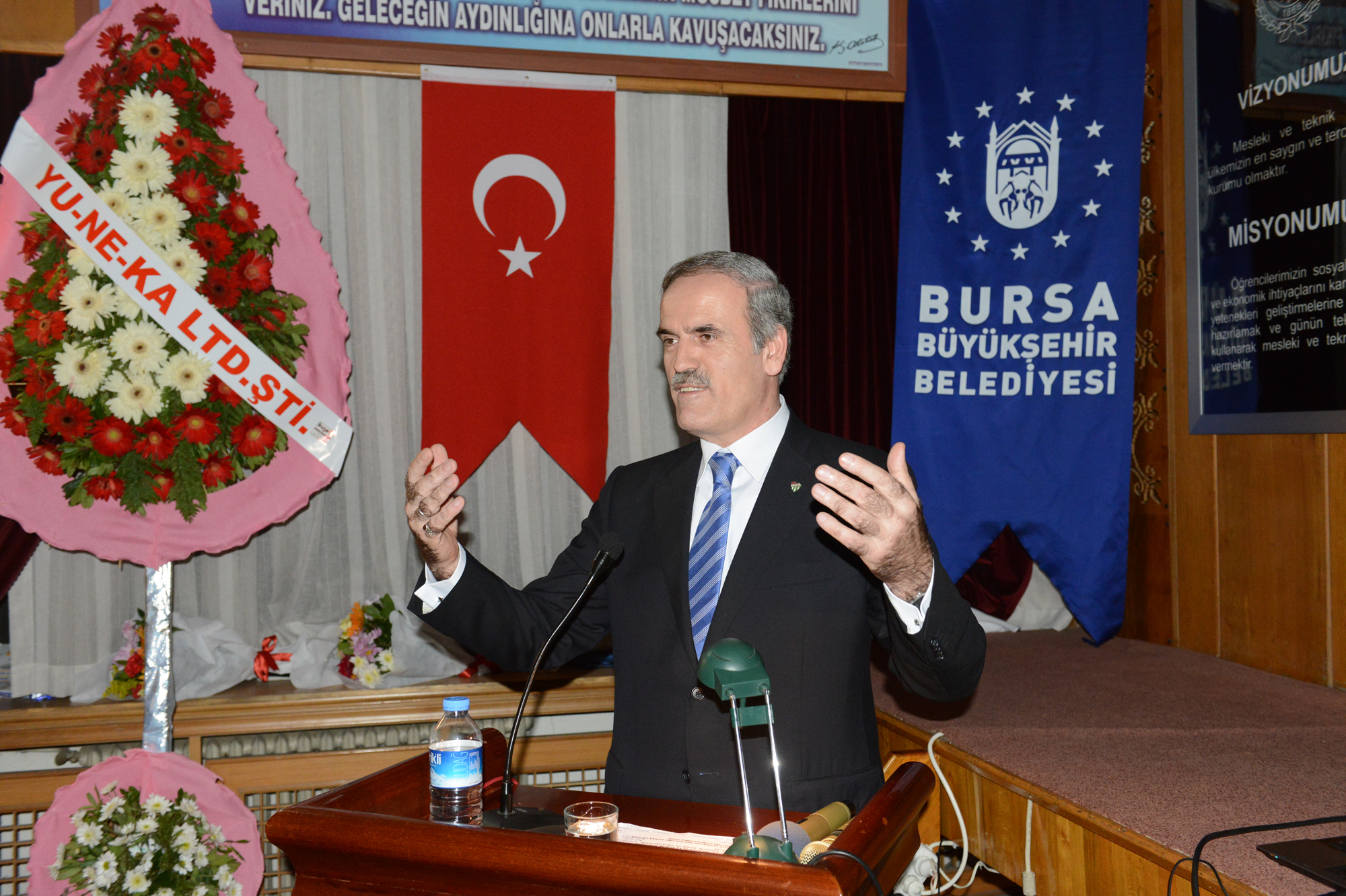 Başkan Altepe; Bursa Büyükşehir Belediyesi´nin öncülüğünde Uludağ Üniversitesi, Sosyal Güvenlik Kurumu, Bursa Tabip Odası, BESOB, DOSABSİAD, MÜSİAD Bursa Şubesi, Bursa Musiki Cemiyeti, Artı Sanat Derneği, Folklor Eğitim ve Araştırma Derneği, MESO ve BUSAT tarafından düzenlenen ´Bir Derste Bursa´ projesinde konuşmacı olarak yer aldı. Başkan Altepe, kendisinin de mezun olduğu Tophane Endüstri Meslek Lisesi´nde disiplinli çalışmayı, ilkeli ve çalışkan olmayı, Türkiye için çok şeyler yapması gerektiğini öğrendiğini söyledi. Bu nedenle tüm öğretmenlerine şükran borçlu olduğunu ifade eden Başkan Altepe, öğretmenlerin insanı eğittiğini, bir heykeltraş için mermer neyse öğretmen için de öğrencinin o olduğunu söyledi.