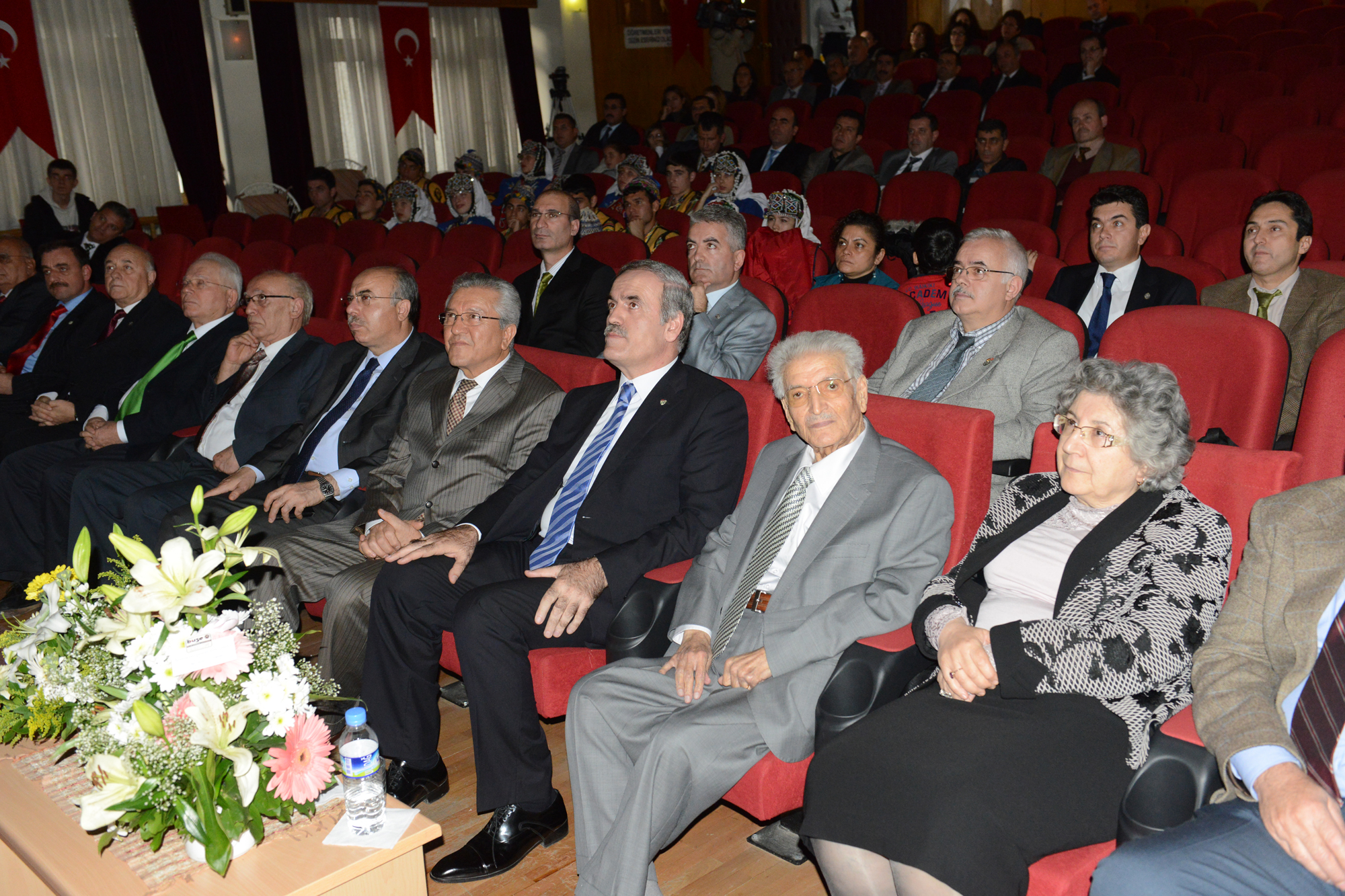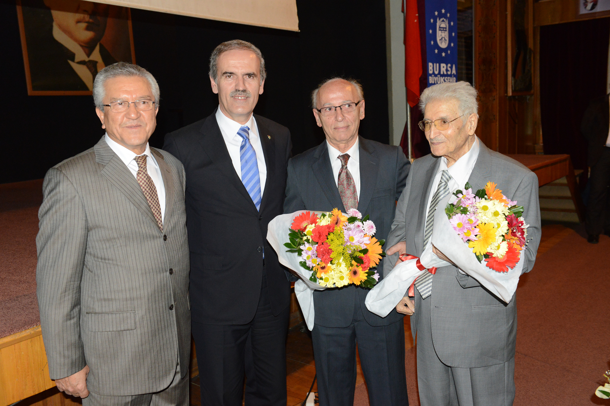 Başkan Altepe, sunumunun ardından okulun eski müdürlerden Orhan Savaşeri ve okulun eski öğretmenlerinden Nurettin Akbal’a çiçek verdi.
