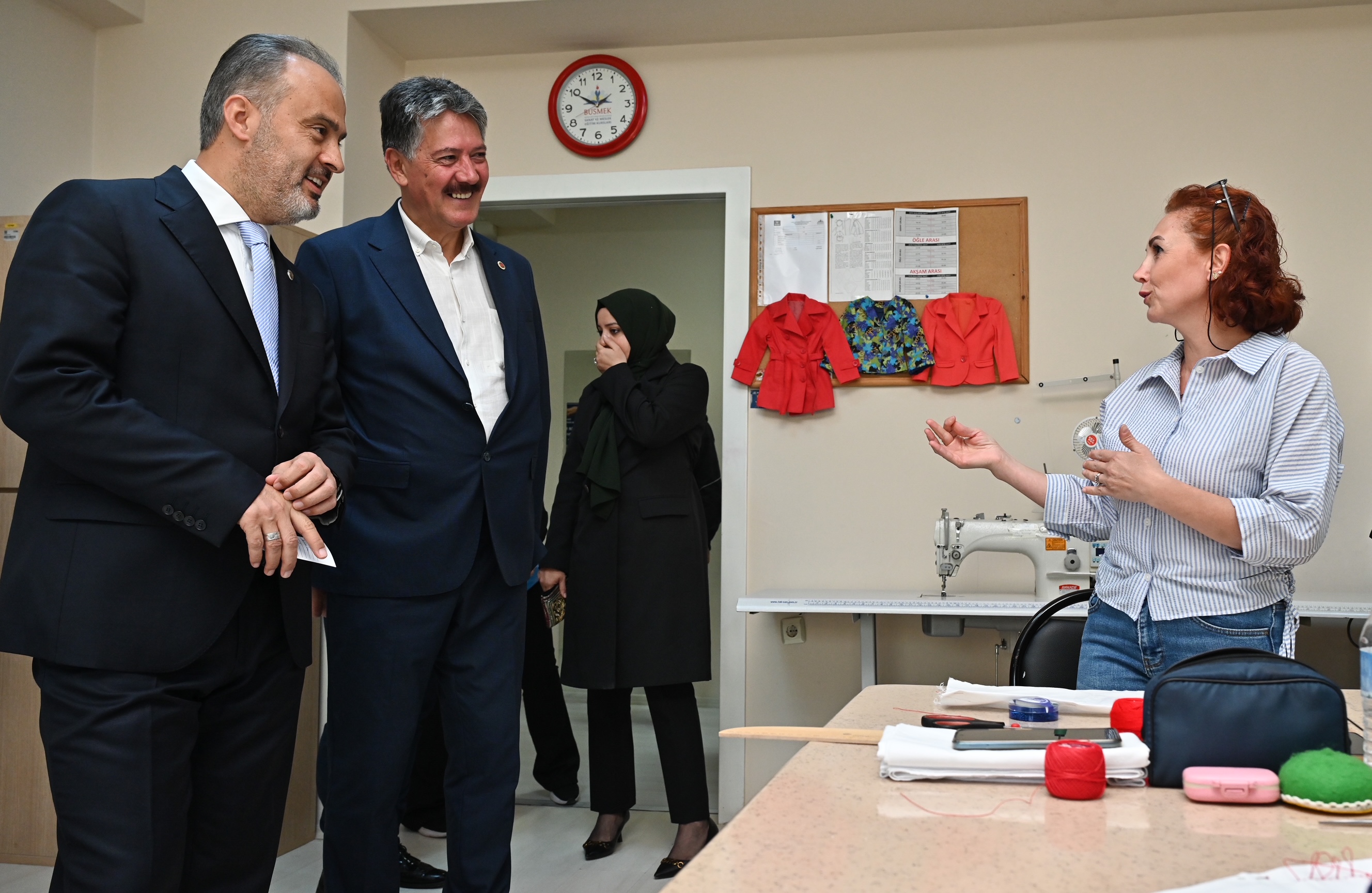 Bursa Büyükşehir Belediye Başkanı Alinur Aktaş da yeni döneme, 11 farklı alanda, 54 branşta, yaklaşık 650 kursiyerle başlayan Yenikaraman Kurs Merkezi’ni ziyaret etti. Bünyesinde 18 sınıf bulunan 3 katlı kurs merkezini gezen Başkan Aktaş, merkezin en fazla rağbet gören yemek ve pasta alanlarındaki branşların uygulandığı ve kapsamlı bir revizyondan geçirilen endüstriyel mutfağı da inceledi. Farklı branşlardaki kursiyerle sohbet eden Başkan Aktaş, “Hayat boyu öğrenme felsefesiyle Bursa’da yılardır hayatlara dokunmaya devam ediyoruz. Burada iş bulanlar oldu, kendini işini kuranlar veya işini geliştirenler oldu. Bu yıl da eğitimlerimiz aynı heyecanla başladı. Yenikaraman Kurs Merkezi’mizde özelle bölge halkı tarafından yoğun ilgi görüyor. Ben tüm kursiyerlerimize başarılı bir eğitim dönemi diliyorum. Yeni eğitim dönemi hayırlı olsun” dedi.