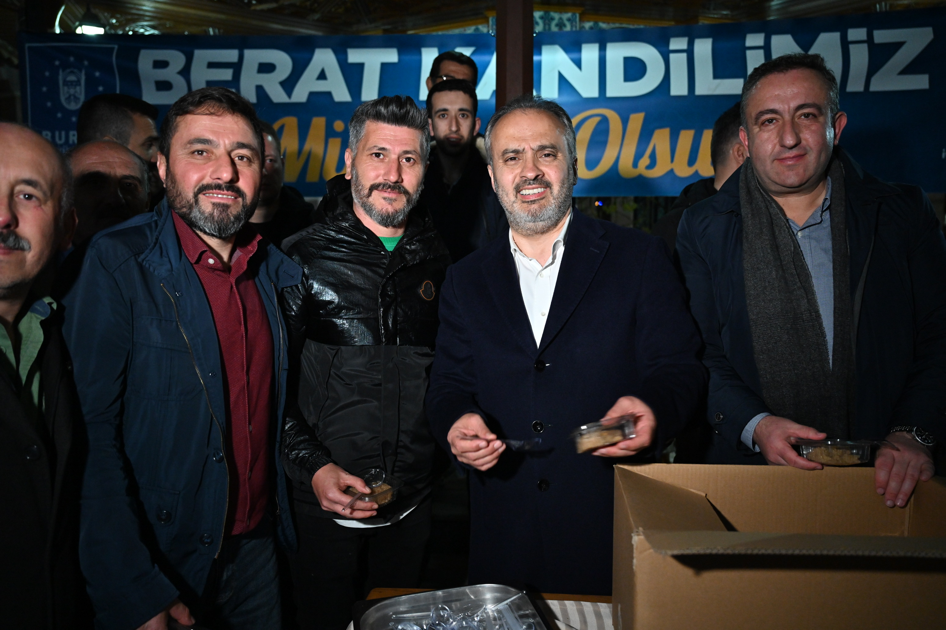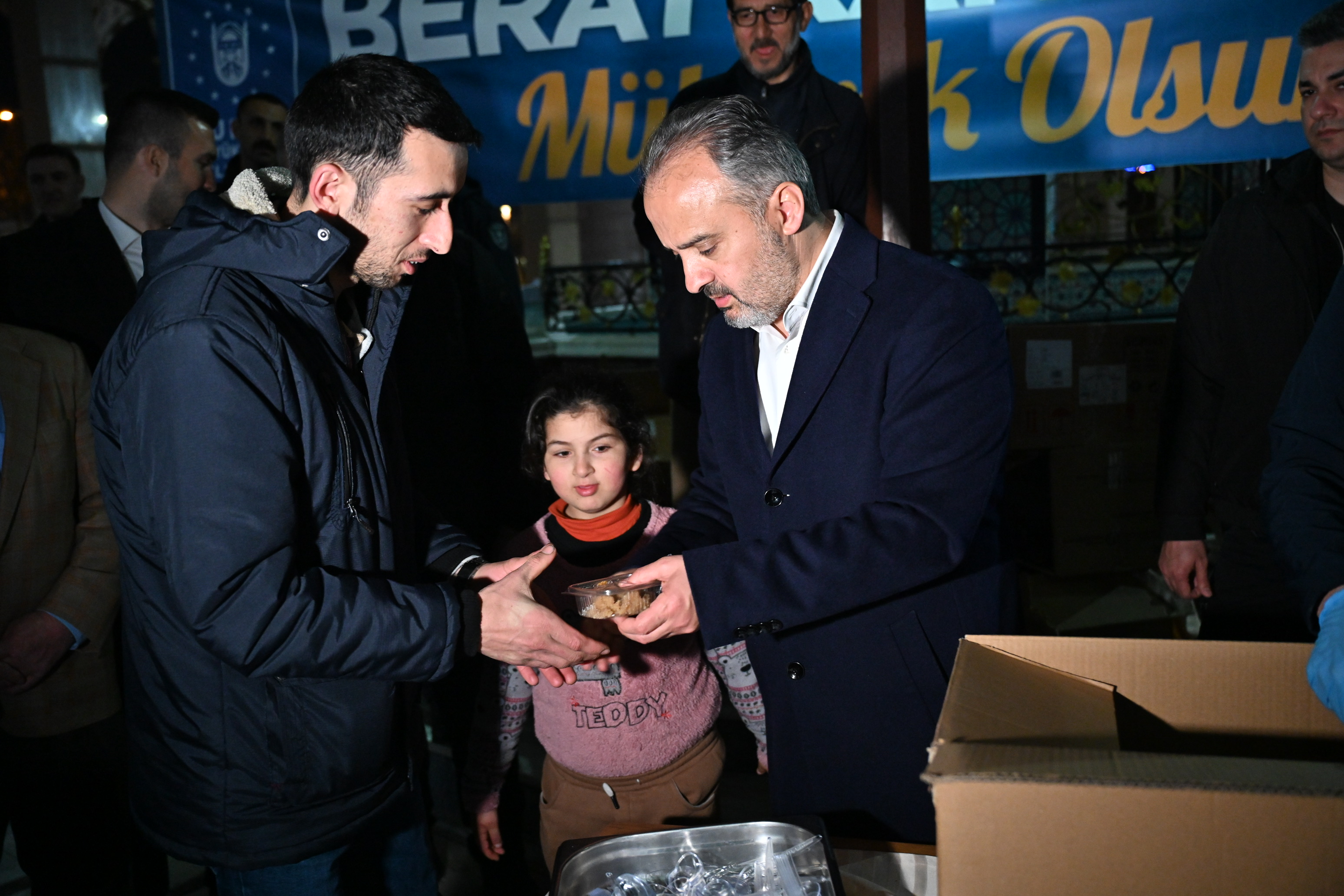 BURSA – Ramazan ayının habercisi olan Berat Kandilinde, Bursalılar selatin camilerine akın etti. Bursa Büyükşehir Belediye Başkanı Alinur Aktaş, Mihraplı Camii’nde bir araya geldiği vatandaşlara helva ikram etti.