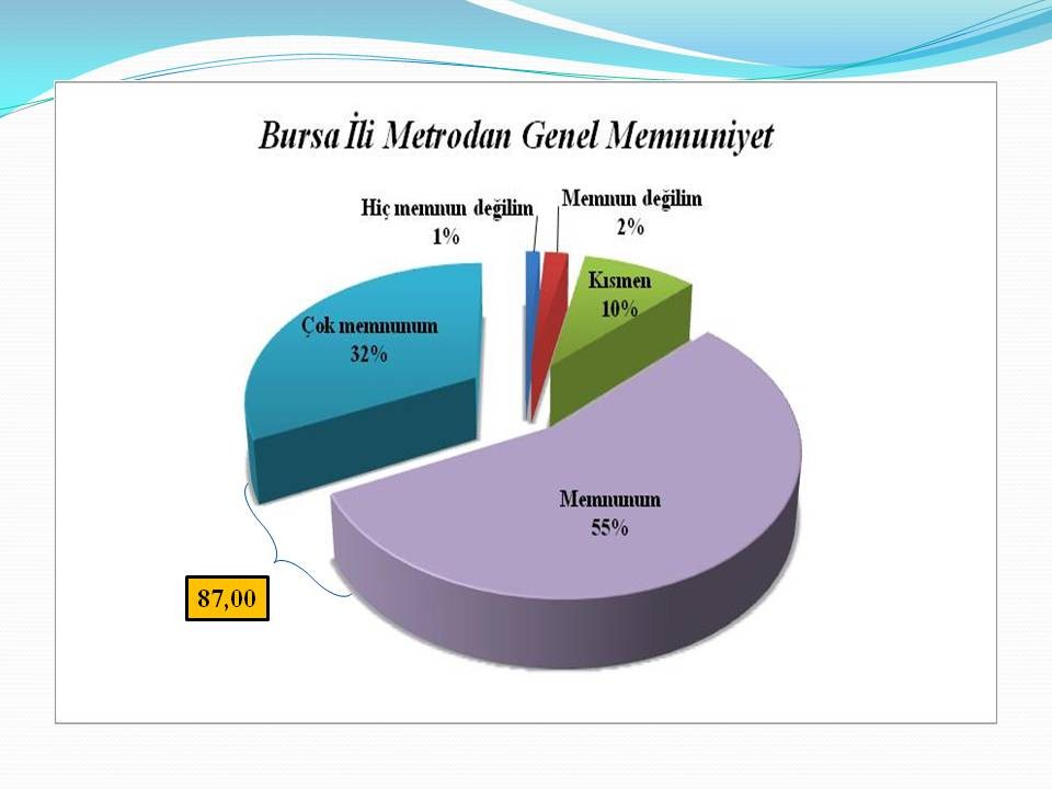 Şehrin doğusu ile batısını birbirine bağlayan metro ise vatandaşların en çok memnun kaldıkları ulaşım hattı oldu. Konforlu olması, sefer sıklığı ve metronun zamanında gelmesi vatandaşların metroyu tercih etmelerindeki en büyük etken oldu. Araştırmaya göre Bursa genelinde vatandaşların yüzde 87’si metrodan memnun olduklarını, yüzde 10’unun kısmen memnun olduğu, yüzde 1’inin ise memnun olmadığı, yüzde ikisinin de hiç memnun olmadığı ortaya çıktı.
