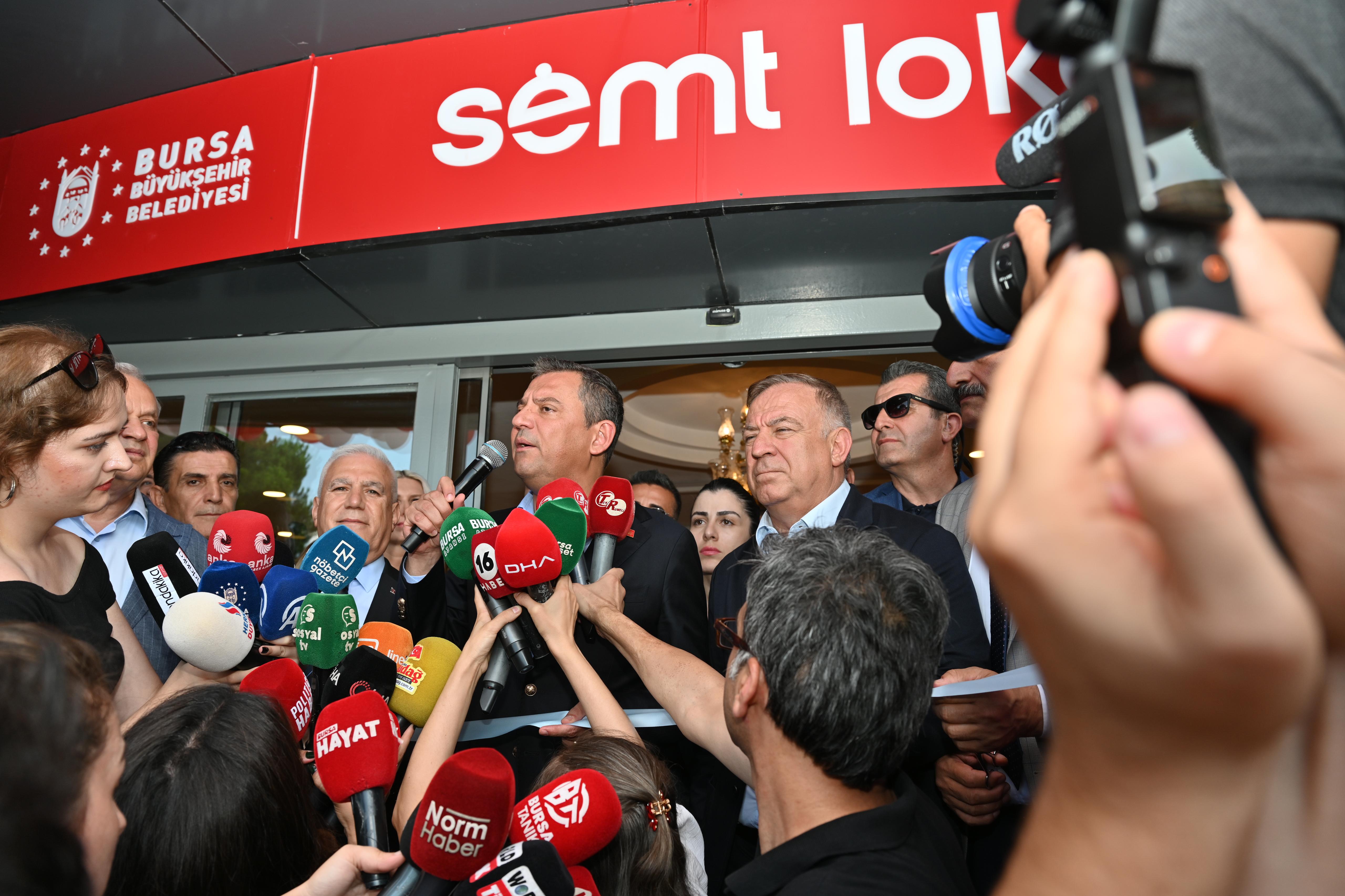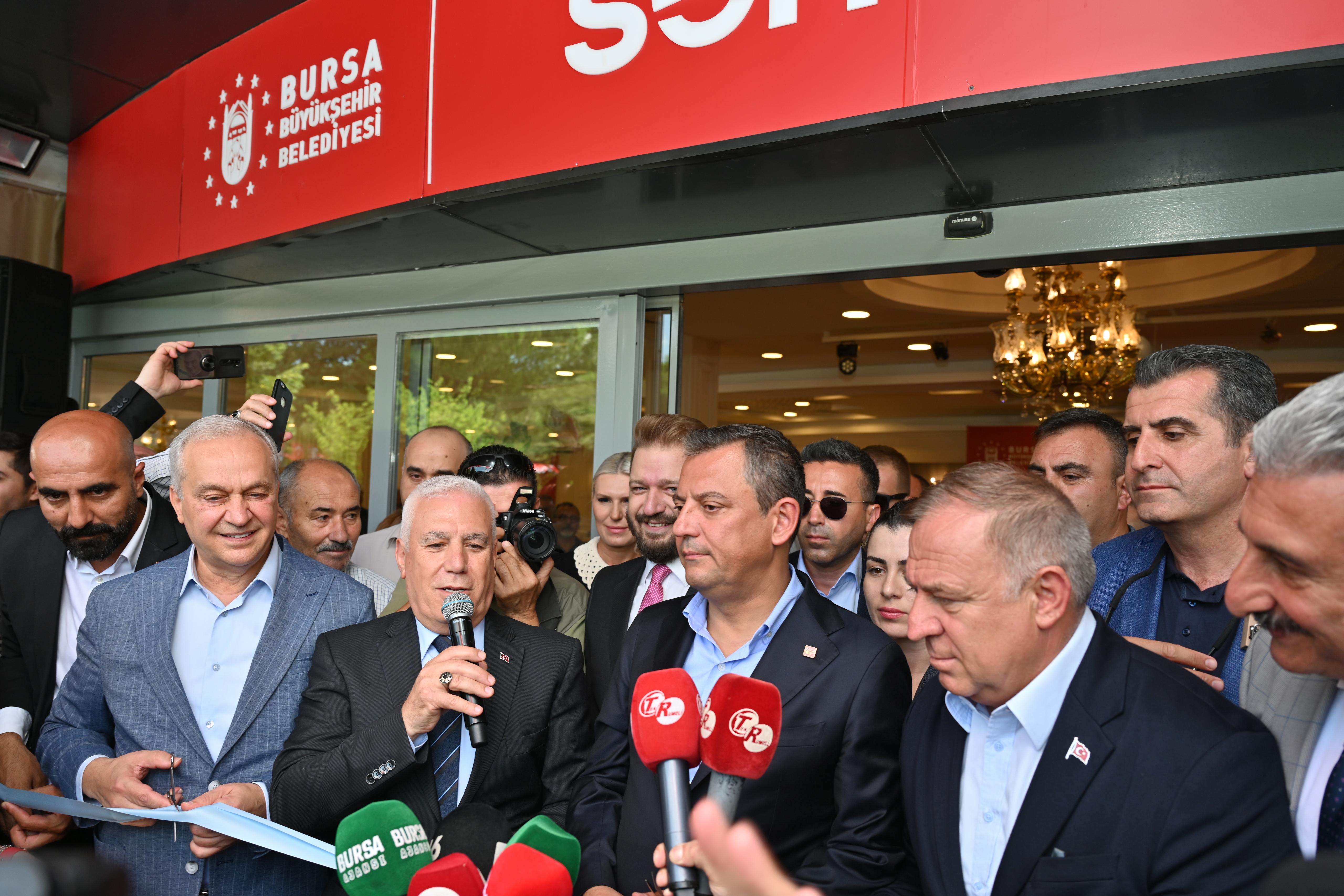 Bursa Büyükşehir Belediye Başkanı Mustafa Bozbey, Semt Lokantaları’nın ilkinin açılışını CHP Genel Başkanı Özgür Özel’in katılımıyla yapmaktan büyük mutluluk duyduklarını söyledi. Başkan Bozbey, “Semt Lokantası’nda 4 çeşit yemeği 60 liradan vereceğiz. Vatandaşlarımız 11.30-15.00 saatleri arasında buradan faydalanabilecek. Bursa Büyükşehir Belediyesi olarak halkımızın, özellikle ihtiyaç sahiplerinin yanında olmaya devam edeceğiz. Bugün Semt Lokantası’nda yemeklerimiz ücretsiz verilecek” dedi.
