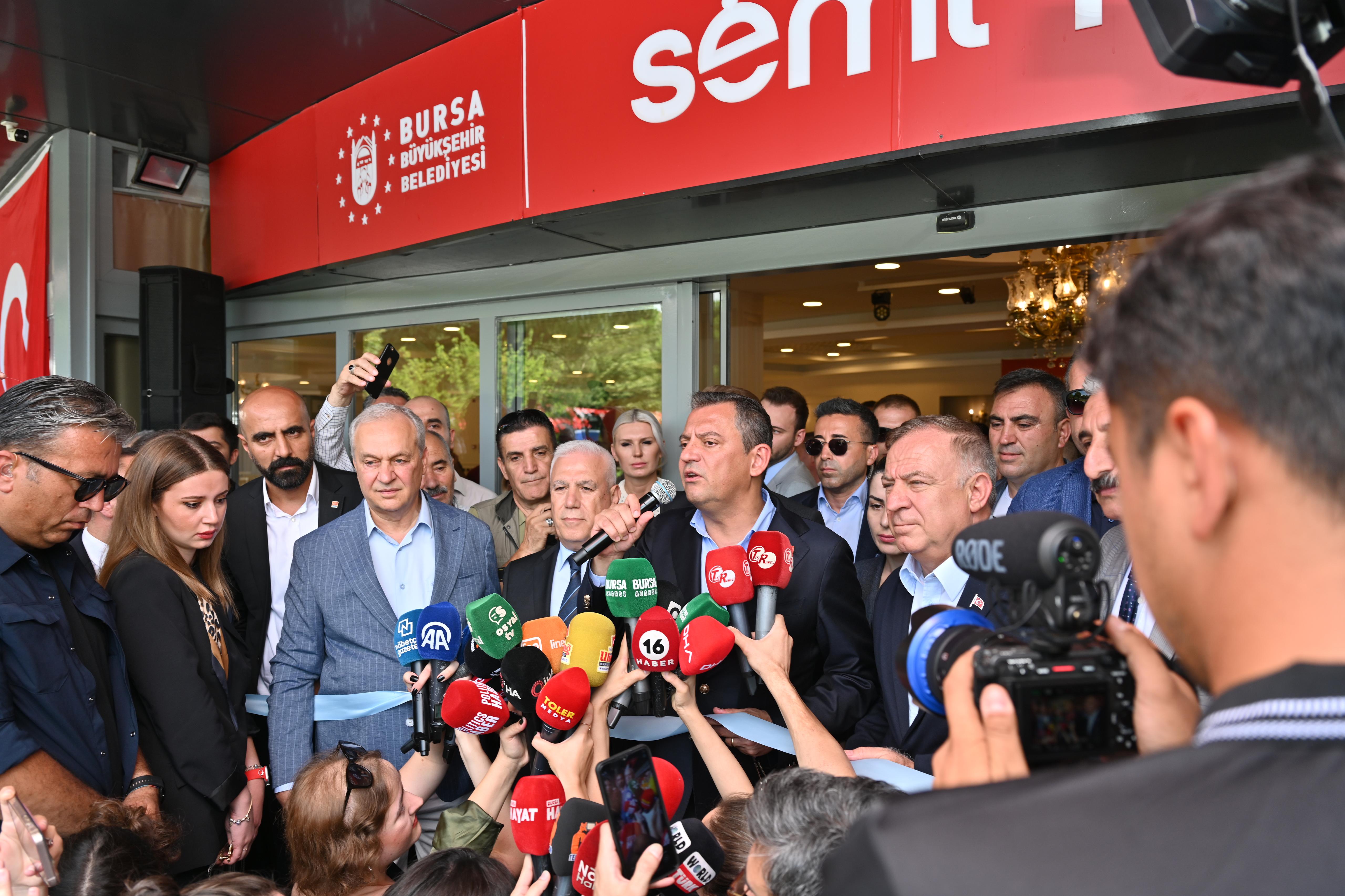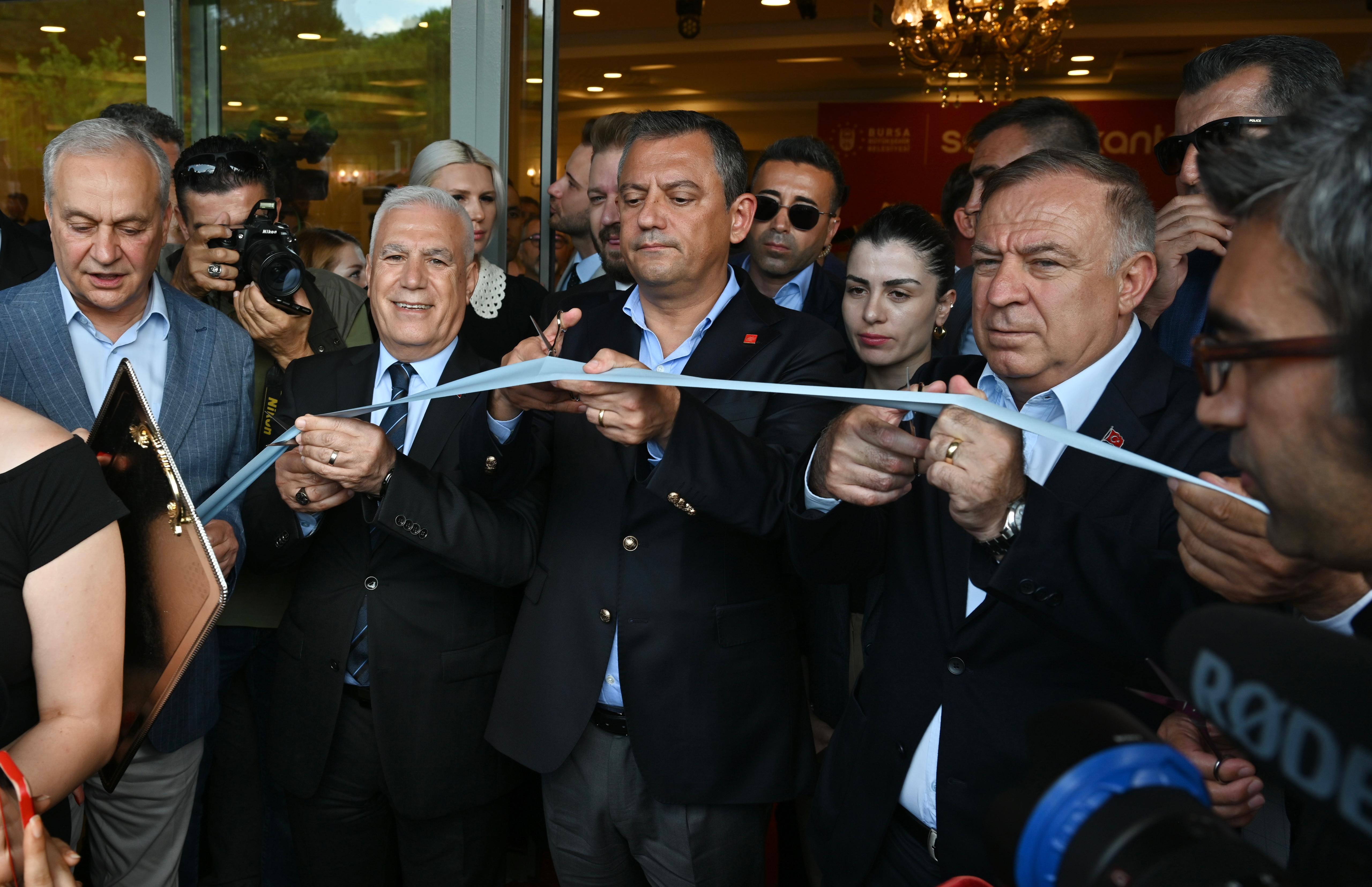 BURSA – Bursa Büyükşehir Belediyesi tarafından halkın uygun fiyata ve sağlıklı yemek yiyebilmesi amacıyla başlatılan ‘Semt Lokantaları’ projesi, CHP Genel Başkanı Özgür Özel’in de katıldığı törenle Merinos Parkı’nda hayata geçirildi. 4 çeşit yemeğin 60 TL’den verileceğini açıklayan Başkan Mustafa Bozbey, “Halkımızın, özellikle ihtiyaç sahiplerinin yanında olmaya devam edeceğiz” dedi.
