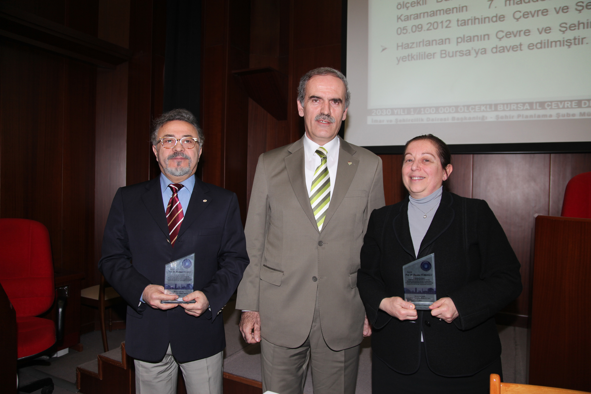 Başkan Altepe, sunumun ardından İl Çevre Düzeni Planı Proje koordinatörü İTÜ Mimarlık Fakültesi Şehir ve Bölge Planlaması Bölümü Başkanı Prof.Dr. Handan Türkoğlu ile Prof.Dr. Mehmet Ocakçı’ya plaket verdi.