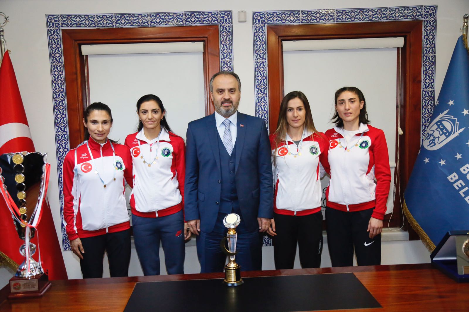 BURSA – Büyükşehir Belediye Başkanı Alinur Aktaş, Türkiye’yi, Portekiz’de başarıyla temsil ederek ‘Avrupa 3.’sü olan Bursa Büyükşehir Belediyespor Kulübü Atletizm Kadın takımını altınla ödüllendirildi.