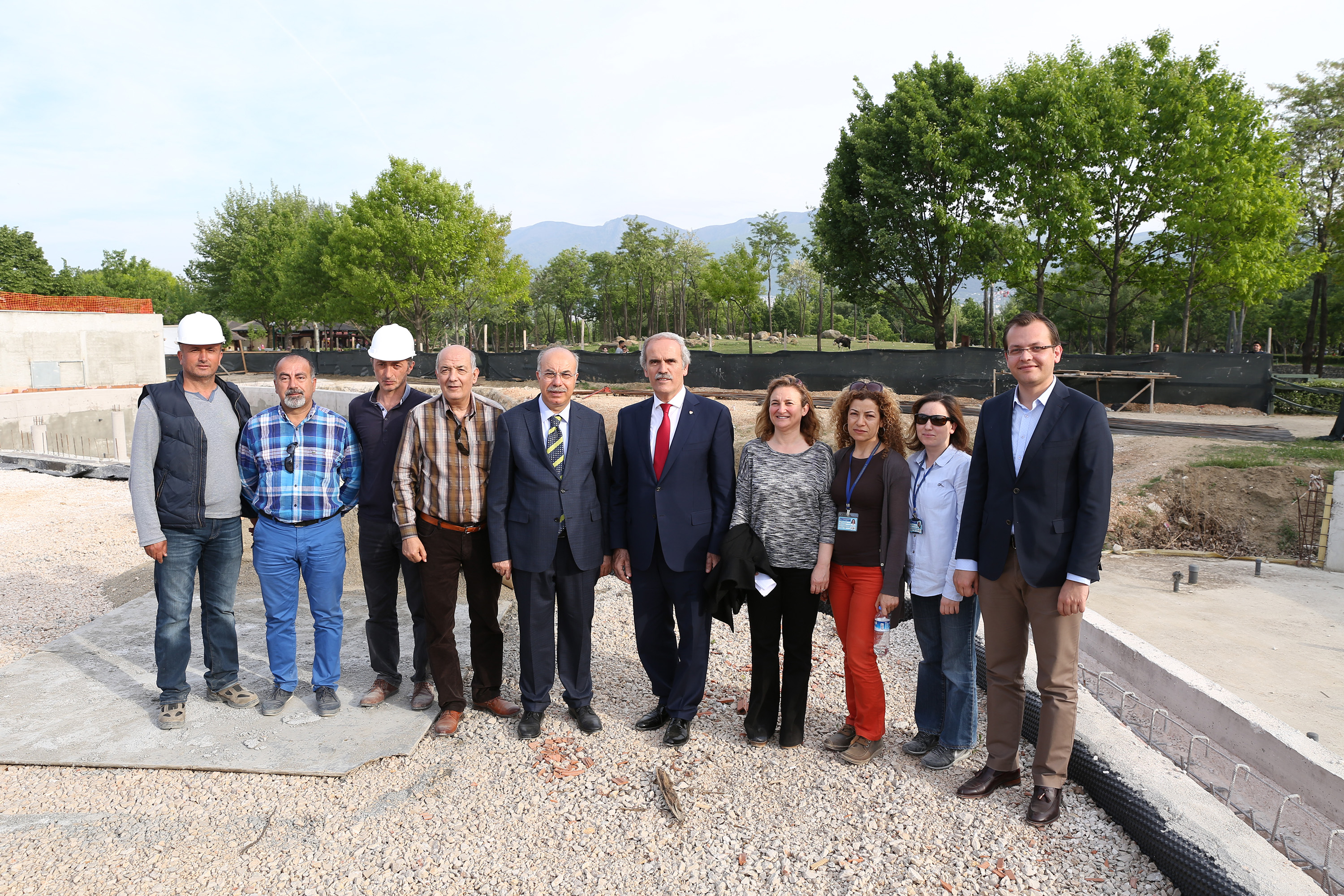 Kaba inşaatı biten ve ince işçilikleri başlayan barınak alanlarında incelemelerde bulunan Büyükşehir Belediye Başkanı Recep Altepe, yeni hayvan türleriyle birlikte Bursa Hayvanat Bahçesi’nin adeta bir ‘Afrika Savanası’ görünümünü andırdığını söyledi. Hayvanat bahçelerinin çağdaş kentlerin en önemli argümanlarından biri olduğunu, şehir hayatında yetişen bireylerin kurulan bu alanlarla birlikte doğayı ve hayvanları tanıdığını, stres attığını belirten Başkan Altepe, Büyükşehir Belediyesi olarak Bursalıların da bu imkanlardan geri kalmaması konusunda gerekli tüm tedbirleri aldıklarını ifade etti. Hayvanat bahçesinin sürekli genişlediğini, açıldığında 60 olan tür sayısının 111’e çıktığını, 490 olan hayvan sayısının da 1110’ları bulduğunu kaydeden Başkan Altepe, eklenen fog ve penguenlerle birlikte bu istatistiklerin artış göstereceğini belirtti. Fog ve penguenlere ait yeni ilave bölümlerin tamamlanmak üzere olduğunu, 3 dönümlük alanda yaklaşık 6 milyon TL’ye mal olan düzenlemeler yaptıklarını vurgulayan Başkan Altepe, “Burada soğuk iklimlerde yaşayan fog ve penguenler bulunacak. Dolayısıyla su sıcaklığının kontrol altında tutulması gerekiyor. Proje alanı altında gerekli sistemlerimiz kuruldu. Soğutma açısından sıkıntımız yok. Çünkü burada yaşayan hayvanların 13 derecenin altında bulunması gerekiyor. Onun için sürekli soğutma gerçekleşecek” diye konuştu.