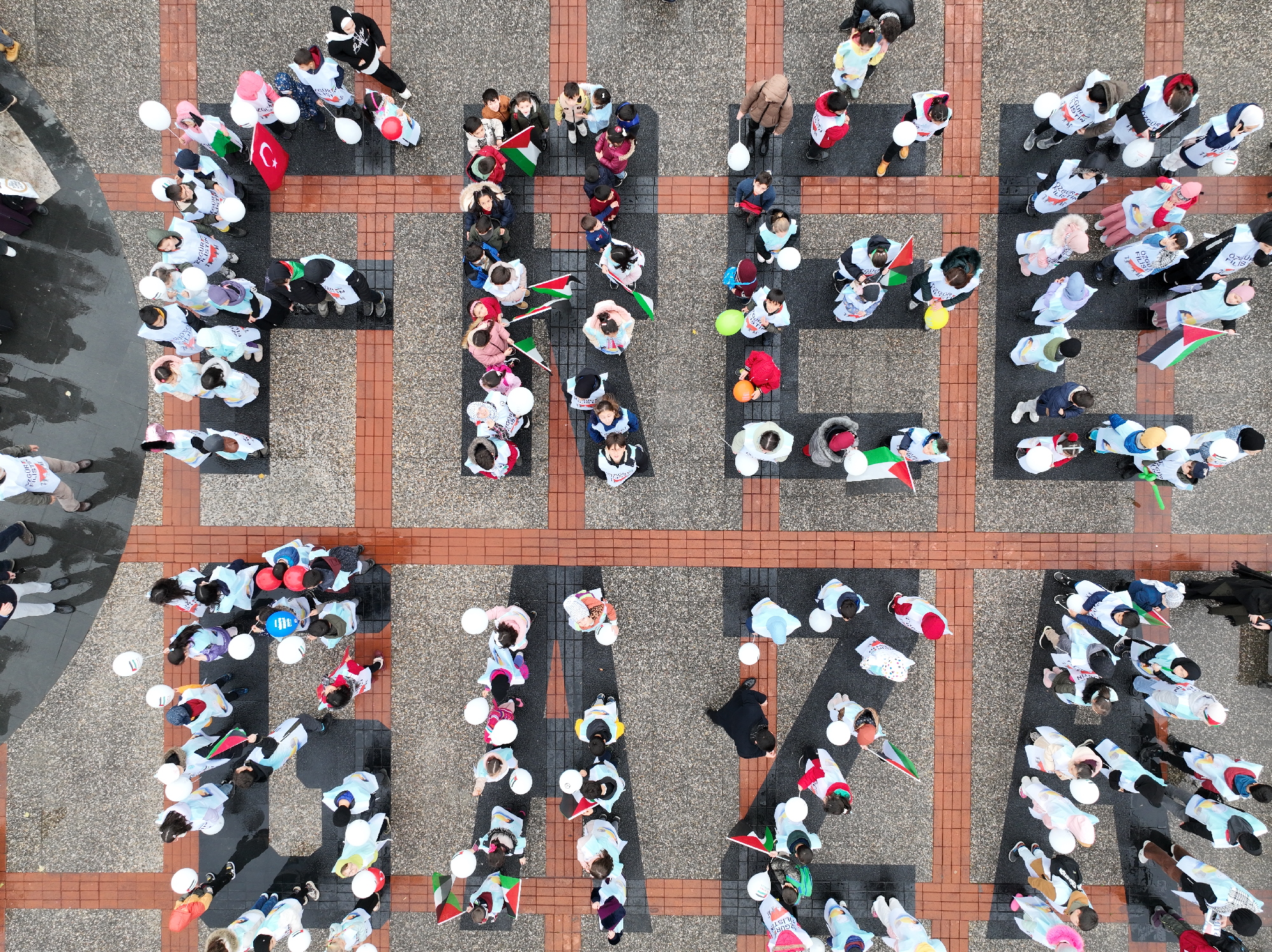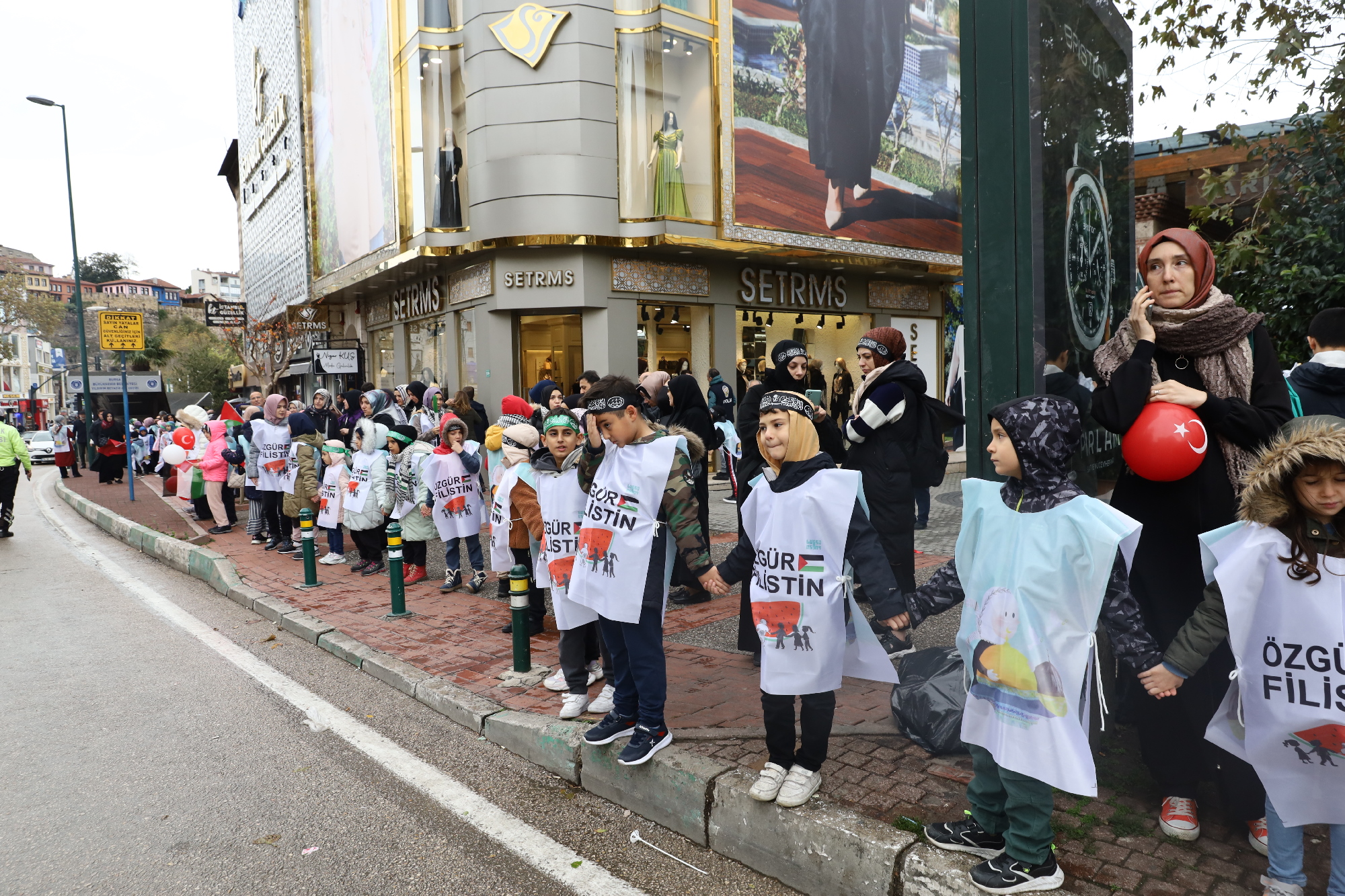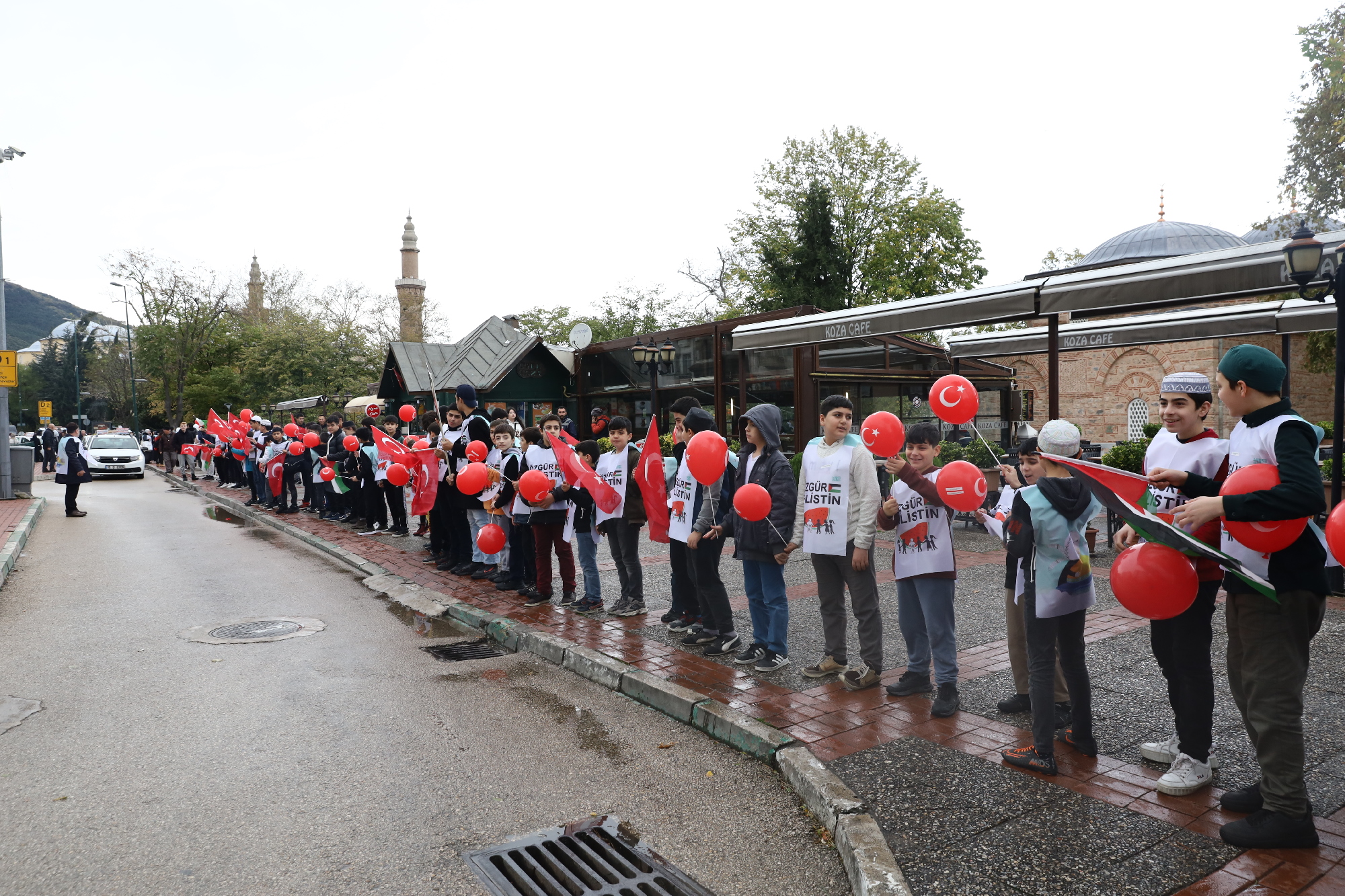 Bursa’da 5 bin çocuk el ele verdi, 1,5 kilometrelik sevgi zinciriyle İsrail’i protesto etti