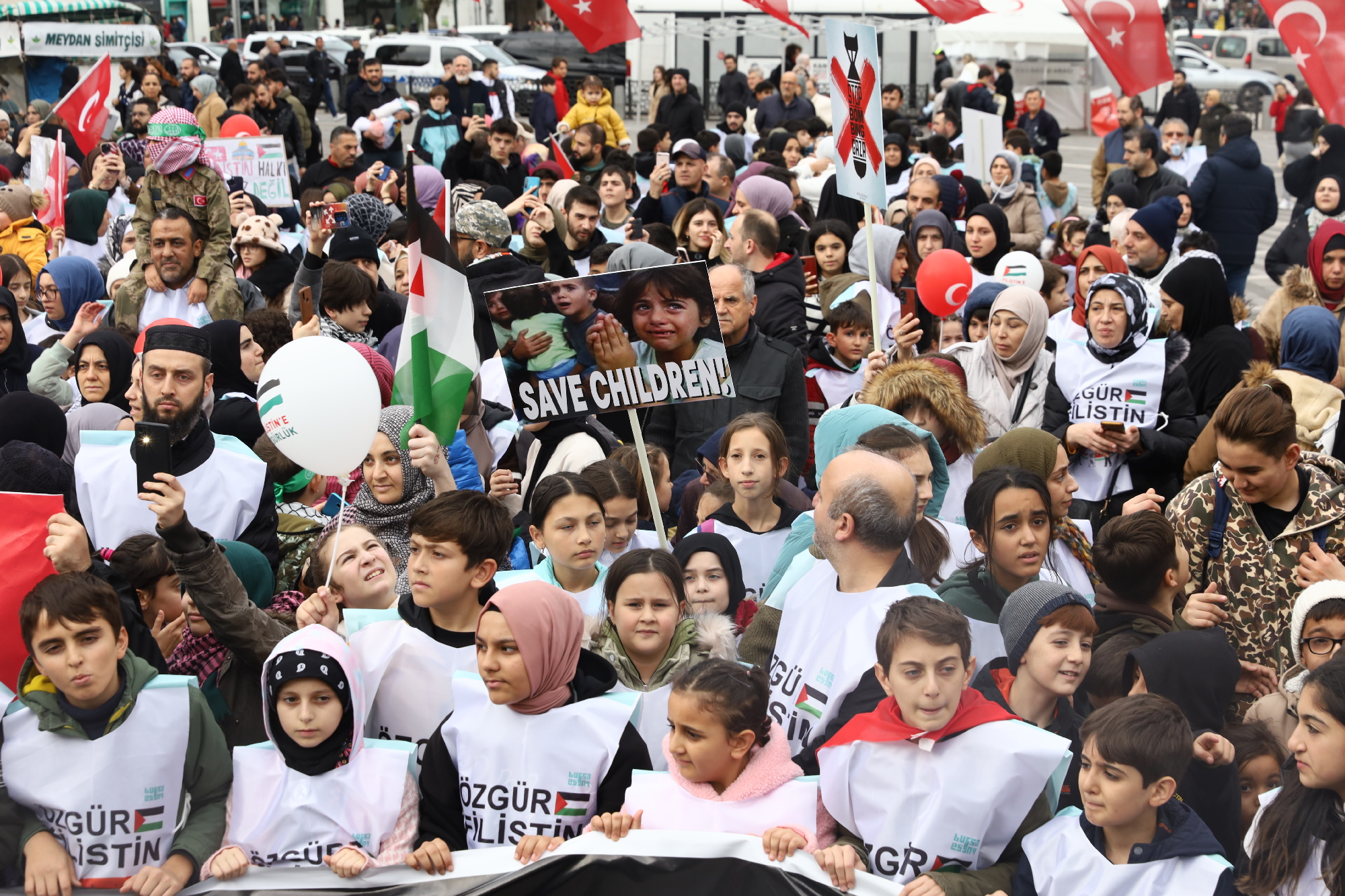 BURSA – Bursa Büyükşehir Belediyesi’nin katkılarıyla Bursa Gönüllü Kuruluşlar Platformu tarafından düzenlenen etkinlikle yaklaşım 5 bin çocuk el ele vererek, 1,5 kilometrelik güzergahta sevgi zinciri oluşturdu. Ellerinde Filistin bayrakları, dövizler ve balonlarla yürüyüşe geçen çocuklar, 15 Temmuz Demokrasi Meydanı’nda toplanıp, soykırımcı İsrail’i protesto etti.