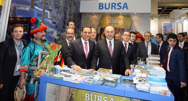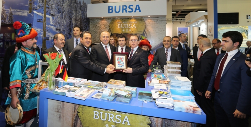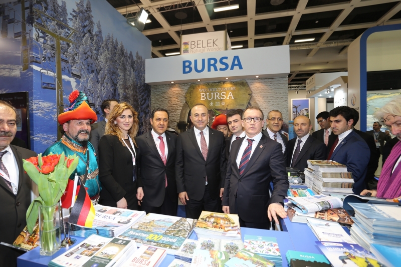 Fuara katılan Dışişleri Bakanı Mevlüt Çavuşoğlu da ITB Berlin Uluslararası Turizm Fuarı’nda Bursa standını ziyaret etti. Vali Yardımcısı Ahmet Hamdi Usta ve Büyükşehir Belediyesi Başkanvekili Abdülkadir Karlık tarafından karşılanan Bakan Çavuşoğlu’na Bursa’nın Berlin’de katılımcı bir şekilde yer aldığı ve Bursa’nın önümüzdeki dönemde turizm hedefleri hakkında bilgiler verildi. Bursa’nın UNESCO Dünya Kültür Mirasına üyeliği ile Avrupa Tarihi Termal Kentler Birliğine Türkiye’den ilk ve tek üye olmasına vurgu yapılırken, Bakan Çavuşoğlu daha sonra Hacivat – Karagöz gösterisini izledi.