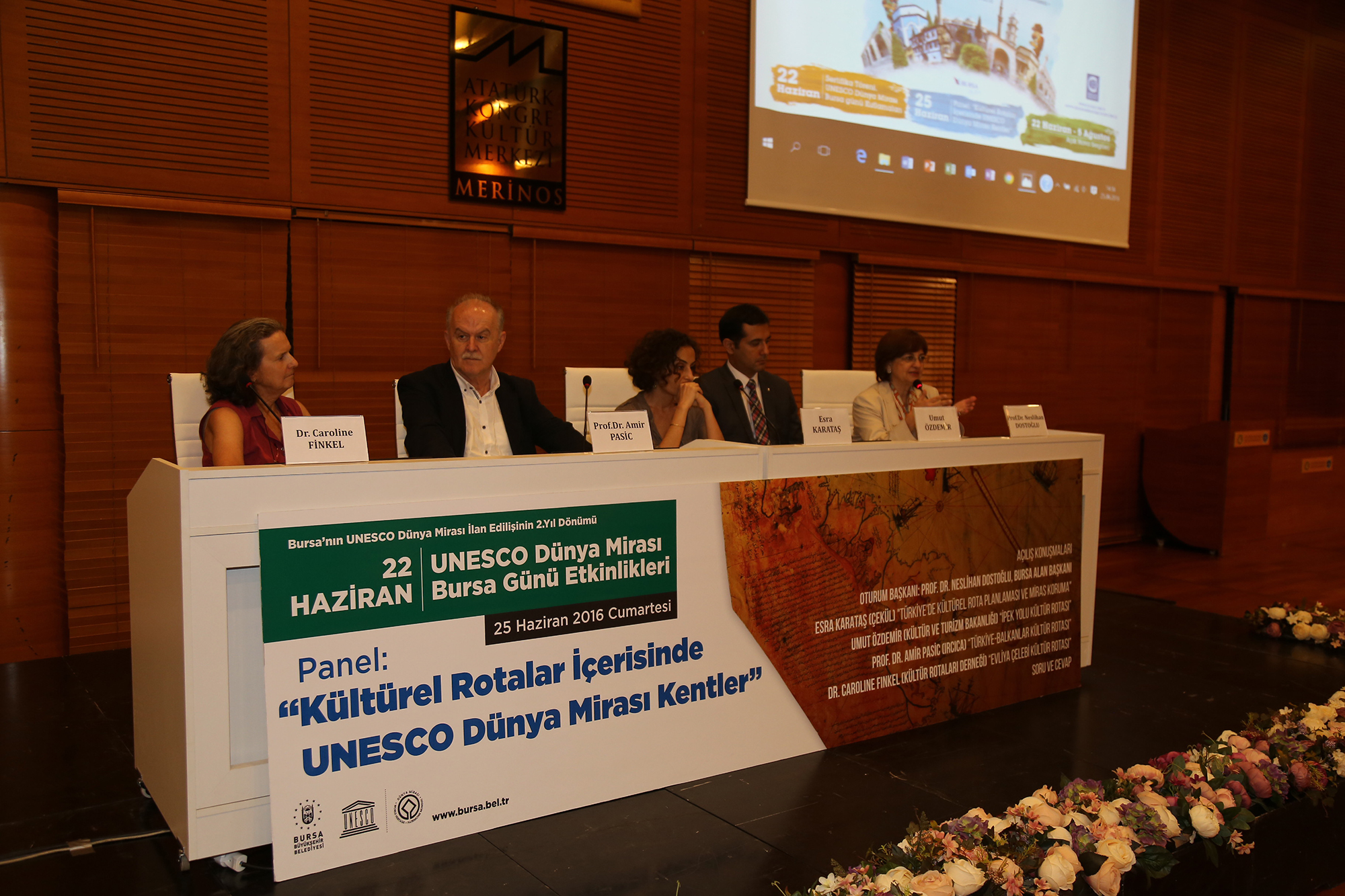 Bursa Büyükşehir Belediyesi’nin desteğiyle 22 Haziran Unesco Dünya Mirası Bursa Günü etkinlikleri çerçevesinde Atatürk Kongre Kültür Merkezi (Merinos AKKM) Hüdavendigar Salonu’nda “Kültürel Rotalar İçerisinde Unesco Dünya Mirası Kentler” paneli düzenlendi.