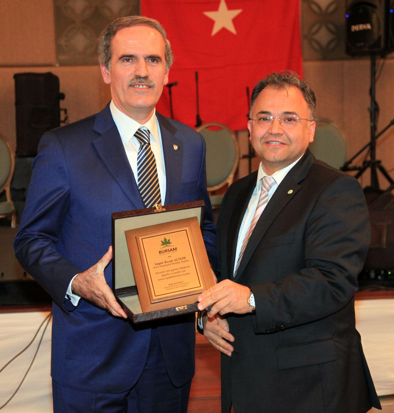 BURSAM Derneği Başkanı Refik Rodoplu gecenin anısına Başkan Altepe’ye plaket verdi. Dernek tarafından Başbakan Yardımcısı Bülent Arınç’a verilen plaketi Milletvekili Tülin Erkal Kara, Çalışma ve Sosyal Güvenlik Bakanı Faruk Çelik’e verilen plaketi ise Milletvekili Hüseyin Şahin aldı. Gece, tüm protokol üyelerinin pasta kesmesiyle son buldu.
