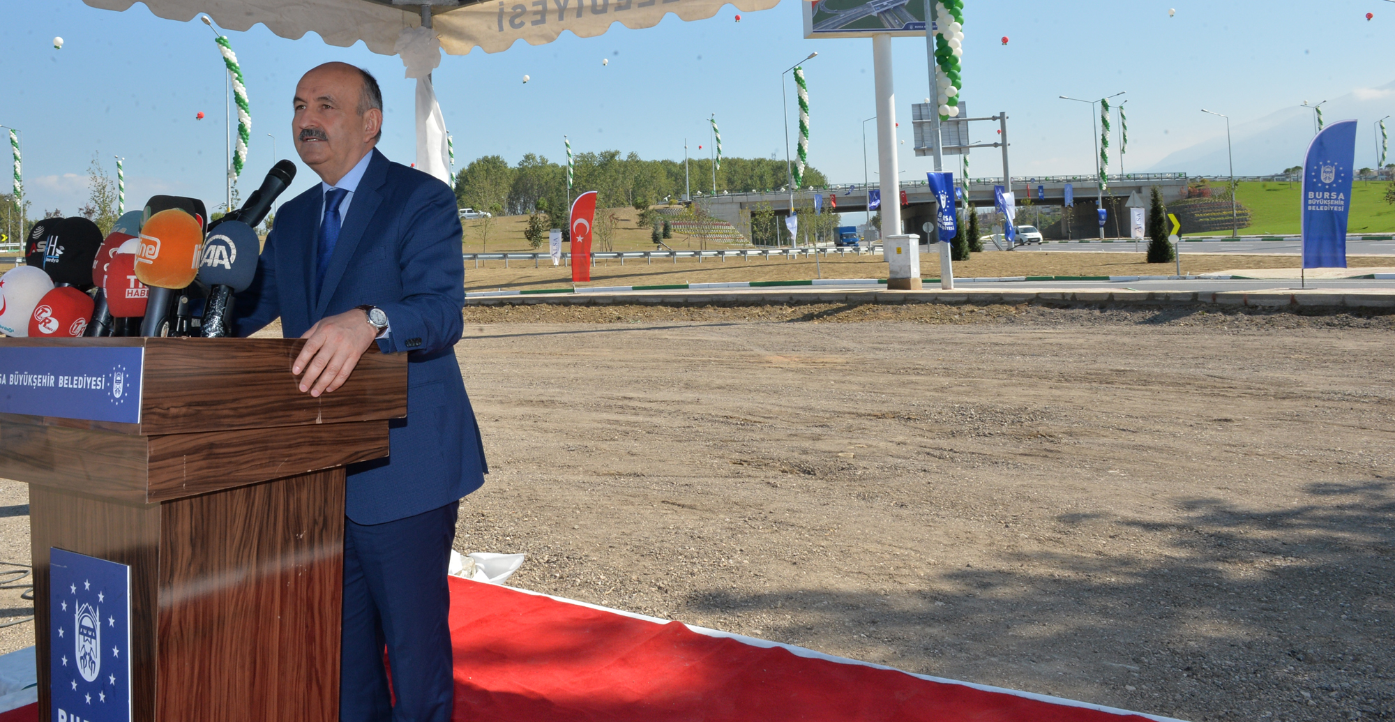 Sağlık Bakanı Dr. Mehmet Müezzinoğlu Bursa’nın Türkiye için önemine vurgu yaptığı açıklamasında, “Yol medeniyettir cümlesiyle bu ülkenin ulaşımına güçlü bir imzayı atabilmeyi başardık. Bu vizyonun sahipleri var. Bursa’da da bu vizyonun sahibi olan Büyükşehir Belediye Başkanı Recep Altepe’yi tebrik ediyor, gönülden alkışlıyorum. Bütün alanlarda, Bursa’nın her köşesine yalnız ulaşım değil, tarihi kültürel mirasından tutun da geleceğine, sahillerinde yeniden farklı bir vizyonla dünyayla yarışan projeleri yapabilme yetisine, Bursa’nın medeniyet değerlerini sahiplenen ve hep öncülük yapan bir belediye başkanı var Bursa’da...” diye konuştu.