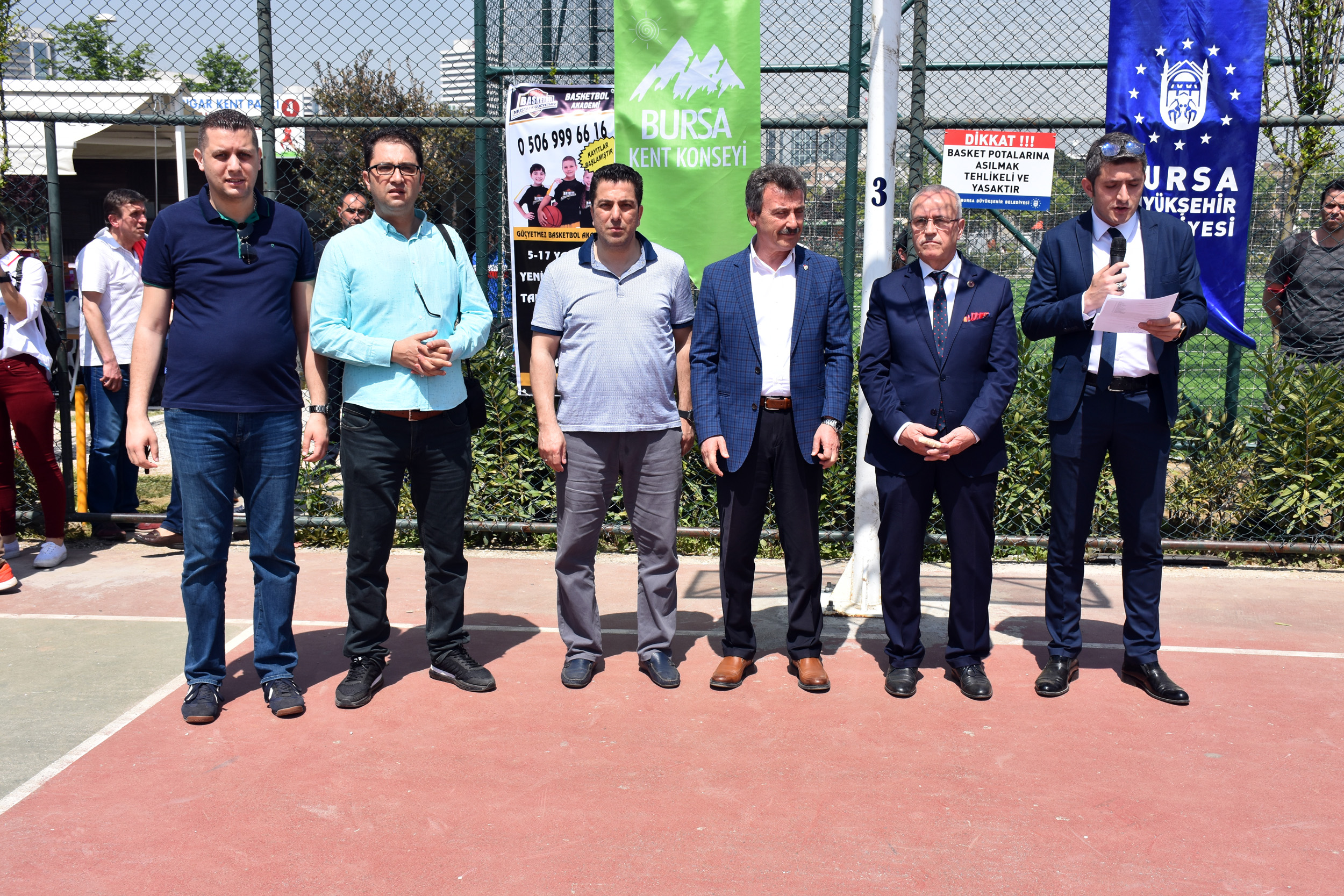 Bursa Büyükşehir Belediyesi ve Bursa Kent Konseyi Gençlik Meclisi basketbola ilgiyi artırmak, çocukların ve gençlerin yeteneklerini ortaya çıkarabilmek amacıyla Eski Milli Basketbolcu Mustafa Güçyetmez’in kurucusu olduğu Güçyetmez Akademin’in destekleriyle ‘Sokak Basketbolu Turnuvası’ Mihraplı Parkı’nda ikinci kez düzenledi. Geçen seneki katılım sayısının da üstüne çıkarak alanında Bursa’nın en büyük sokak basketbolu turnuvası olma özelliğini devam ettiren programın açılışına Bursa Büyükşehir Belediyesi Başkanvekili Süleyman Çelik, Bursa Kent Konseyi Başkanvekili Şuayip Toprak, Büyükşehir Belediyesi Yerel Gündem Şube Müdürü Mahmut Turunç, Bursa Kent Konseyi Genel Sekreter Murat Başlar, Basın İlan Kurumu Müdürü Osman Başeğmez, Bursa Kent Konseyi Gençlik Meclisi Başkanı Kıvanç Cakalıoğlu ve Güçyetmez Akademi Kurucusu Eski Milli Basketbolcu Mustafa Güçyetmez ile turnuvaya katılan sporcular ve aileleri katıldı.
