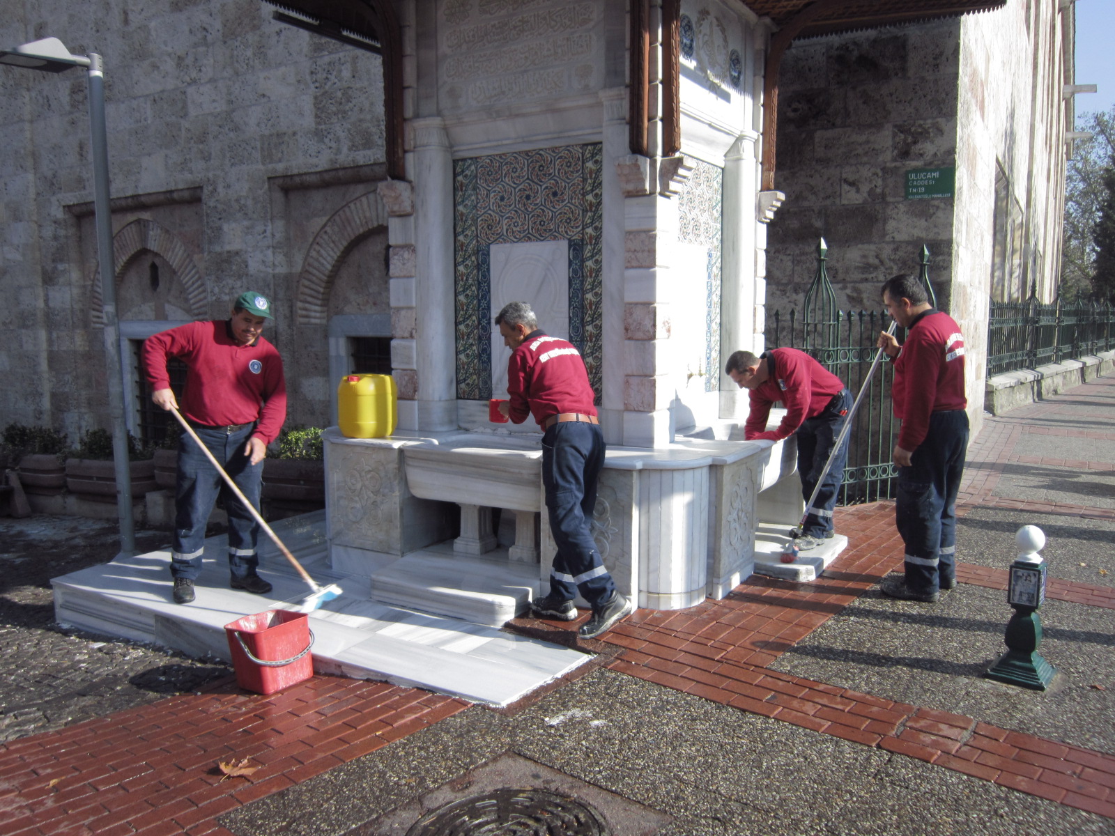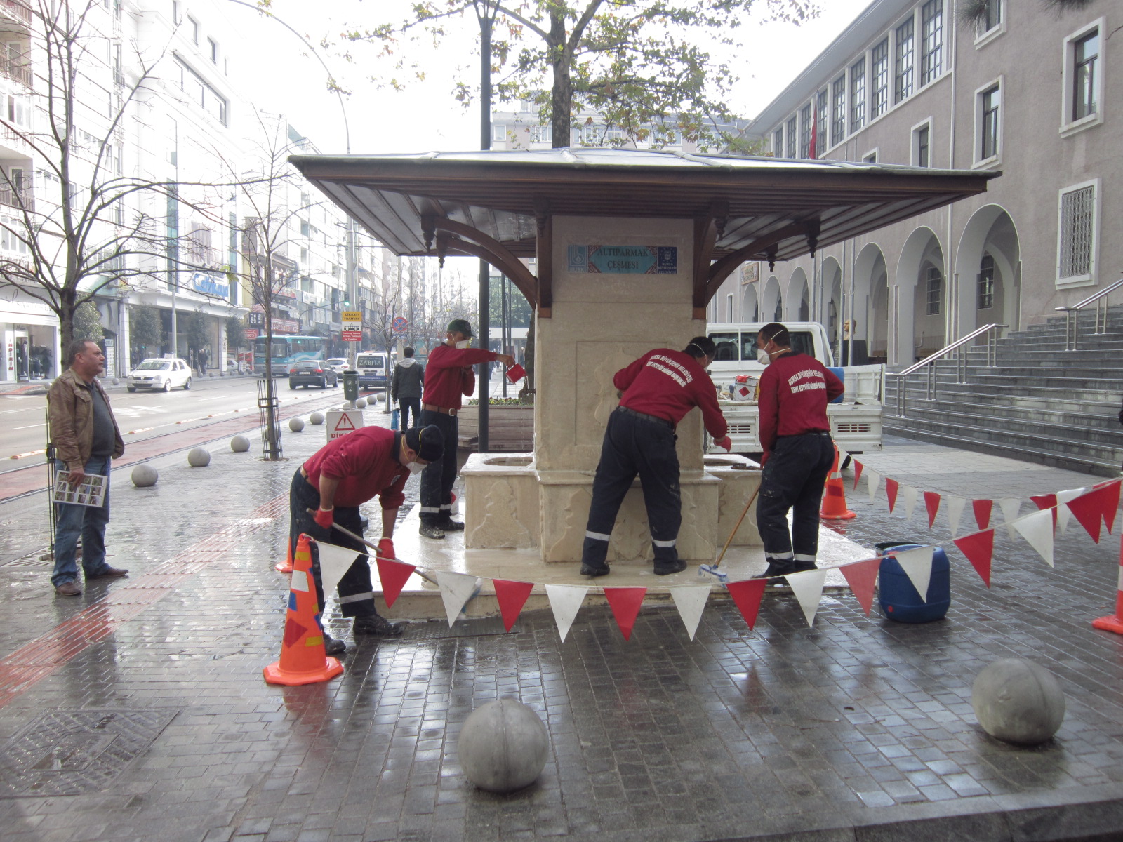 Kentsel mekânlarda kent estetiğini bozan, görüntü kirliliği yaratan uygunsuzlukların giderilmesi, kentin fiziksel mekân kalitesinin artırılması, görsel ve hijyenik temizliğin sağlanması için Bursa Büyükşehir Belediyesi Kent Estetiği Dairesi Başkanlığı’na bağlı Kent Estetiği Şube Müdürlüğü, kendi ekipleriyle etkili müdahalelere devam ediyor. Kentin birçok yerinde yapılan, kent estetiğine aykırı unsurların iyileştirilmesine yönelik çalışmalar, merkezi mekanlarda yoğunlaşıyor: Profesyonel temizlik malzemesi teminleri yapılarak Alt ve üst geçitlerin hijyenik hale getirilmesinin en iyi yolları deneniyor. Alt geçitlerde acil onarım gereken noktalarda iyileştirmeler yapılırken, özel temizlik malzemeleriyle merkezi mekanlardaki tarihi çeşmeler zarar vermeden hijyenik hale getiriliyor.
