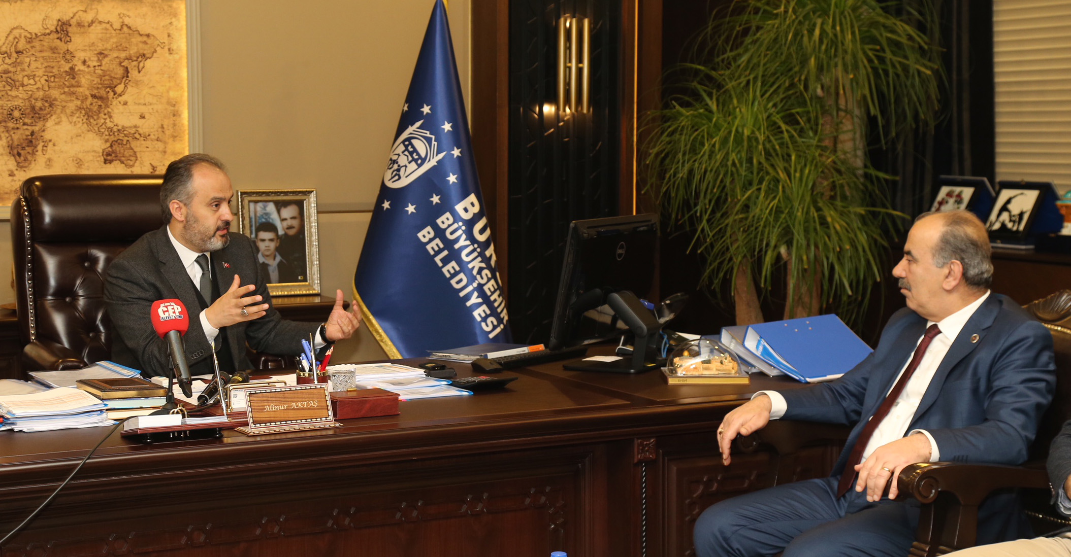 BURSA – Bursa Büyükşehir Belediye Başkanı Alinur Aktaş, Mudanya Belediye Başkanı Hayri Türkyılmaz’ı Büyükşehir Belediye Binası’nda ağırlayarak, Mudanya’nın Bursa için değerine dikkati çekti ve demokrasiye inanan insanlar olarak kentin güzelliklerini Türkiye’ye ve dünyaya tanıtmayı hedeflediklerini söyledi.