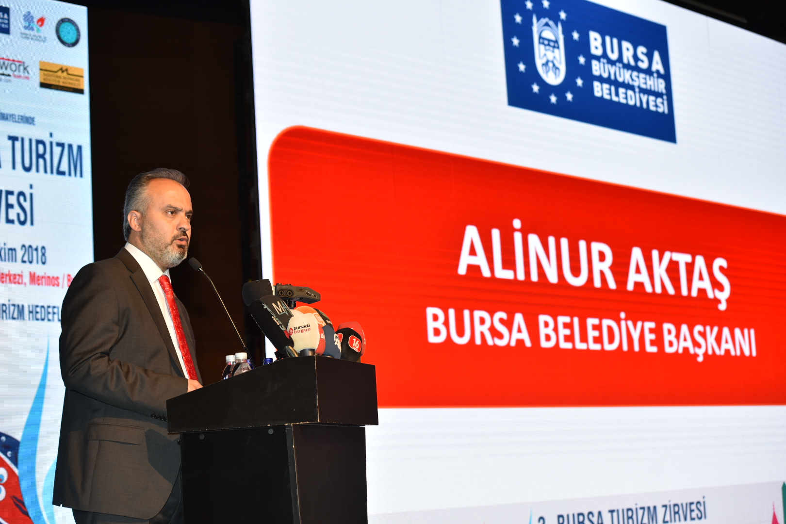 Bursa Büyükşehir Belediye Başkanı Alinur Aktaş, Merinos AKKM Orhangazi Salonu’nda gerçekleştirilen ‘3. Turizm Zirvesi’ ve ‘1. Bursa Turizm Fuarı’nın açılışında yaptığı konuşmada, kentin değerlerine dikkati çekti.