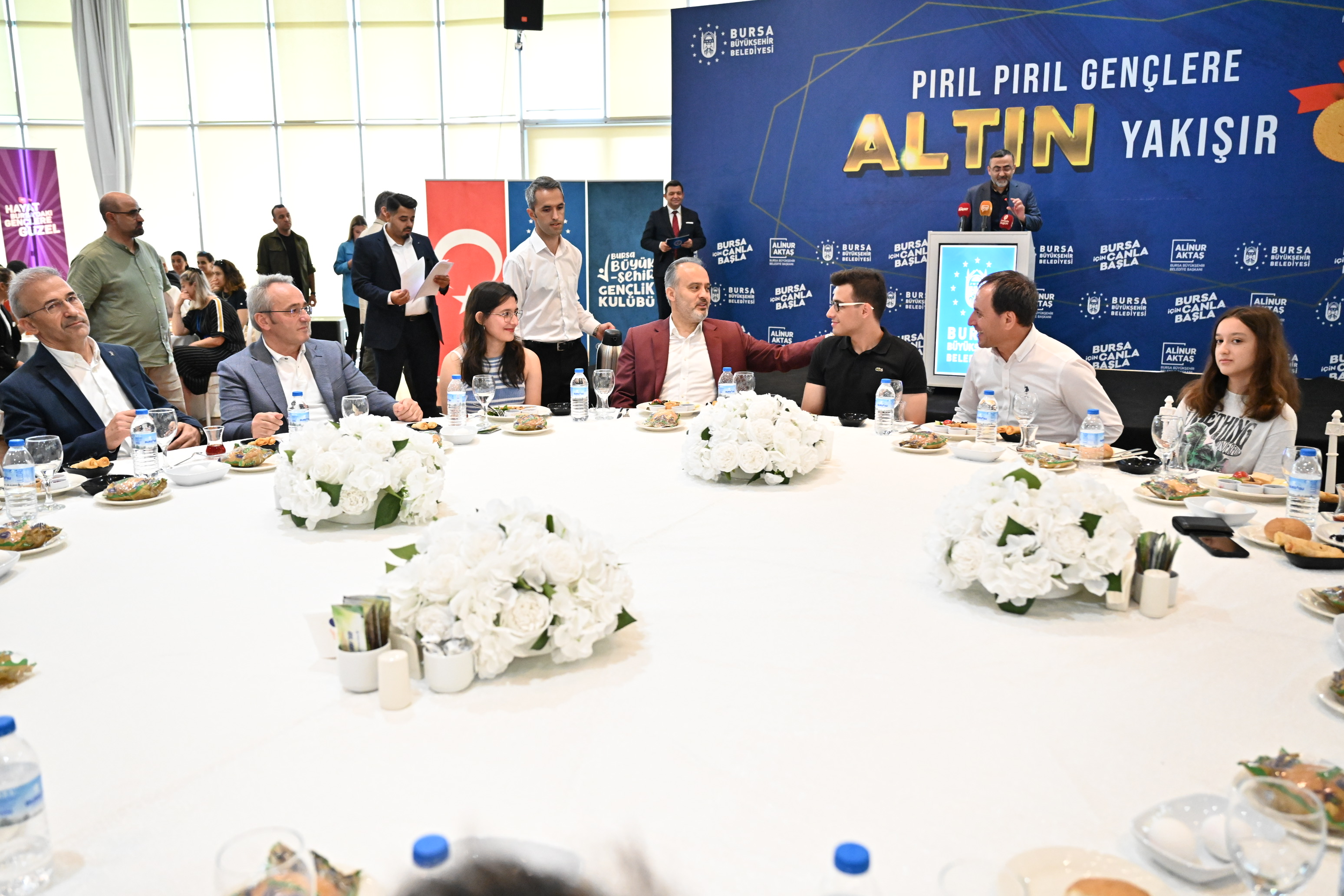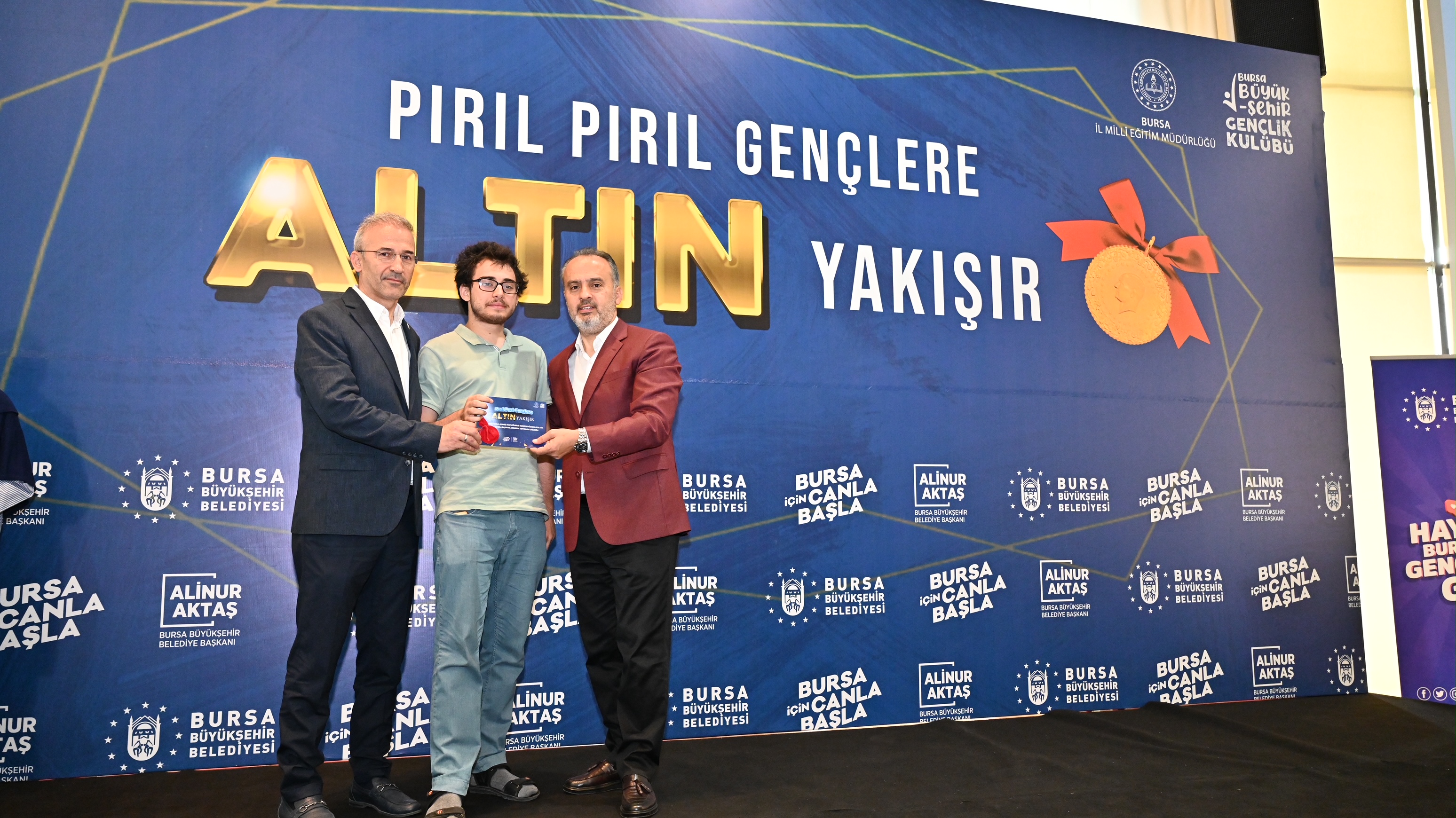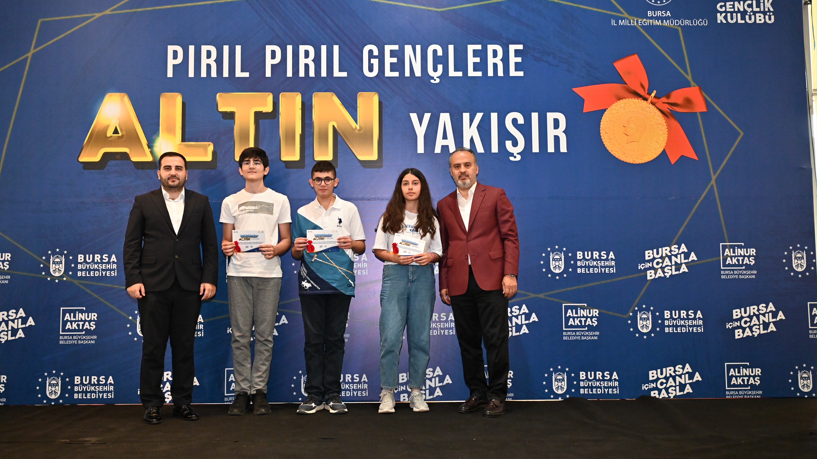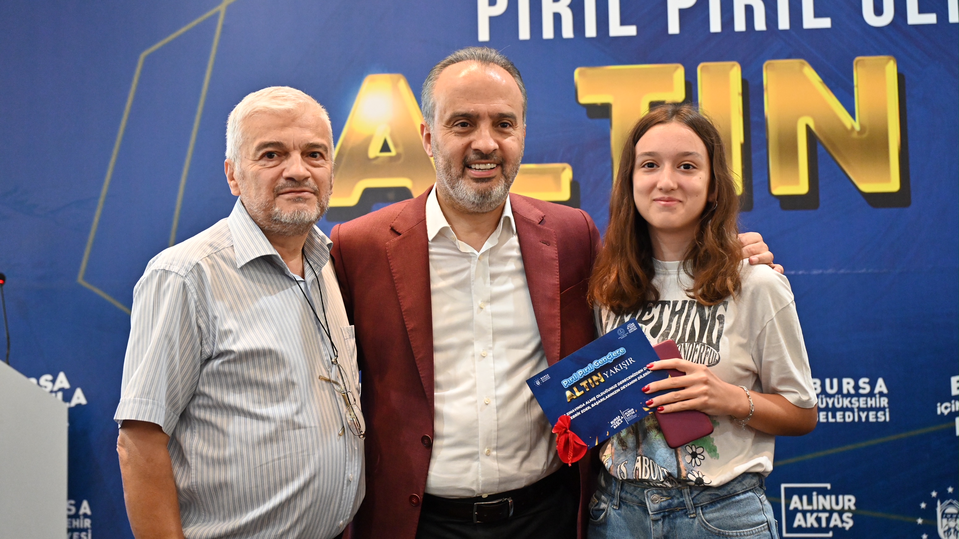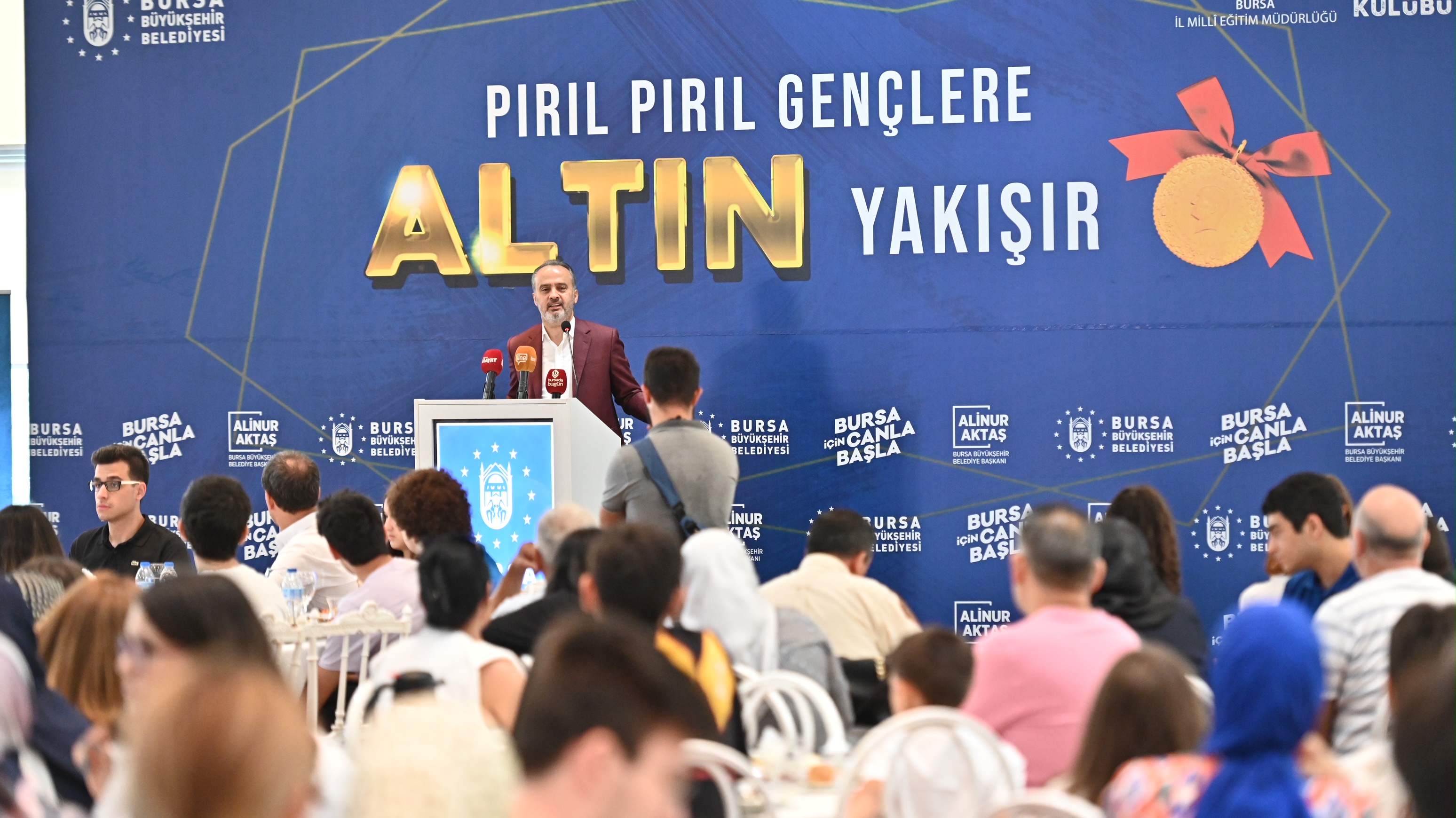Atatürk Kongre Kültür Merkezi’ndeki törene, Bursa Büyükşehir Belediye Başkanı Alinur Aktaş’ın yanı sıra İl Milli Eğitim Müdürü Dr. Ahmet Alireisoğlu, AK Parti İl Başkanvekili Kamil Bayramiç, meclis üyeleri, derece yapan öğrenciler ve velileri katıldı. Tüm gençleri tebrik ederek başarılarının daim olmasını dileyen Büyükşehir Belediye Başkanı Alinur Aktaş, elde edilen başarıların kendisini de heyecanlandırdığını söyledi. Kendi kızının da bu sene YKS sınavına girdiğini ve güzel bir bölüme yerleştiğini ifade eden Başkan Aktaş, “Bugün biraraya geldiğimiz gençler özel bir başarı elde etti. Bizler de 3-4 senedir ilk 1000’e giren öğrencilerimizi ödüllendiriyoruz. Bizler sokakları altından döşesek kıymeti yok. Gençlik konusunu önemsiyoruz. Gençlik konusunu bu yüzden ayrı ele alıyoruz. O yüzden ana kucağından Busmek kurslarına, burslara kadar her konuda gençleri destekliyoruz. Burs müracaatlarınızı mutlaka yapın. Bu sene Burskoop marifetiyle sayıyı da arttıracağız inşallah. Hala yeni şeyler üretmenin derdi ve heyecanı içerisindeyiz. Bu ülkenin ve şehrin geleceğine yatırım yapmak bizim için her şeyden daha kıymetli. Gençler için ne yapılsa azdır” diye konuştu.