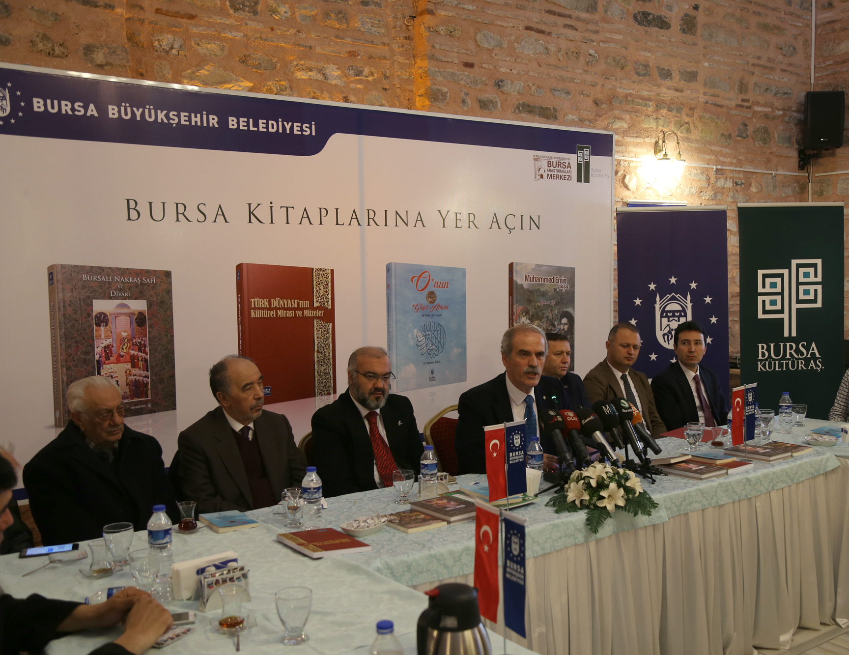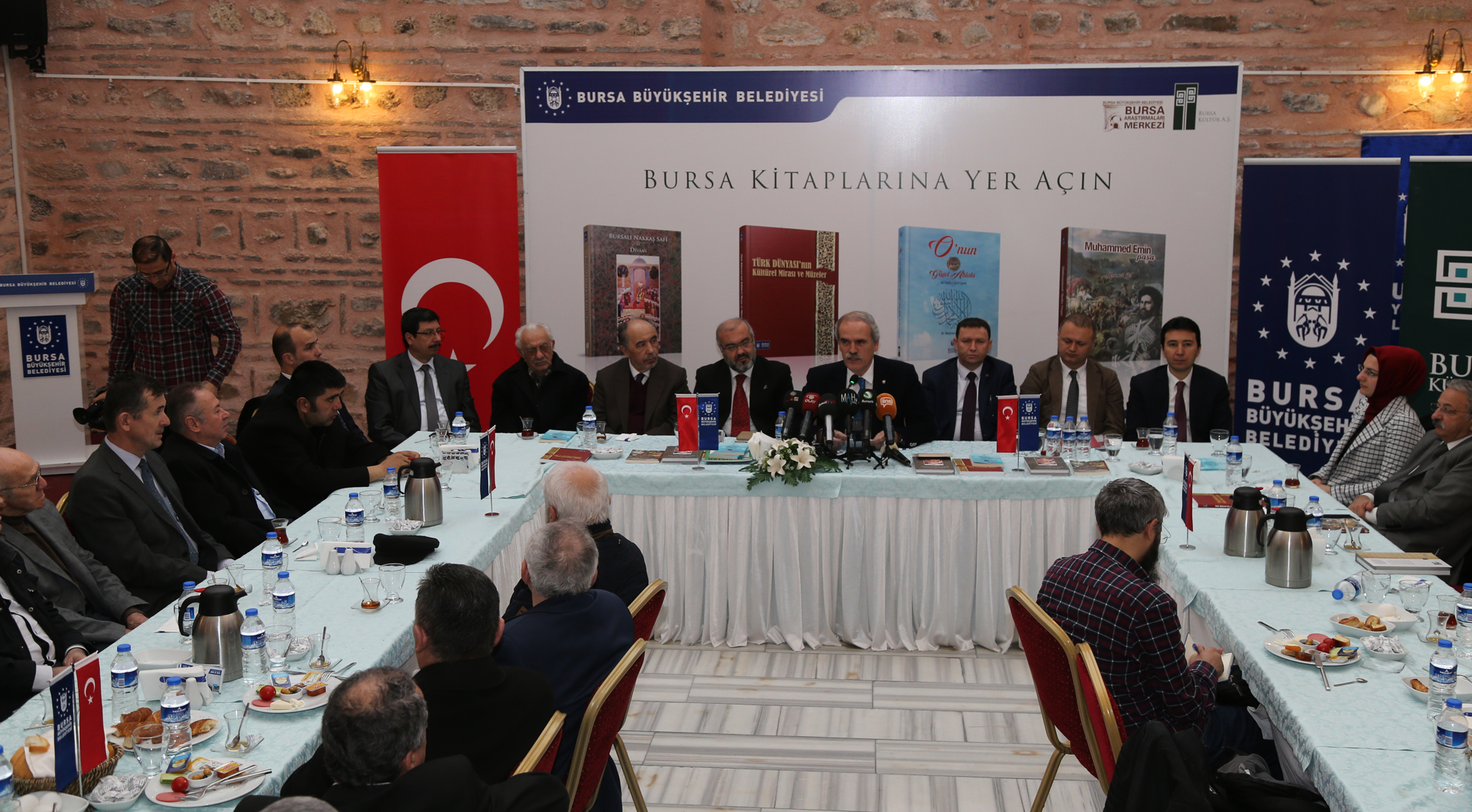 Bursa’nın tarihi ve kültürel mirasını ayağa kaldırma çalışmaları kapsamında 2300 yıllık Bitinya surlarından 8500 yıllık arkeolojik bölgelere, Osmanlı eserlerinden Cumhuriyet dönemi sivil mimari örneği yapılara kadar restorasyon çalışmalarıyla tarihi ayağa kaldıran Büyükşehir Belediyesi, yayınladığı eserlerle de kentin hafızasını tazelemeye devam ediyor. Somut olmayan kültürel miras çalışmaları kapsamında Bursa belgeliğine yeni kazandırılan Bursalı Nakkaş Safi ve Divanı, Muhammed Emin Paşa, O´nun Güzel Ahlakı-40 Hadis-i Şerif Şerhi ile Türk Dünyası´nın Kültürel Mirası ve Müzeler Bildiriler adlı 4 eser, İbrahim Paşa Kültür Merkezi’nde düzenlenen toplantı ile kamuoyuna tanıtıldı. Toplantıya Büyükşehir Belediye Başkanı Recep Altepe, İl Müftüsü Prof.Dr. Mehmet Emin Ay, kitapların yazarları ile çok sayıda kitapsever katıldı.