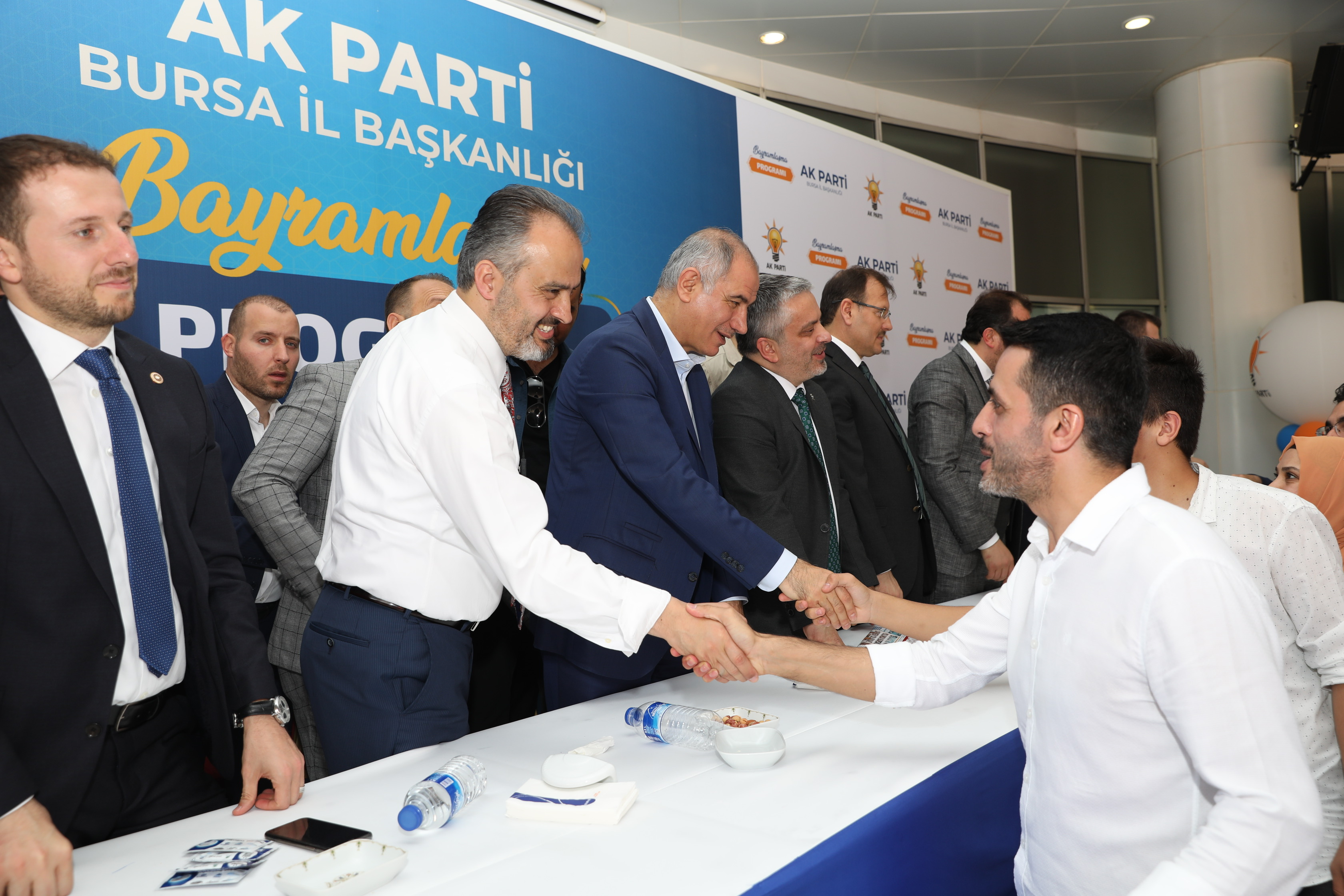 Bursa Büyükşehir Belediye Başkanı Alinur Aktaş, Ramazan Bayramı’nın ilk gününde önce Bursa Valiliği tarafından Tarihi Valilik Binası’nda düzenlenen bayramlaşma programına, ardından da AK Parti Bursa İl Başkanlığı’nca Atatürk Kongre Kültür Merkezi’nde (Merinos AKKM) gerçekleştirilen bayramlaşma törenine katıldı.
