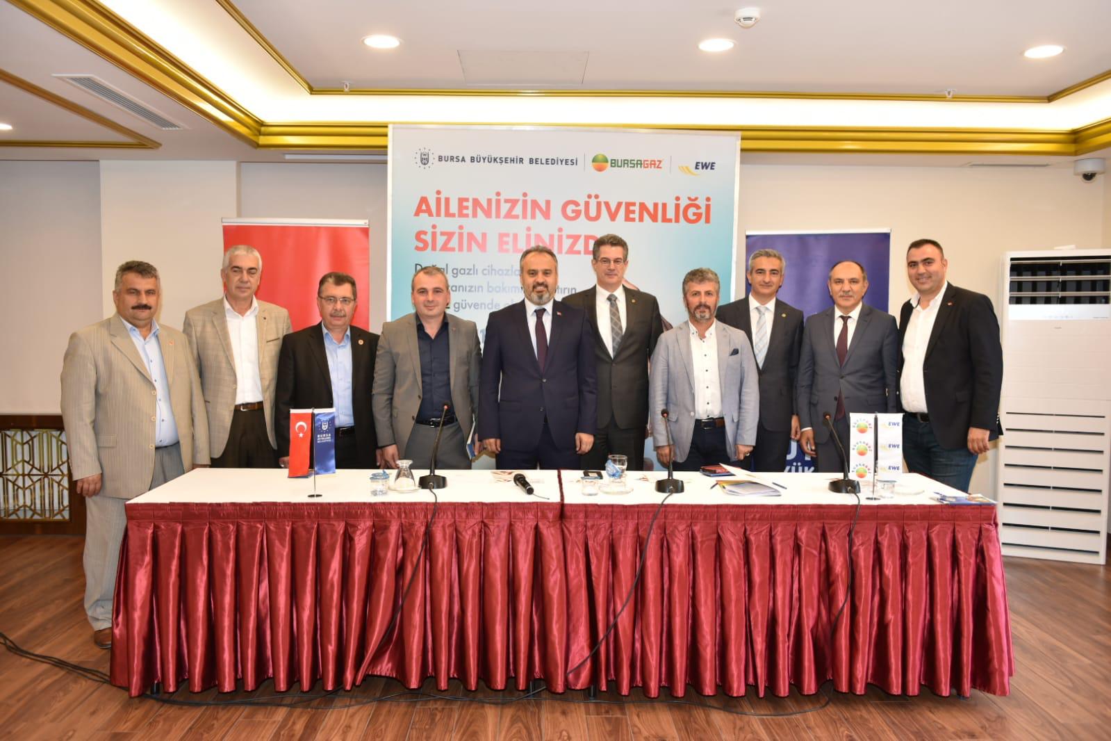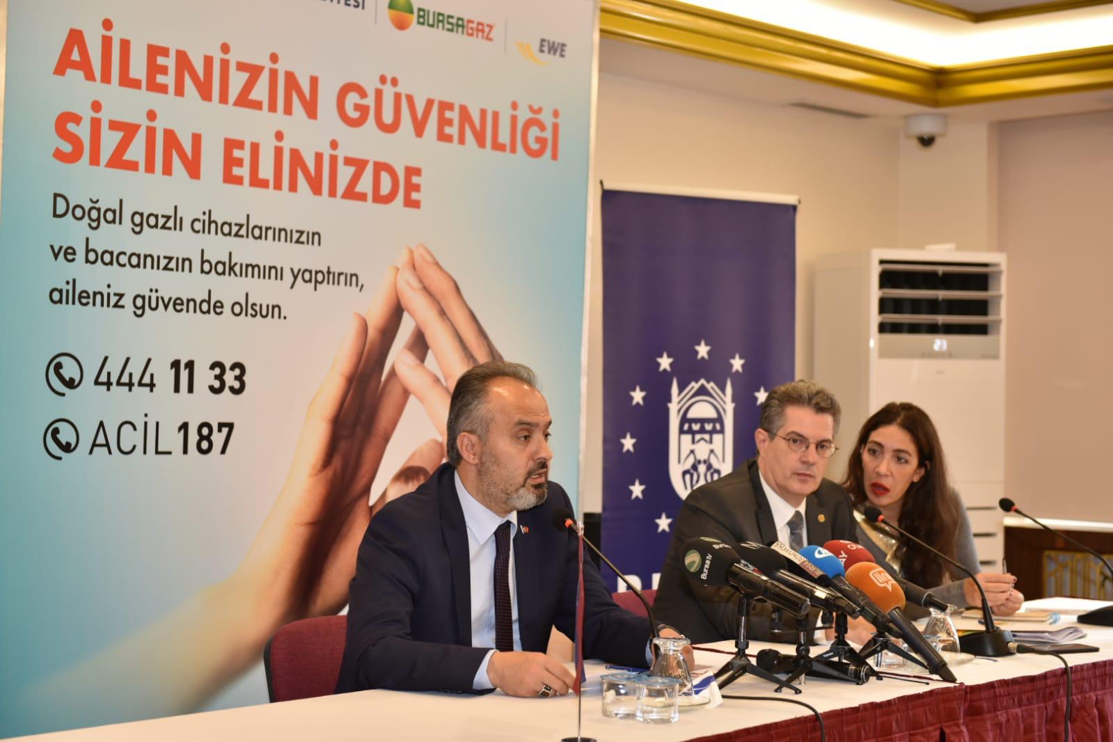Bursa Büyükşehir Belediye Başkanı Alinur Aktaş ve BURSAGAZ Genel Müdürü Markus Rapp’in katılımıyla Tayyare Kültür Merkezi’nde kamuoyuna tanıtılan ‘Güvenli Doğalgaz Kullanımı’ kampanyası, Bursa’nın daha yaşanabilir bir kent olmasını hedefliyor. Başkan Alinur Aktaş, Büyükşehir Belediyesi’nin Bursa’yı daha sağlıklı bir geleceğe ulaştırmayı amaçladığını belirterek, Bursagaz’ın güvenli doğalgaz kullanımı kampanyasının detaylarını anlattı. Bir milyona yaklaşan abone sayısıyla Türkiye’nin en büyük doğal gaz dağıtım şirketleri arasında yer alan Bursagaz’ın il genelinde 7 ilçede hizmet verdiğini anlatan Başkan Aktaş, “Bu yıl yeni lisans alınan dört dağ ilçesiyle birlikte Bursagaz’ın hizmet alanı 11 ilçeye yükselecek. Bursagaz, şehirde hizmet vermeye başladığı yılından bu yana güvenli doğal gaz kullanımı konusuna büyük önem veriyor” dedi.