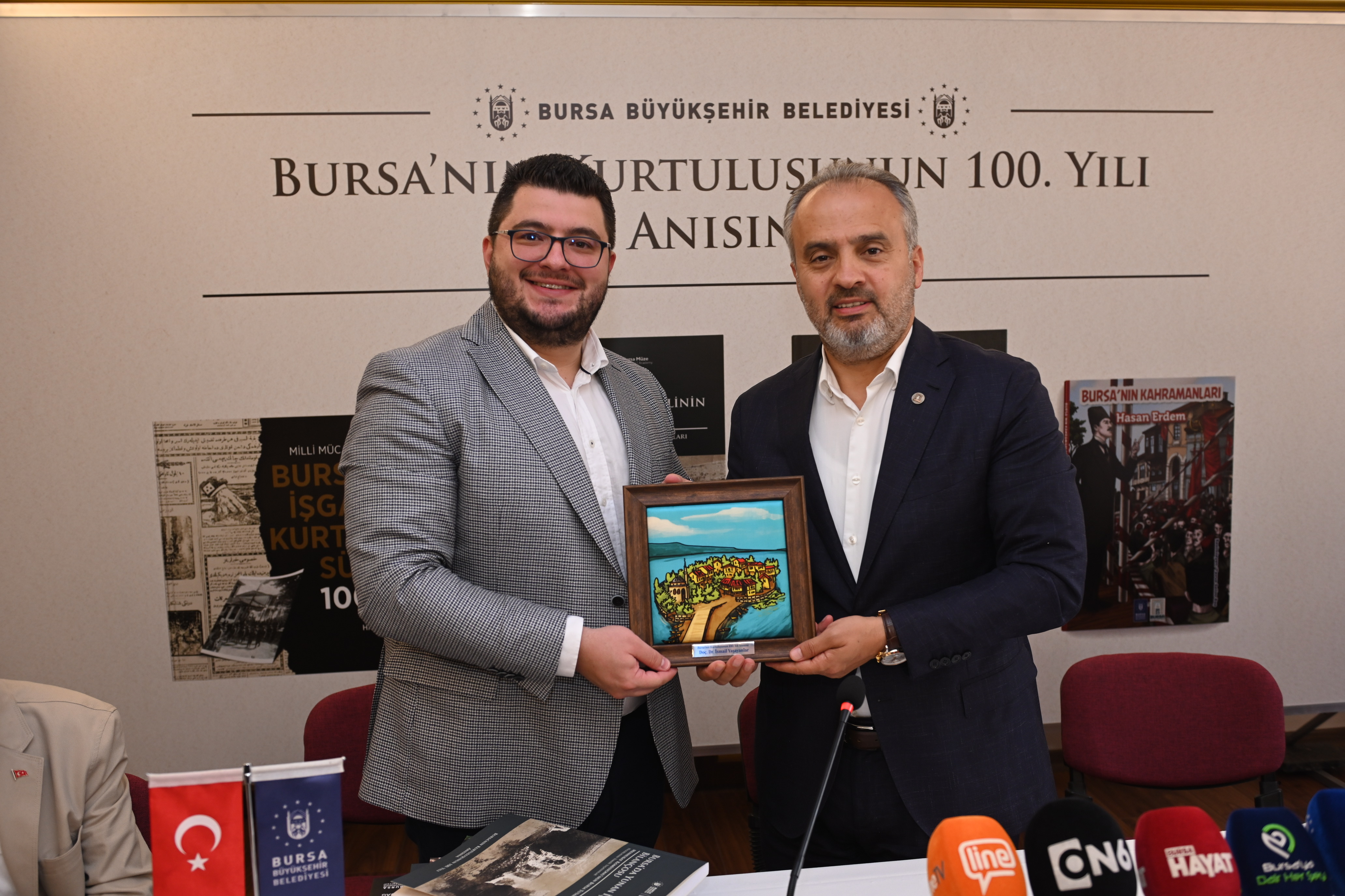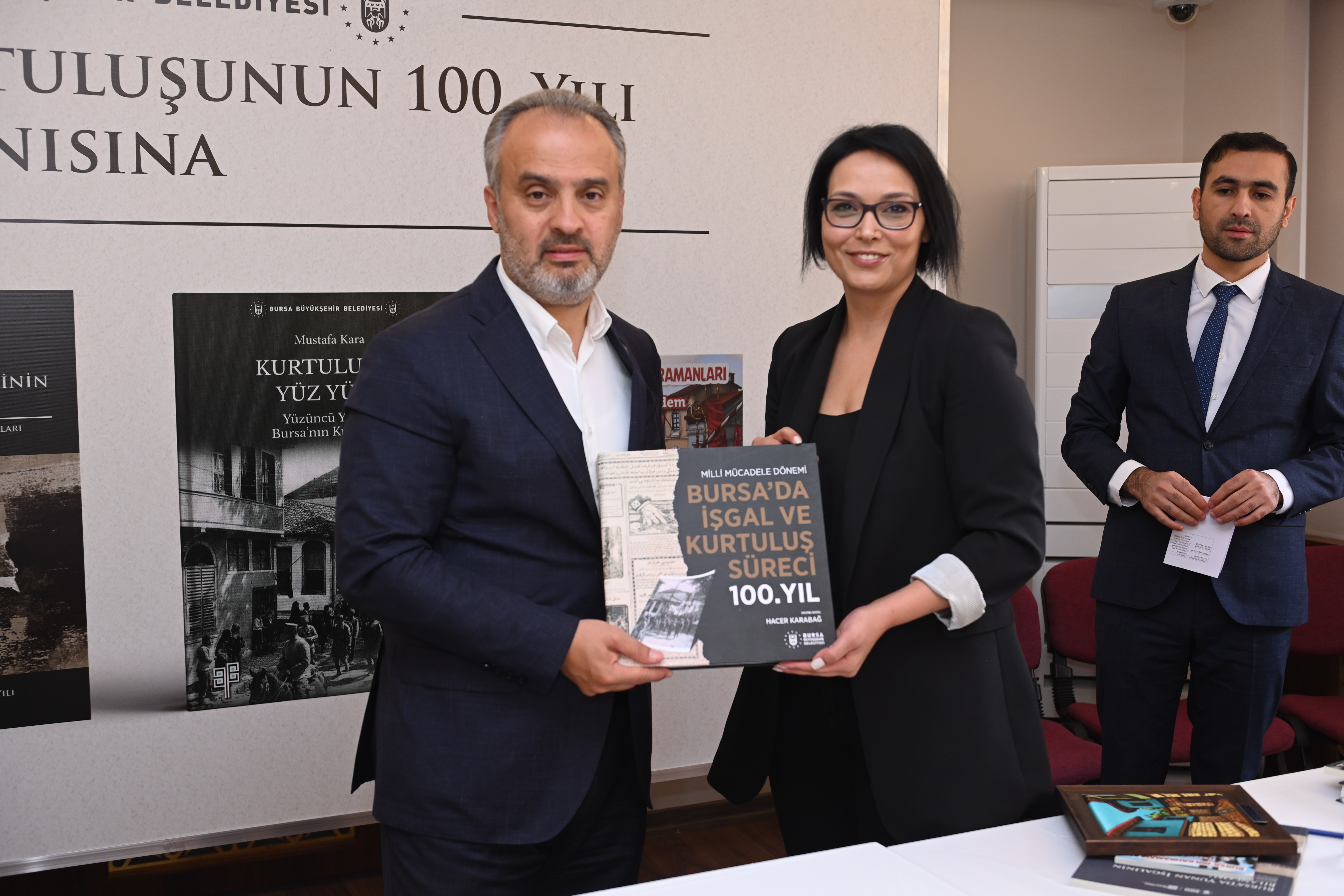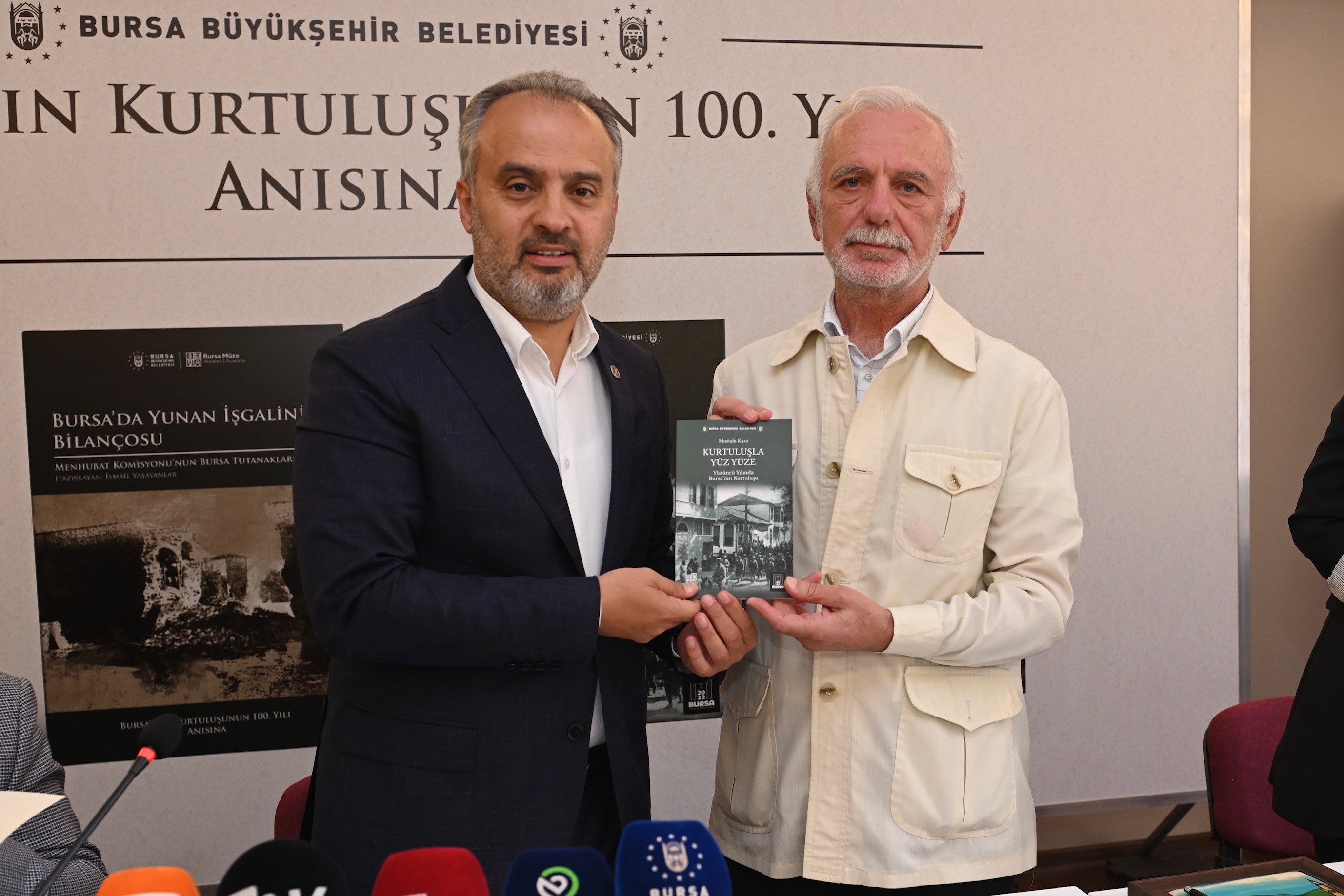 Bursa’da 2 yıl, 2 ay, 2 gün süren Yunan işgalinin sona ermesinin 100’üncü yılı, Büyükşehir Belediyesi tarafından bir haftaya yayılan etkinliklerle kutlanıyor. Bu kapsamda, Yunan işgalini tüm yönleriyle anlatan 4 kitap kent belgeliğine kazandırıldı. Prof.Dr. Mustafa Kara tarafından kaleme alınan “Kurtuluşla Yüz Yüze; Yüzüncü Yılında Bursa’nın Kurtuluşu”, Doç. Dr. Hacer Karabağ’ın “Milli Mücadele Dönemi Bursa’da İşgal ve Kurtuluş Süreci 100. Yıl”, Doç. Dr. İsmail Yaşayanlar’ın “Bursa’da Yunan İşgalinin Bilançosu” ve Hasan Erdem’in “Bursa’nın Kahramanları” kitabı, Tayyare Kültür Merkezi’nde düzenlenen toplantı ile kamuoyuna katıldı.