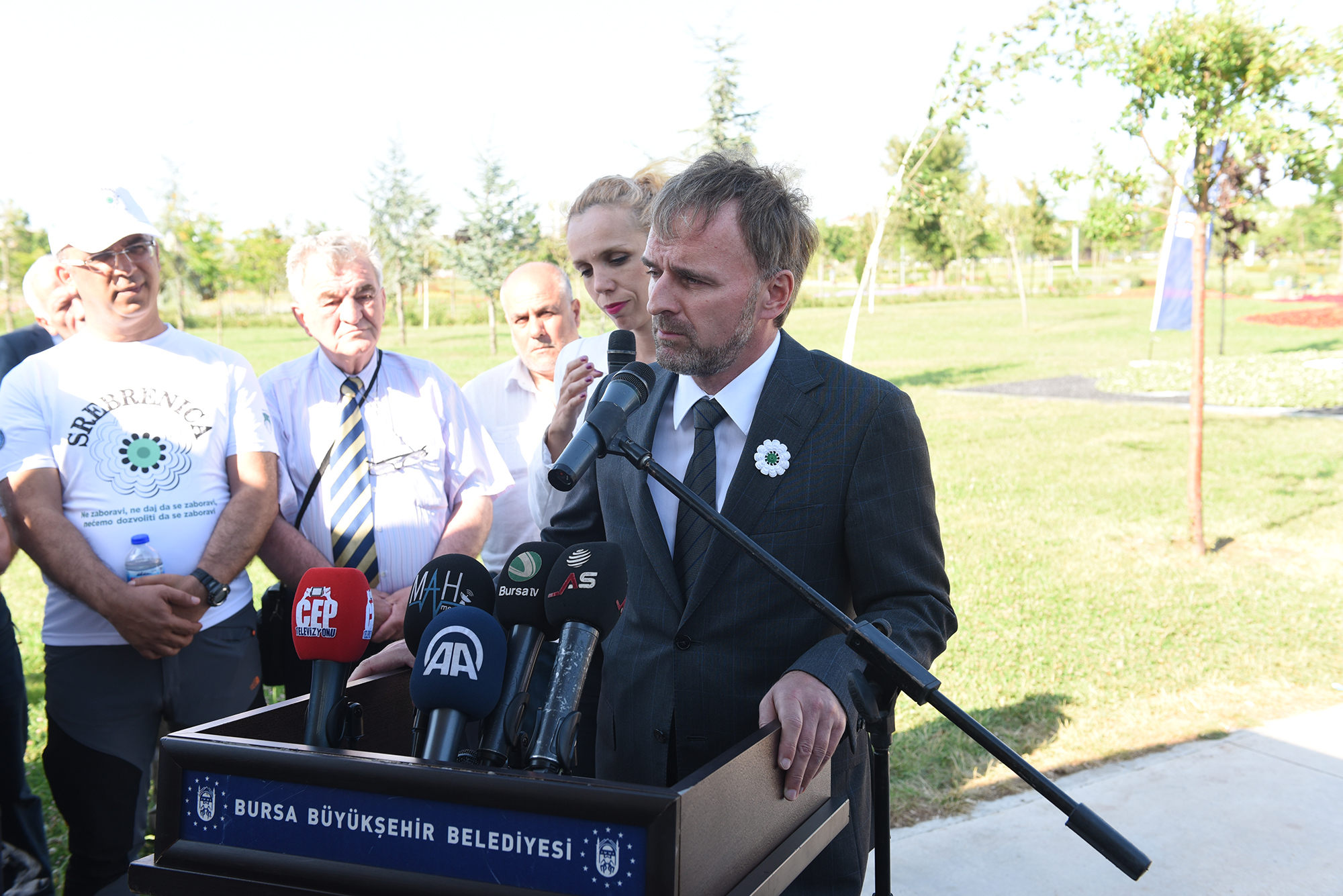 Büyükşehir Belediyesi’nin Srebrenica’da önemli bir çalışma yaptığını söyleyen Çavuşoğlu, “Bursa’nın en büyük parkı olarak kabul ettiğimiz 510 dönümlük Mihraplı Hüdavendigar Parkı’nda, bu defa Srebrenica annelerinin gözyaşları ve duygularıyla ilmek ilmek dokudukları Srebrenica Çiçeği’ni yaşatmak ve Boşnak kardeşlerimizin hatırası önünde saygıyla eğilmek için bir aradayız” şeklinde konuştu.