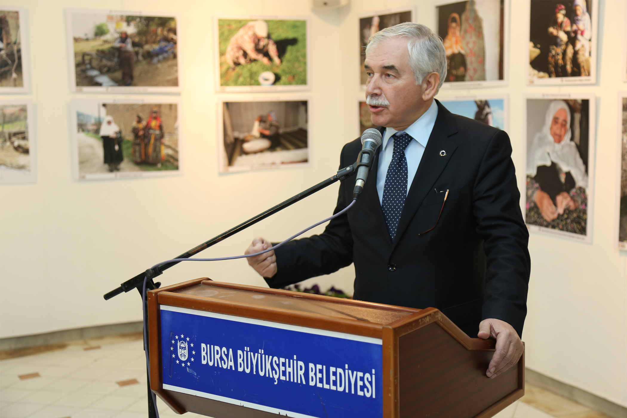 Büyükşehir Belediyesi Bursa Araştırmaları Merkezi’nin (BAM) çalışmaları kapsamında hazırlanan sergide, Bursa’nın 200 köyünde çekilen fotoğraflar ve görüntülerin derlemesini gözler önüne seriyor. ‘Köyümüzün Kadınları’ fotoğraf sergisinin açılışını, Bursa Büyükşehir Belediyesi Kültür Sanat Danışmanı Ahmet Erdönmez yaptı. Bursa’da yoğun ve kapsamlı bir çalışmanın ardından bu özel serginin hazırlandığını anlatan Erdönmez, “Büyükşehir Belediyesi Bursa Araştırmaları Merkezi bünyesinde ‘Bursa Köylerinde Somut Olmayan Kültürel Miras Projesi’ kapsamında yürütülen çalışmalardan kadın portrelerini görüyoruz, sergimizde... Sergideki fotoğraflarda kadınların hayatın her alanında önemli yerinin olduğunu yansıtmak istedik” dedi.