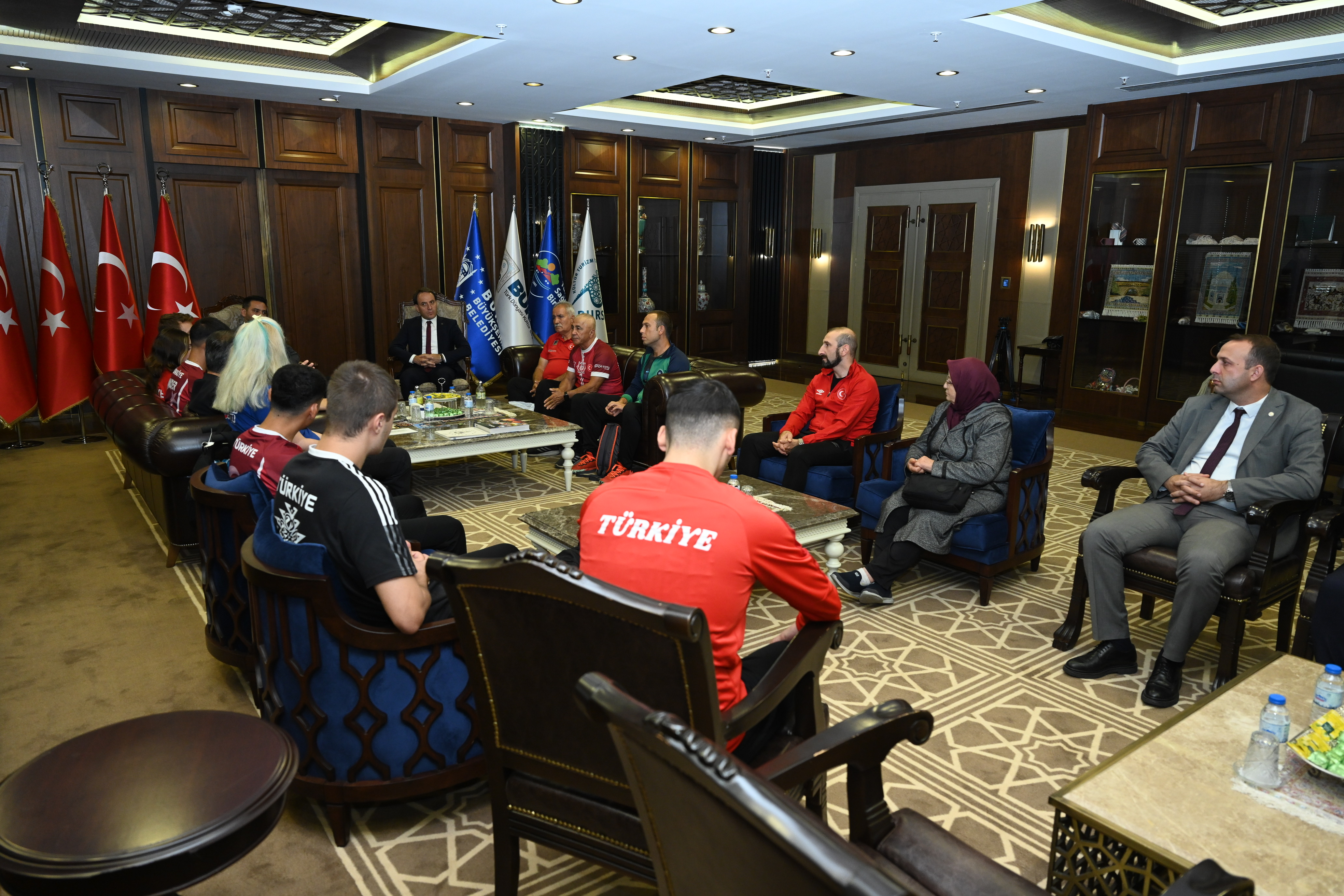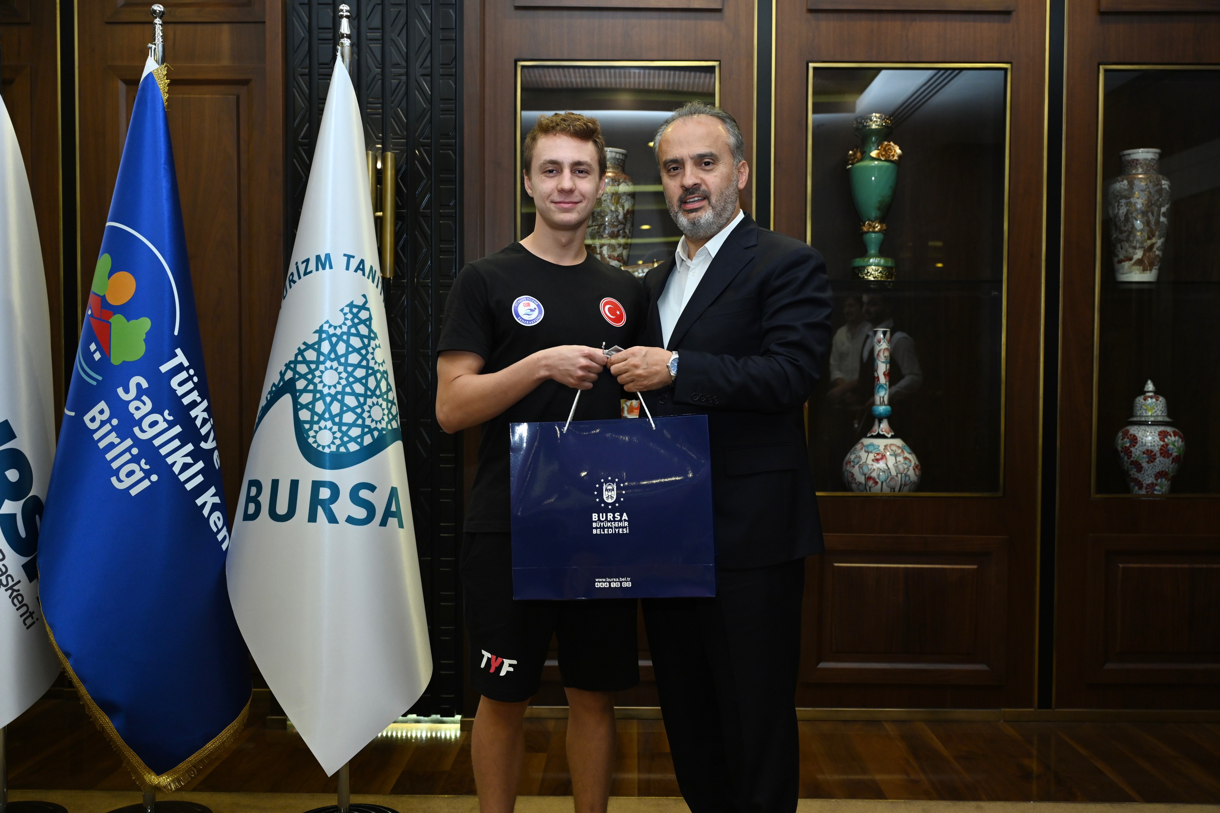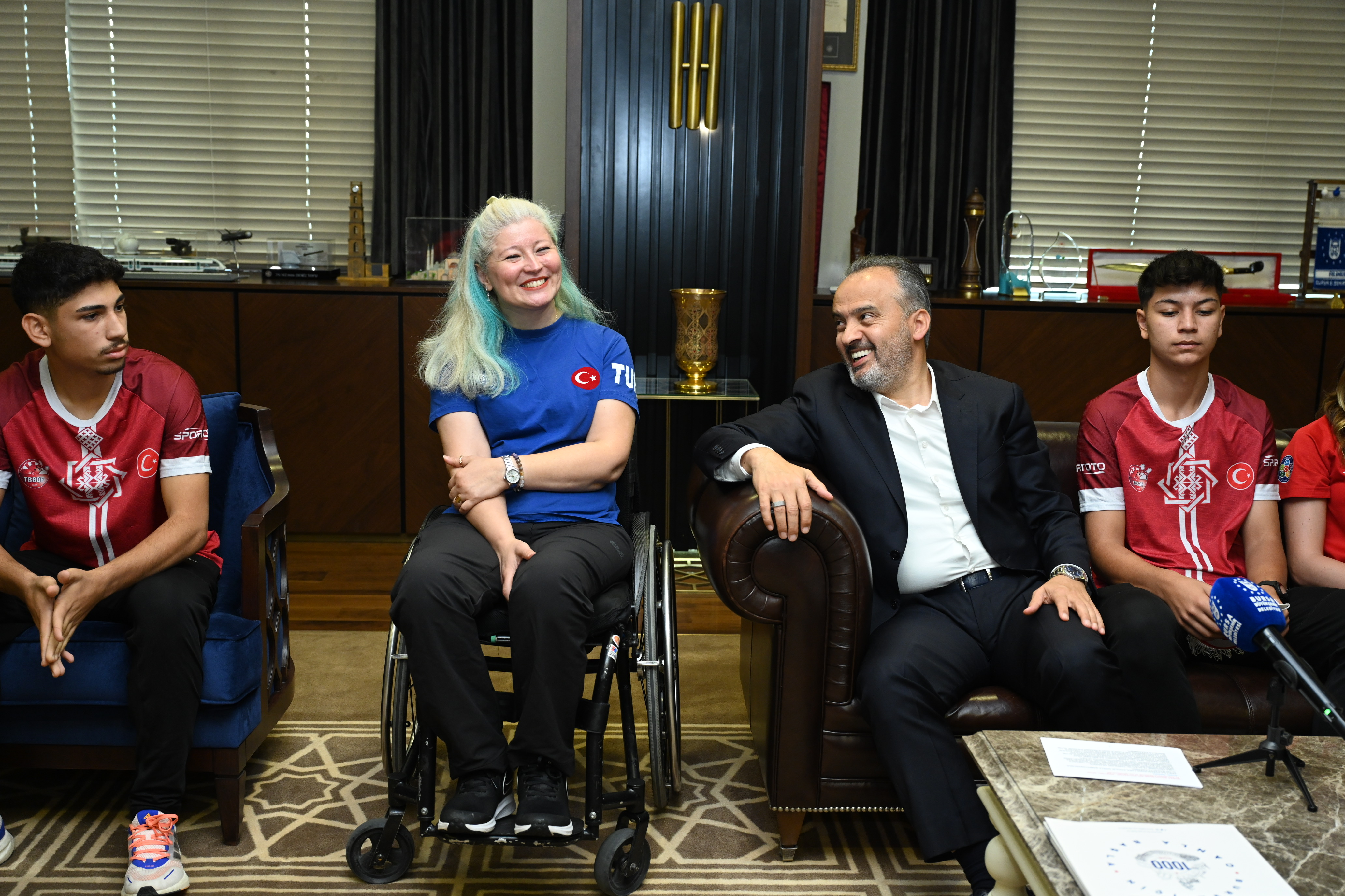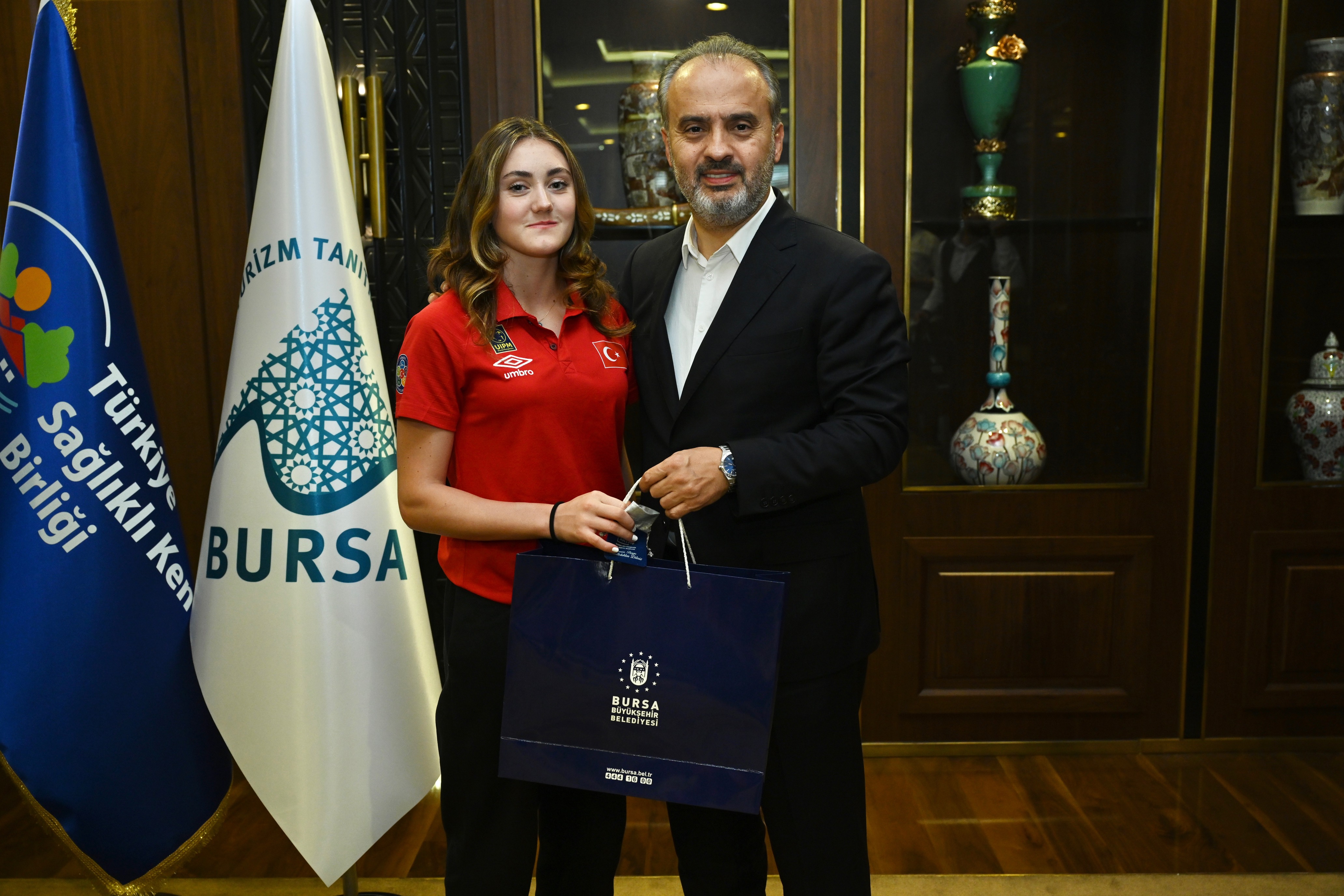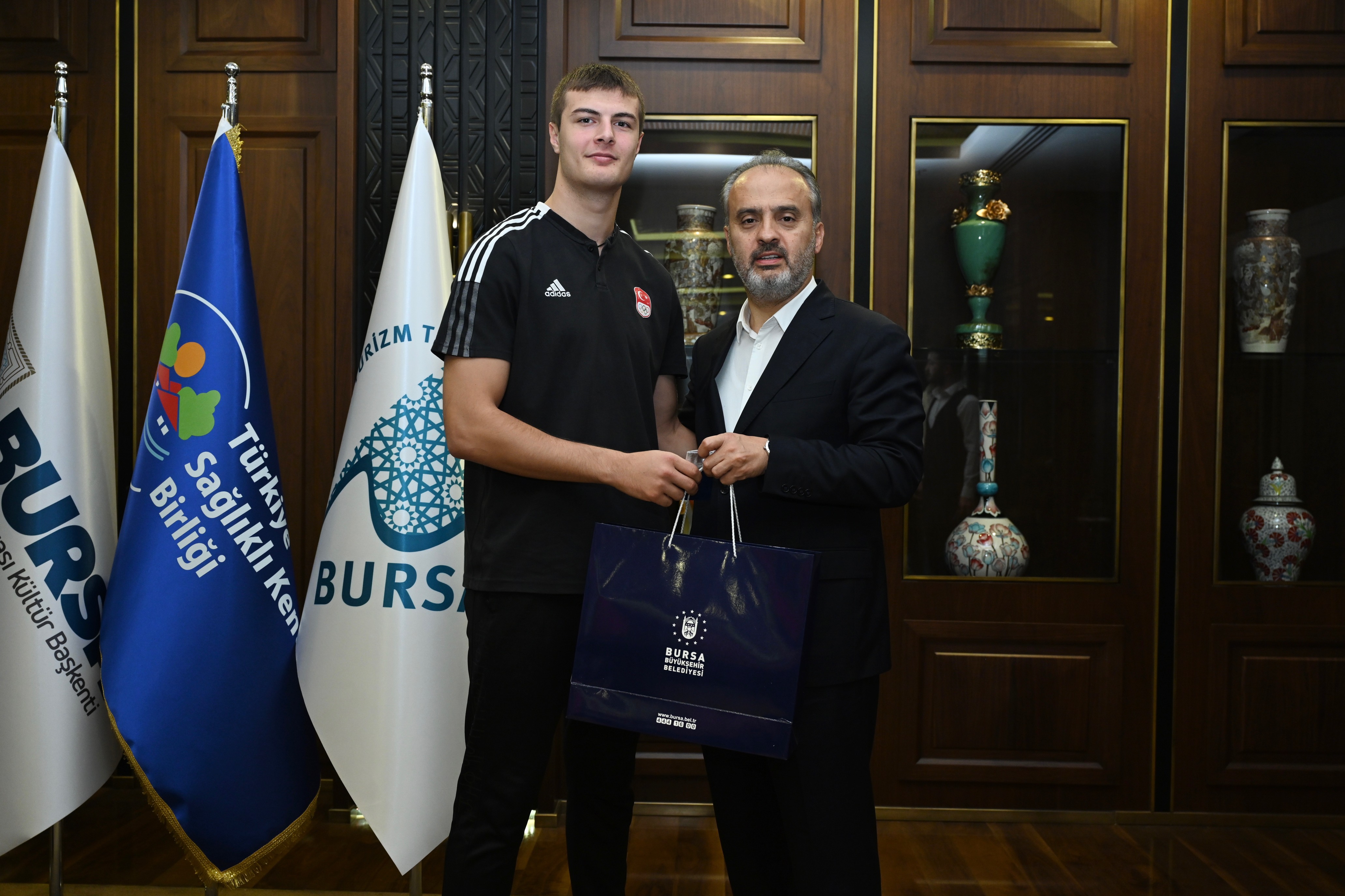 BURSA – Bursa Büyükşehir Belediye Başkanı Alinur Aktaş, 2023 yılında milli formayla uluslararası başarı elde eden Bursa Büyükşehir Belediyespor Kulübü sporcularını ağırladı. Sporcuları tebrik eden Başkan Aktaş, Büyükşehir Belediyespor Kulübü’nün amaçlarından birinin de yetenekli sporcuları tespit ederek milli takımlara kazandırmak olduğunu söyledi.