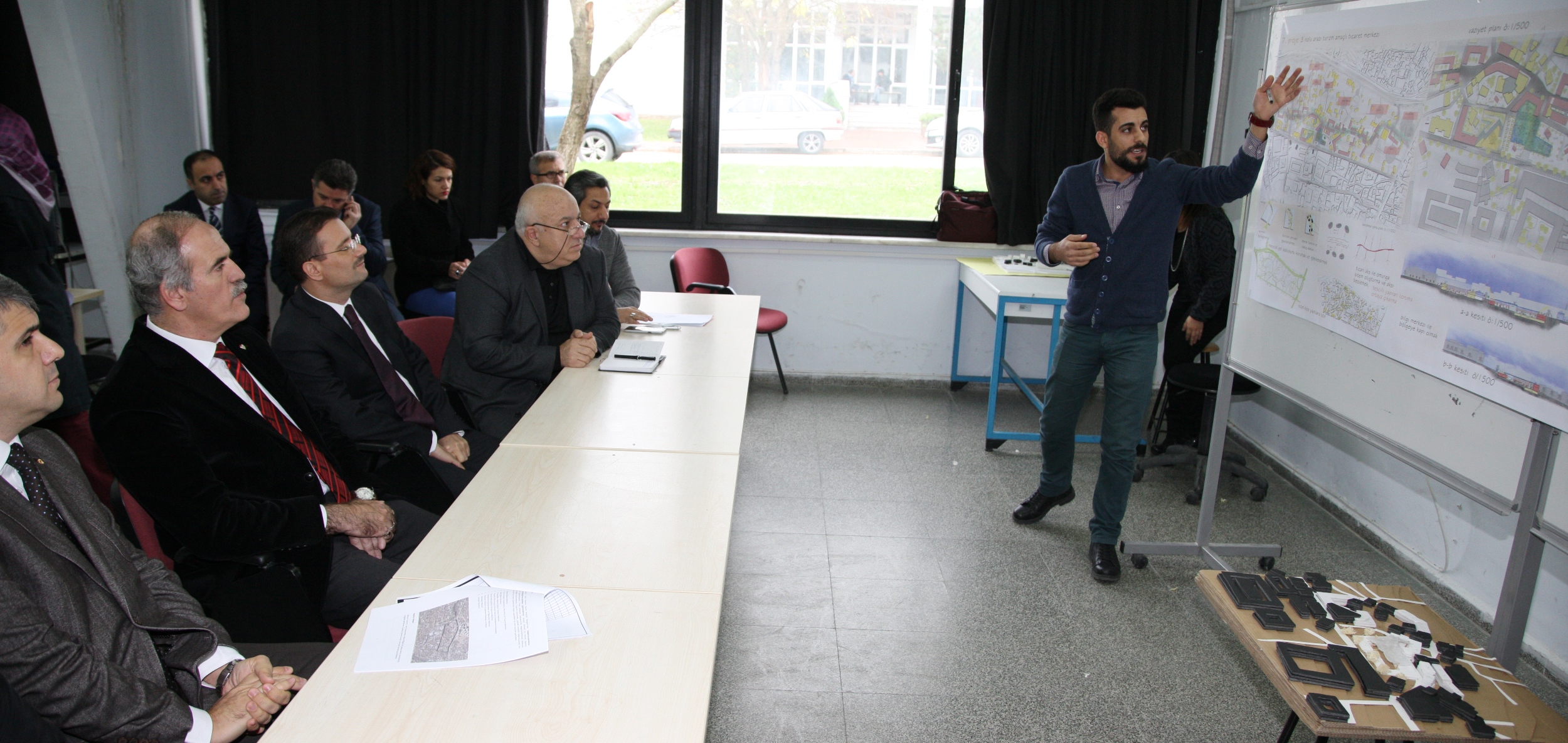 Büyükşehir Belediyesi Genel Sekreter Yardımcısı Bayram Vardar ile Mimarlar Odası Bursa Şube Başkanı Can Şimşek, Mimar Hasan Sözüneri ve Mimar Şenol Şimşek de mimar adaylarının projelerini dikkatlice izleyerek değerlendirmelerde bulundu.