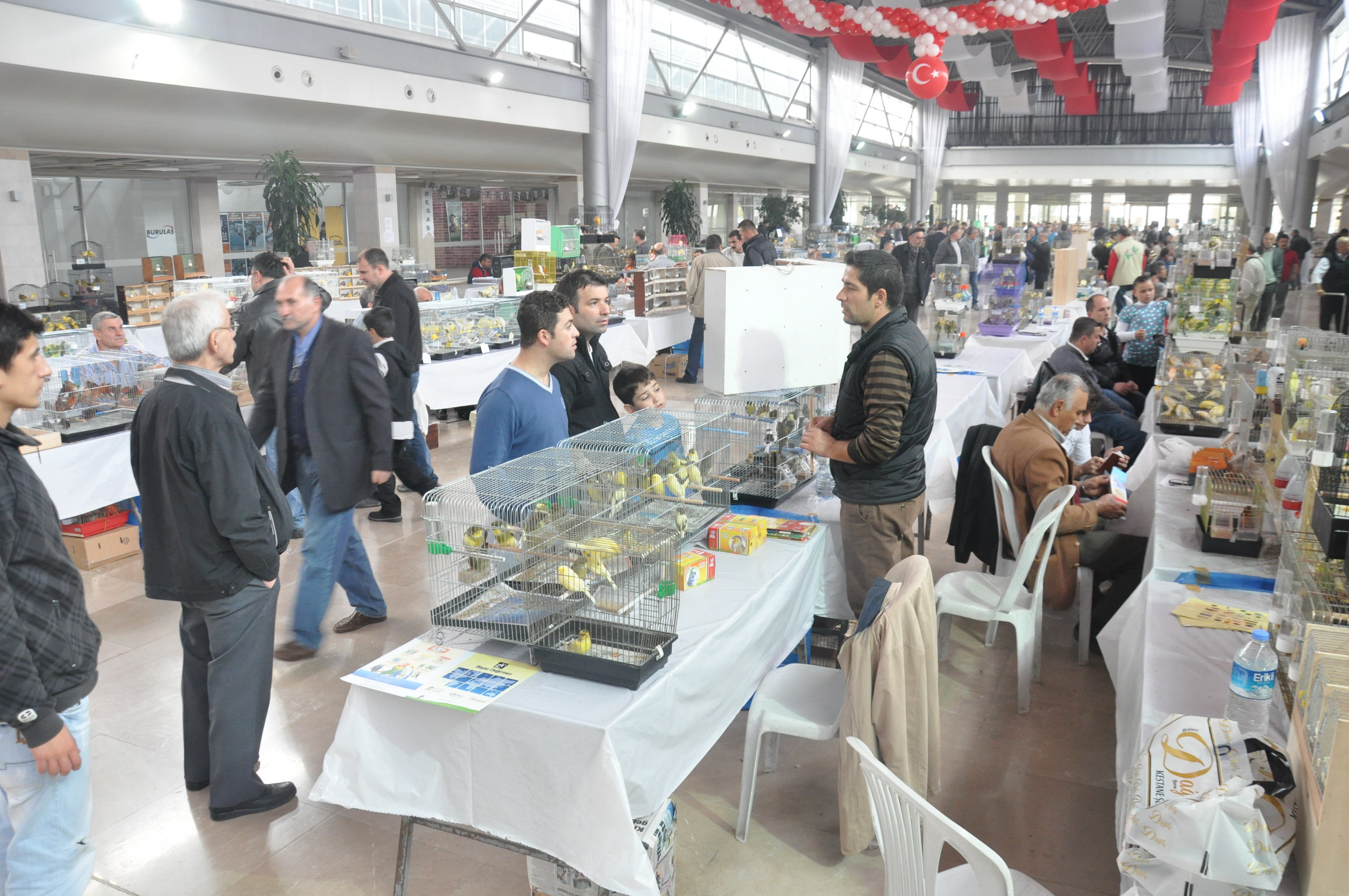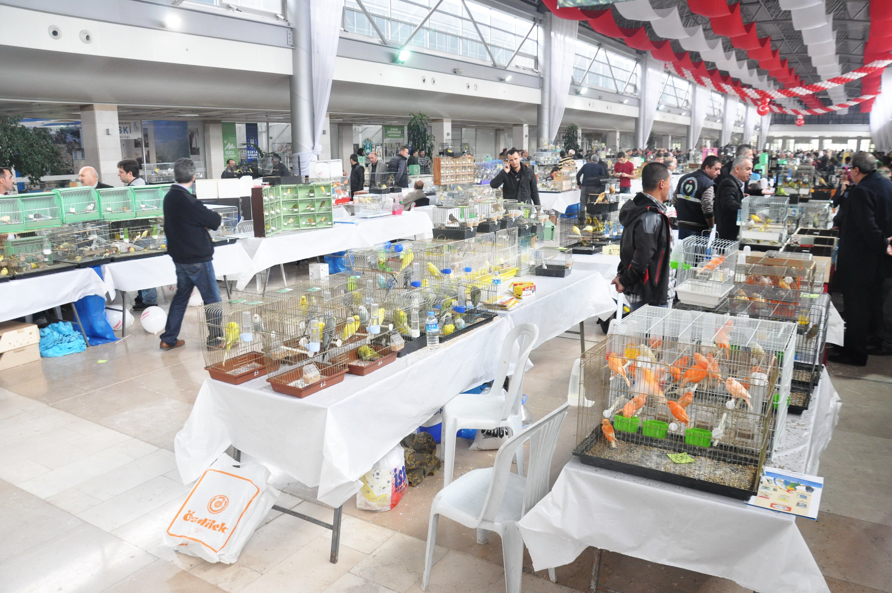 Geçtiğimiz yıl 17. Kanarya ve Kafes Kuşları Türkiye Şampiyonası’na ev sahipliği yapan Merinos AKKM, bu yıl ise 6-7-8-9 Ocak 2014 tarihlerinde İzmir’de yapılacak şampiyonanın Bursa ayağını ağırlıyor. Farklı şehirlerden gelen 150 farklı türden toplam 3 bin cins kuşun yarışacağı şampiyonada, uzmanlar sesleri, duruşları, görünümleri gibi dallarda değerlendirme yapıyor. Merinos AKKM Fuar Alanı’nda iki gün açık kalacak olan şampiyonaya kuş tutkunları da büyük ilgi gösteriyor. Bir yandan Zeki Müren ve Müzeyyen Senar Sergi Salonları’nda şampiyon kuşlar hünerlerini sergileyerek dereceye girmek için uğraşırken, diğer yandan ziyaretçiler kuşlarını da satma veya takas etme imkanı buluyor. Renkli görüntülerin yaşandığı sergide, muhabbet kuşlarından papağana, Hint bülbülünden kanaryaya kadar yüzlerce çeşit kuş çeşidi yer alıyor.