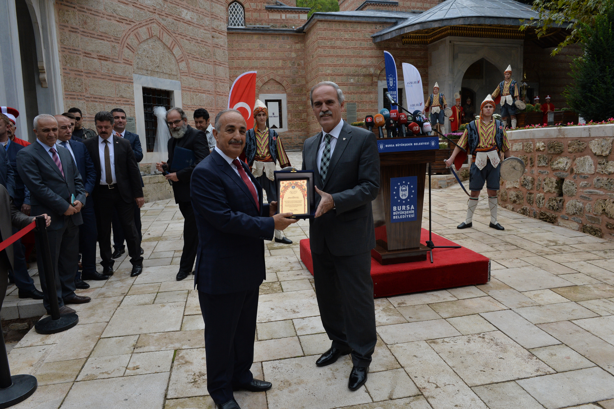Başkan Altepe, konuşmasının ardından külliyenin restorasyon işlerini gerçekleştiren Sama İnşaat Yönetim Kurulu Başkanı Mahmut Sabuncuoğlu’na plaket verdi.
