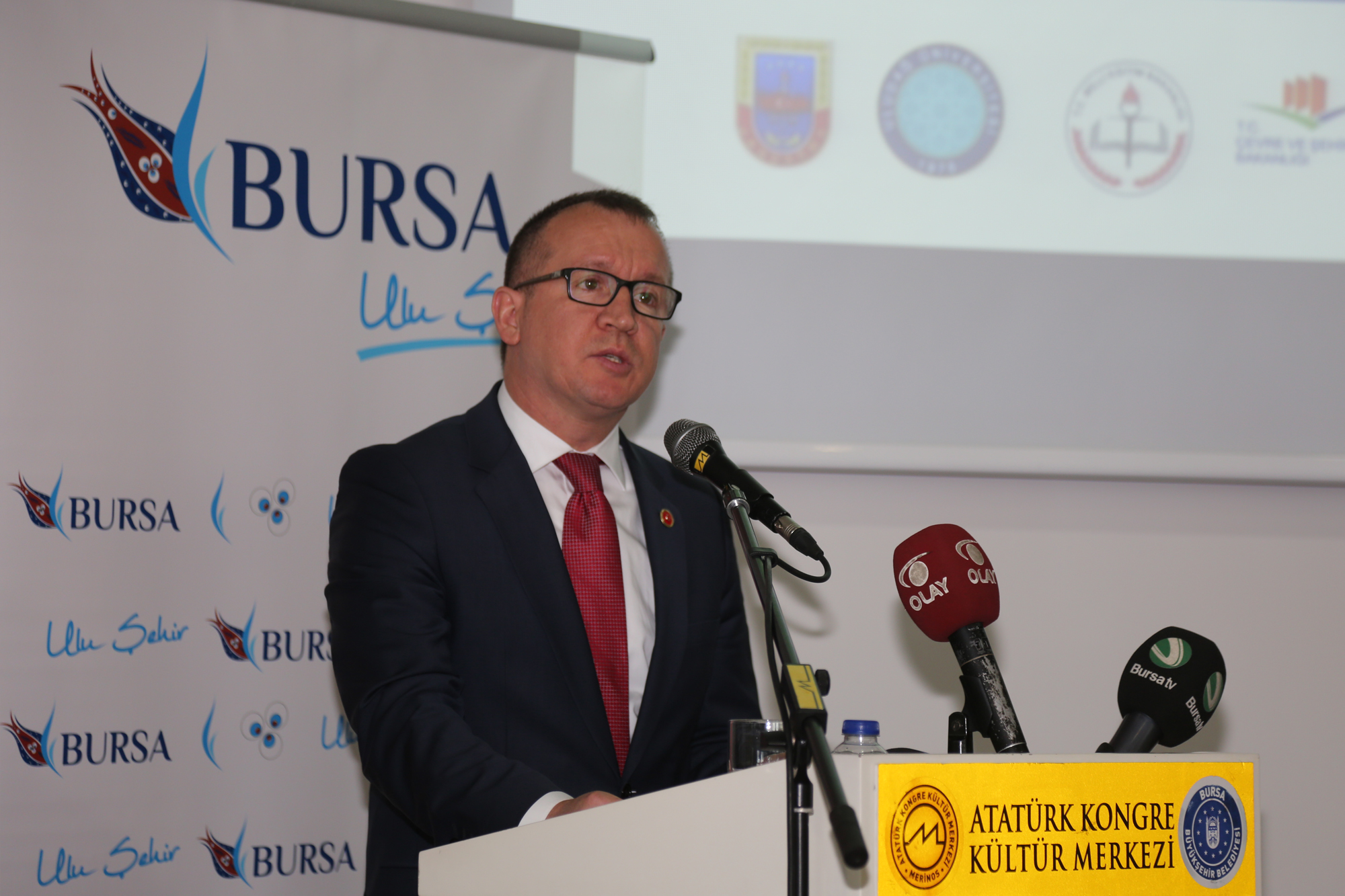 Konuşmasında çözüm önerilerilerine de dikkati çeken Başkanvekili Karlık, “Bursa’da sürdürülebilir ulaşım ve trafik sorunlarının çözümü için kentsel planlama ile Nilüfer, Mudanya, Gemlik ve Yıldırım ilçelerinde yeni kanat çekim merkezleri oluşturulmalı ve bu merkezlerde de sağlık, eğitim, dinlenme, eğlenme ve benzeri kentsel donanımlarla bisiklet ve yaya ulaşımına öncelik verecek akıllı kent merkezleri oluşturulmalıdır. Vatandaşların toplu taşımadan hızlı, konforlu, ucuz ve kaliteli bir şekilde yararlanması sağlanmalıdır. Bursa’da da insan ve çevre sağlığını ön plana çıkaran sağlıklı şehirler konseptine uygun toplu taşıma sistemlerin geliştirilmesi amacıyla raylı sistem ağı artırılması ve yayalaştırma yapılarak kent merkezine özel araç girişi kısıtlanmalıdır. Tarihi ve ticari anlamda Bursa’nın kalbi konumundaki tarihi kent merkezinde ulaşım probleminin Avrupa’nın çağdaş kentlerindeki gibi yayalar, bisikletliler ve raylı sistemler dâhil toplu taşım olanakları kullanılarak çözülmesi hedeflenmeli. Toplu taşımayı teşvik etmek ve kent merkezine özel araç yolculuklarının sayısını azaltmak için yol boyu ve yol dışı park yerlerinin denetlenmesi, kısaca park etmenin yönetilmesi için ‘Bursa otopark yönetim ve yönlendirme sistemi’ kurulmalı, bisiklet ulaşımının genel trafik içerisindeki payının artmasıyla amacıyla Doğu Batı aksında lineer bir bisiklet yolu ve BursaRay istasyonlarına bağlantılı bölgesel dikey bisiklet hatları ile bisiklet kullanımı yüzde 6-7 seviyelerine yükseltilmeli” diye konuştu.