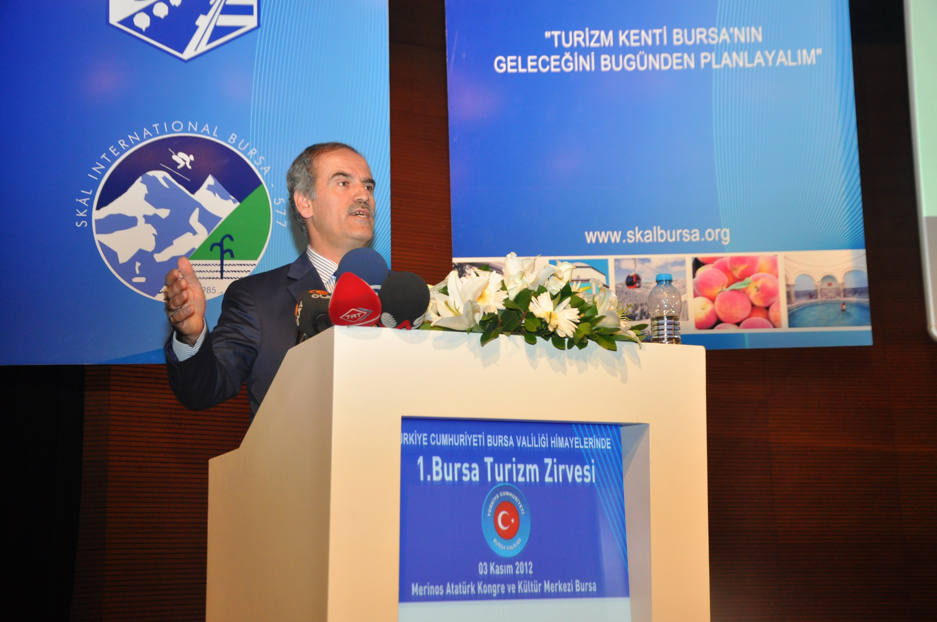 Bursa Valiliği, Bursa Büyükşehir Belediyesi ve Bursa Kent Konseyi’nin katkılarıyla Bursa Skal Kulübü tarafından gerçekleştirilen 1. Bursa Turizm Zirvesi´nin resmi açılışı, Merinos Atatürk Kongre ve Kültür Merkezi´nde gerçekleştirildi. “Bursa´nın Geleceğini Bugünden Planlayalım” ana temasıyla düzenlenen zirveye Vali Şahabettin Harput, Büyükşehir Belediye Başkanı Recep Altepe, Kültür ve Turizm Bakanlığı Müsteşar Yardımcısı Faruk Şahin, Türkiye Skal Federasyonu Başkanı Deniz Anafay, BTSO Meclis Başkanı İlhan Parseker ile Bursa Skal Kulübü Başkanı Hasan Eker ile sektör temsilcileri katıldı.