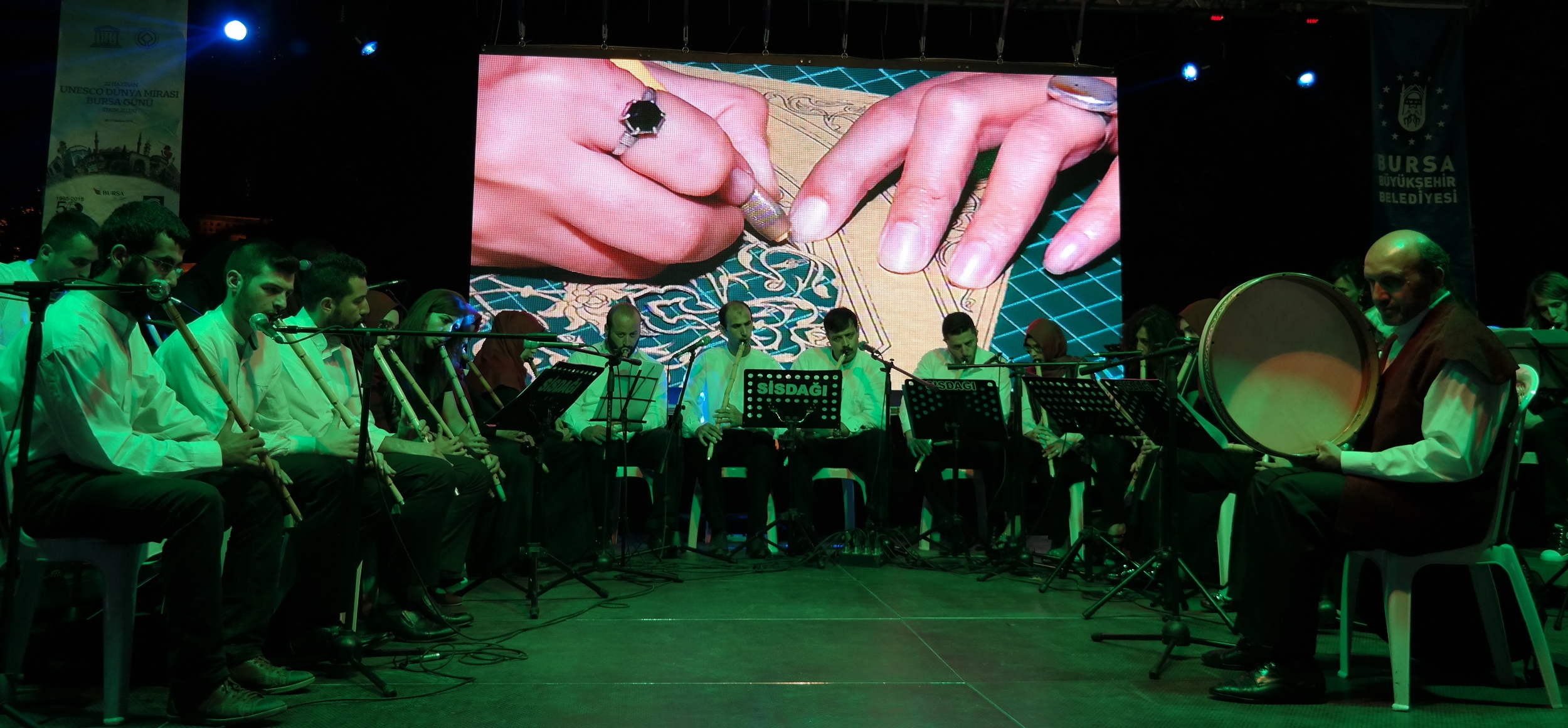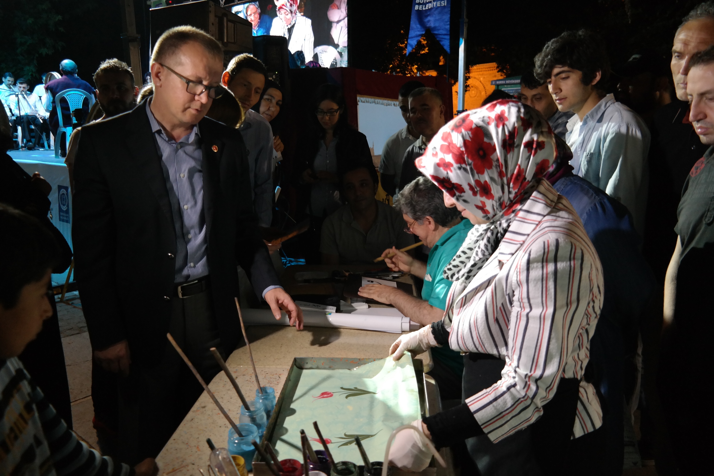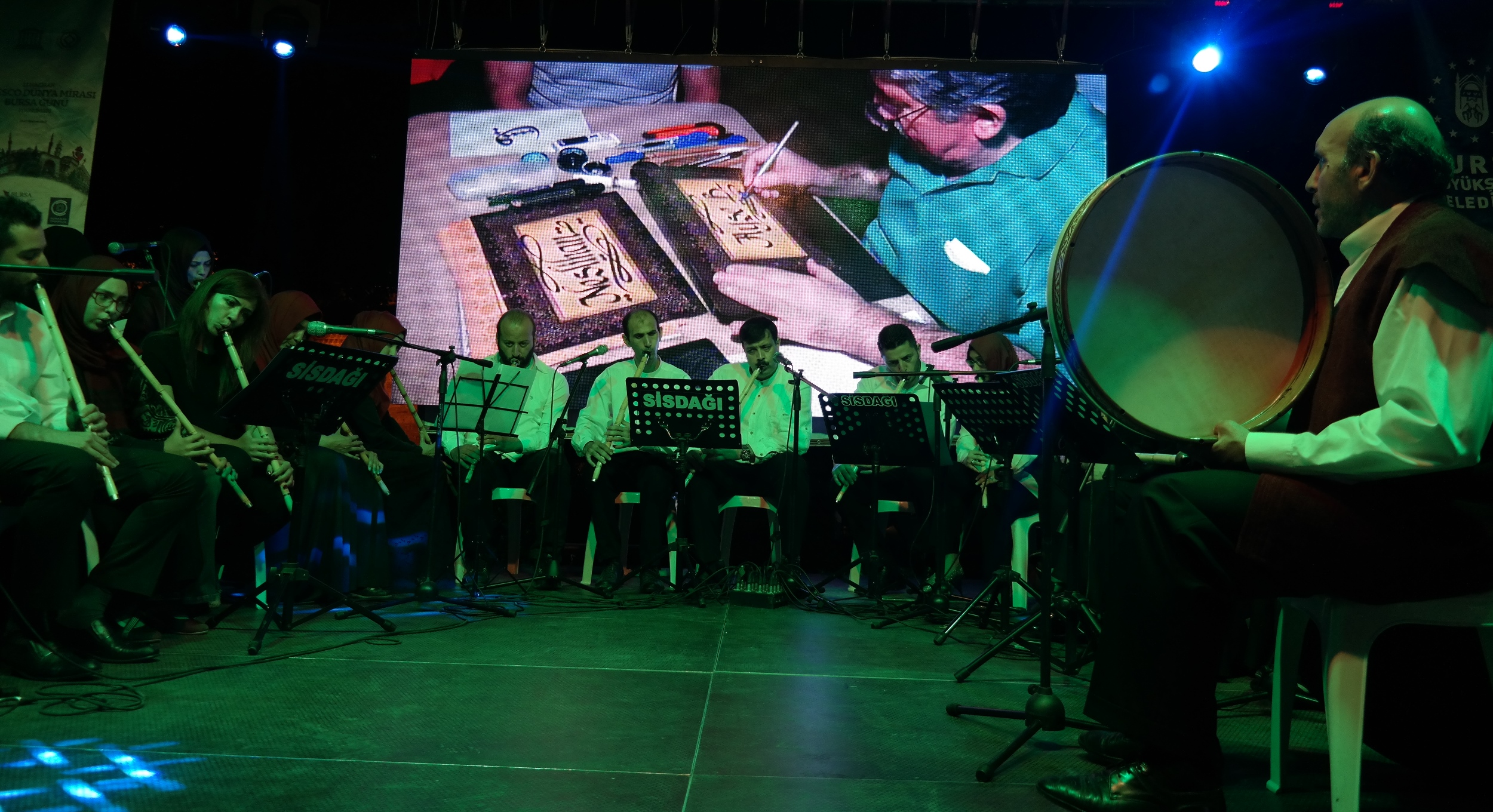Orhangazi Meydanı’nda gerçekleştirilen etkinlikte Neyzen İbrahim Benlioğlu ve ekibi, ‘40 Ney 1 Nefes’ adlı dinletiyle gönüllere dokundu. Programda, aynı zamanda, usta sanatçılar Arife Aktuğ, Nükhet Poyraz, Hatice Yüksel, Gül Kölük, Ersut Biçkin, Zeynep Gültekin ve Mutlu Çatalkaya; ebru, tezhip, kaligrafi ve çini gibi geleneksel Türk el sanatlarından örnekler sundu. Sanatçıların performansları vatandaşların büyük ilgisini çekti. Büyükşehir Belediyesi Başkanvekili Abdülkadir Karlık da sanatçıları ziyaret ederek, çalışmalarıyla ilgili detaylı bilgiler aldı.