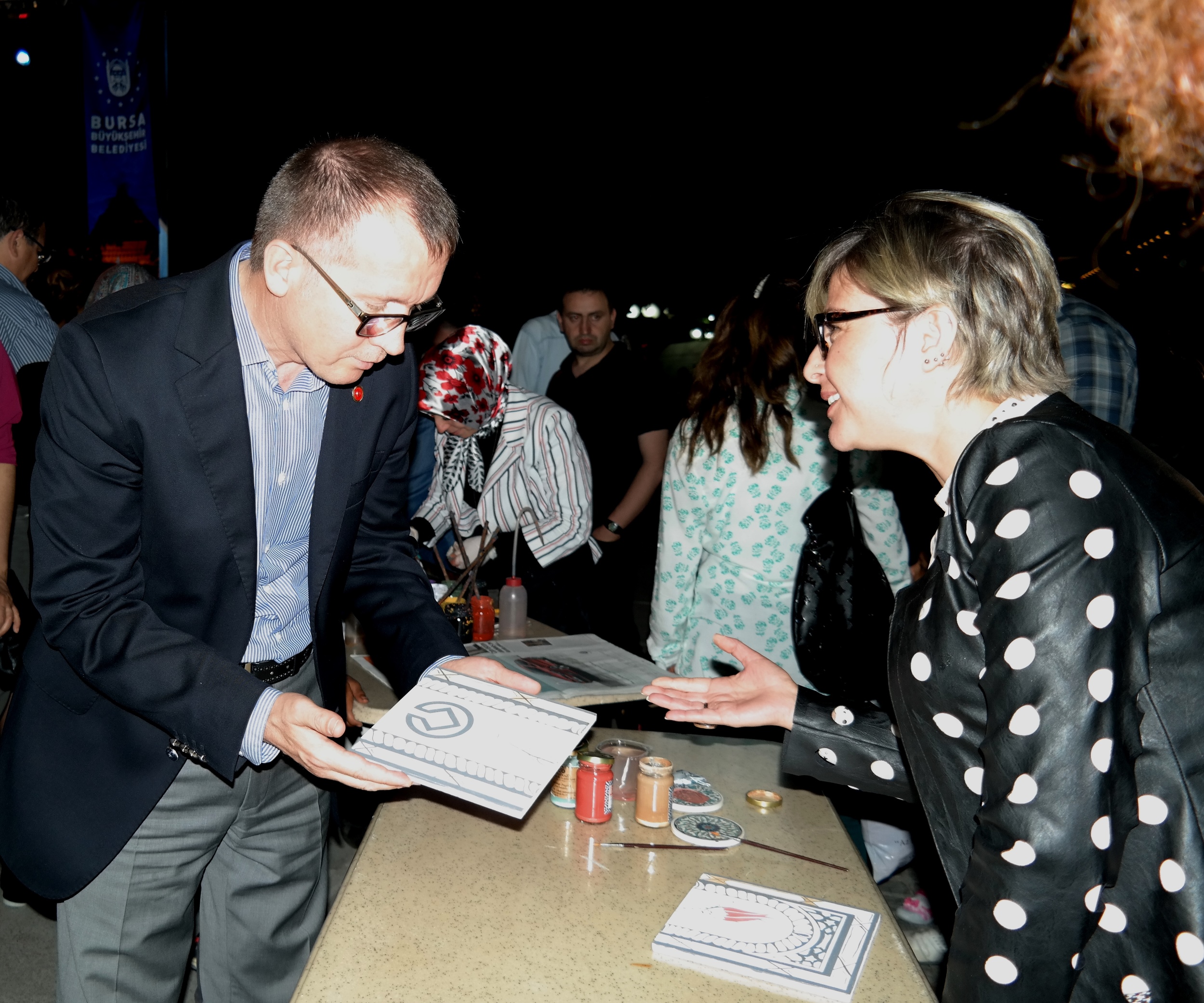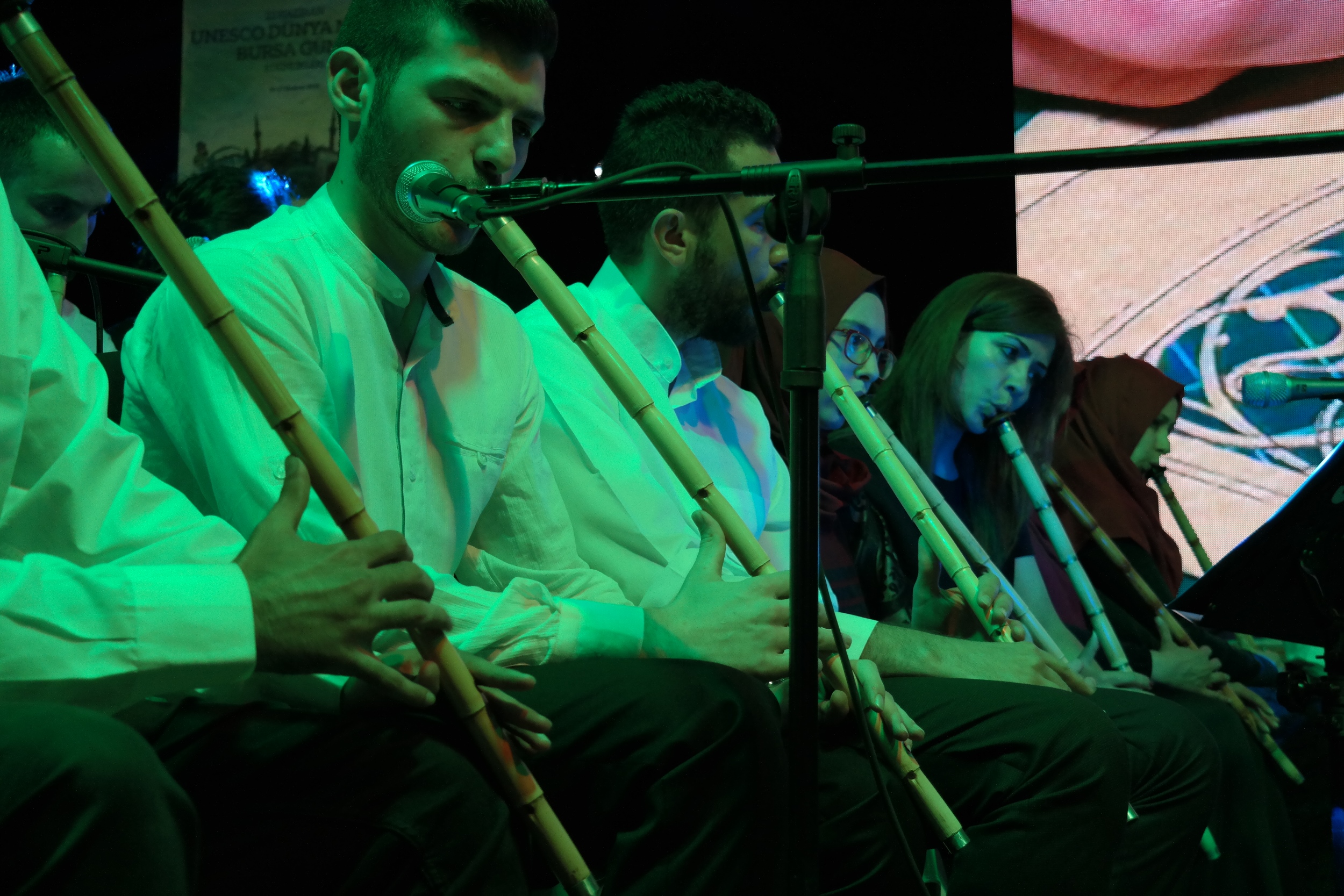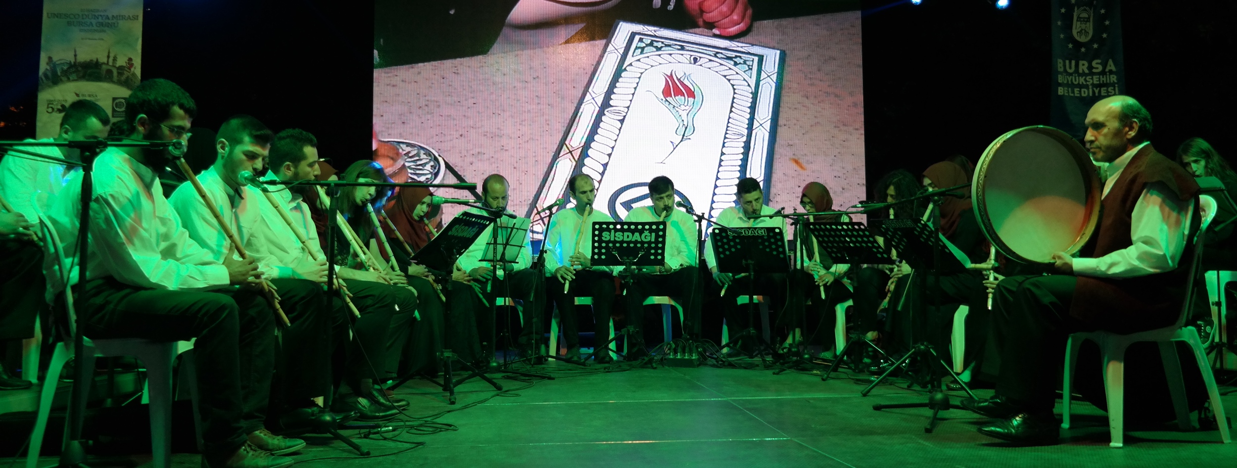 Orhangazi Meydanı’nda gerçekleştirilen etkinlikte Neyzen İbrahim Benlioğlu ve ekibi, ‘40 Ney 1 Nefes’ adlı dinletiyle gönüllere dokundu. Programda, aynı zamanda, usta sanatçılar Arife Aktuğ, Nükhet Poyraz, Hatice Yüksel, Gül Kölük, Ersut Biçkin, Zeynep Gültekin ve Mutlu Çatalkaya; ebru, tezhip, kaligrafi ve çini gibi geleneksel Türk el sanatlarından örnekler sundu. Sanatçıların performansları vatandaşların büyük ilgisini çekti. Büyükşehir Belediyesi Başkanvekili Abdülkadir Karlık da sanatçıları ziyaret ederek, çalışmalarıyla ilgili detaylı bilgiler aldı.