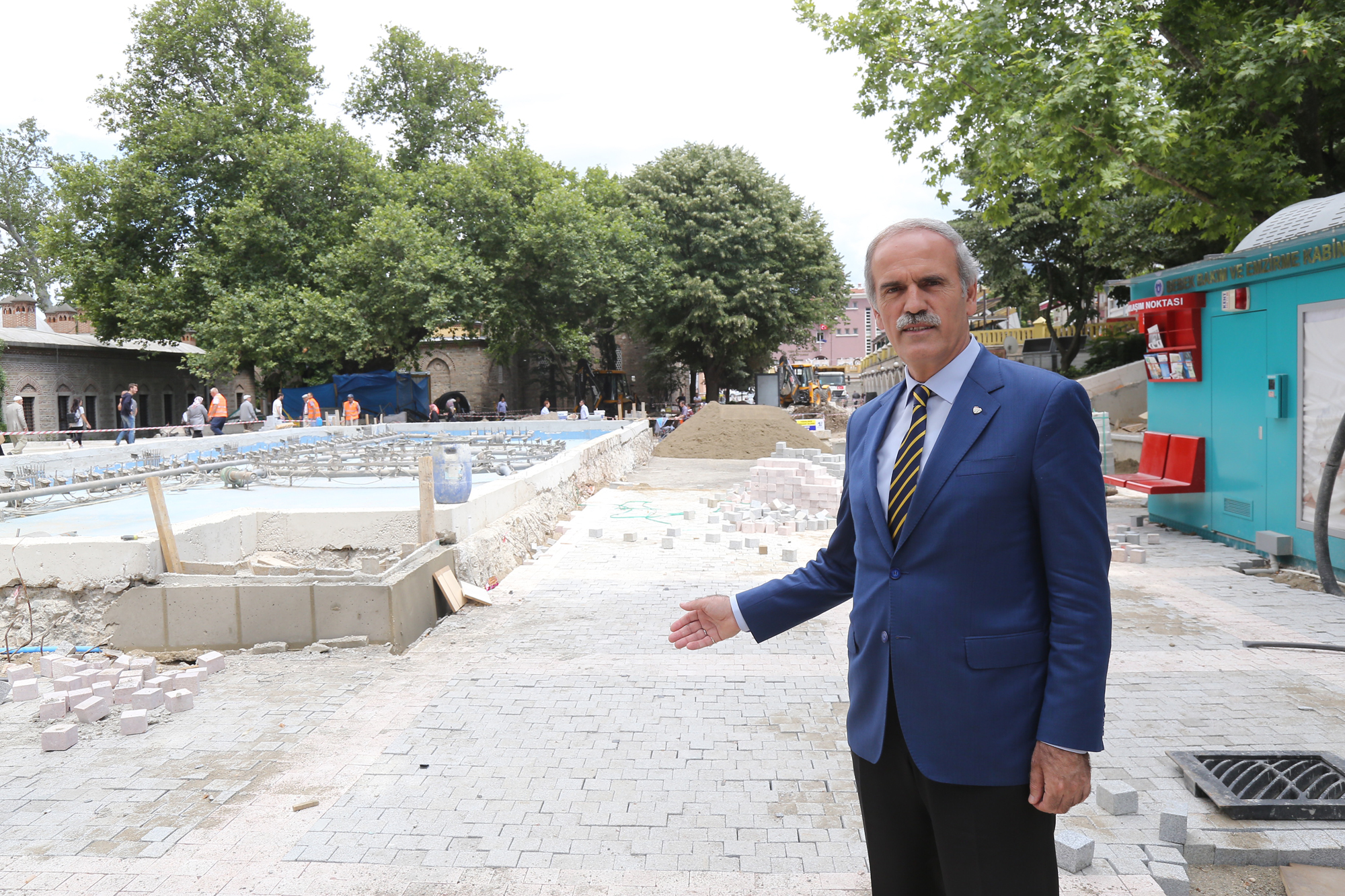 Büyükşehir Belediye Başkanı Recep Altepe, Orhangazi Parkı’nda devam eden çalışmaları yerinde inceledi. Orhangazi Parkı’nın yenilenmesine yönelik çalışmaların yıllardır gündemde olduğunu ancak yoğunluk nedeniyle biraz ötelendiğini ifade eden Başkan Altepe, “Bursa’nın bir kalite kenti olması yolundaki çalışmalarımız hızla sürüyor. İstiyoruz ki şehrimizde çirkin görüntüler olmasın. Kentsel tasarım projeleriyle kentimizin yaşam kalitesi yükselsin. Bu amaç doğrultusunda Orhangazi Parkı’ndaki çalışmalara başladık. Bu çalışma ile meydanın altyapısı tamamen yenilenmiş oldu. Halkımızın kaliteli vakit geçireceği oturma yerleri, engelli vatandaşların kolaylıkla girip çıkabileceği alanlar başta olmak üzere en kaliteli malzeme ve en kaliteli uygulamalar gerçekleştiriliyor. Havuz da yeniden dizayn ediliyor. İnşallah bayram alışverişi başlamadan önce toparlamış olacağız. Bu çalışma çarşı ve hanlar bölgesine büyük değer katacak. Sadece esnafımızdan ve vatandaşlarımızdan biraz daha sabır diliyoruz” diye konuştu.
