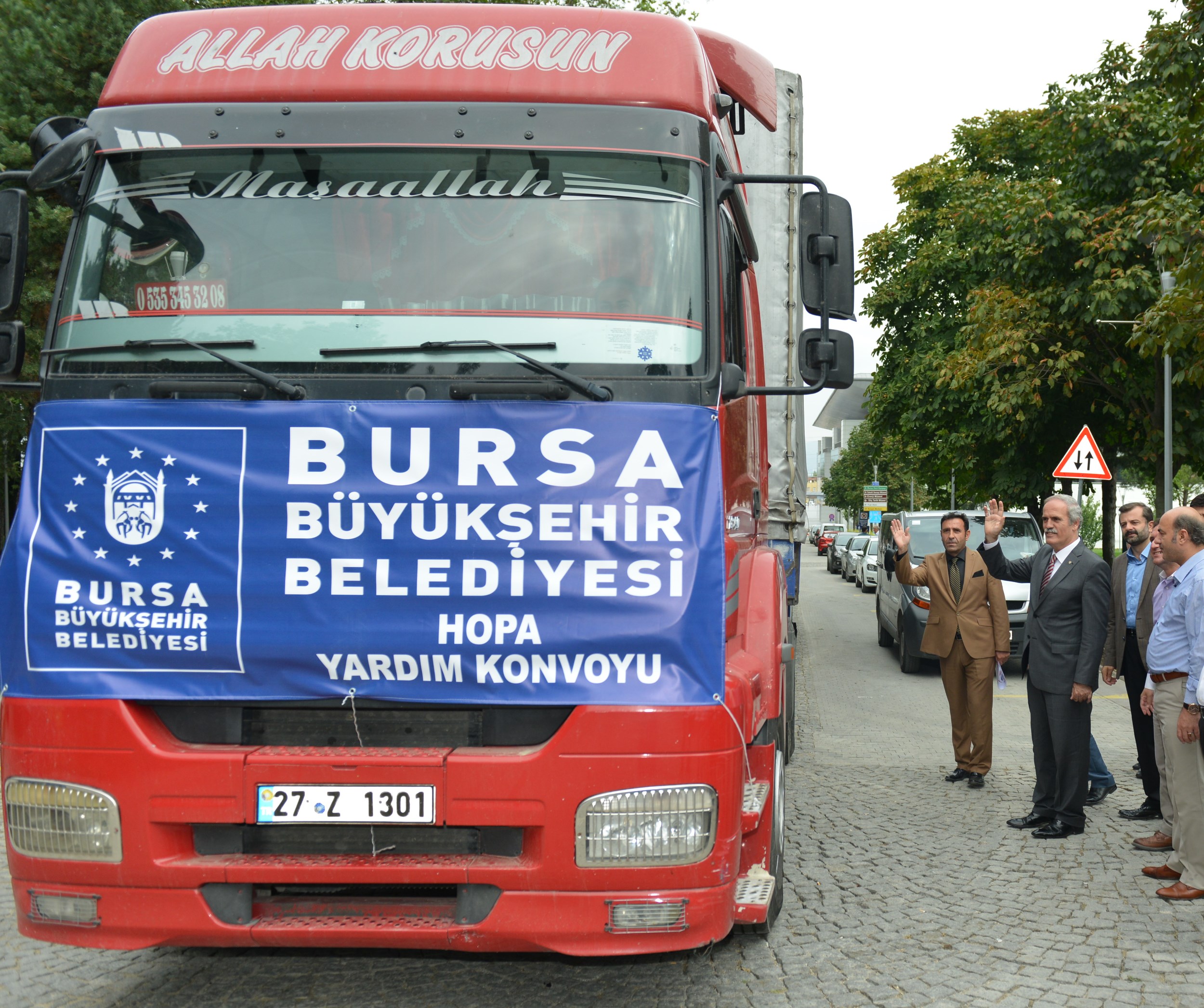 BURSA – Bursa Büyükşehir Belediyesi, Artvin Hopa’da yaşanan selin ardından yaralarını sarmaya çalışan vatandaşlara yardım elini uzattı. Büyükşehir Belediye Başkanı Recep Altepe, erzak ve eşyalardan oluşan yardım tırını, Hopa’ya uğurladı.