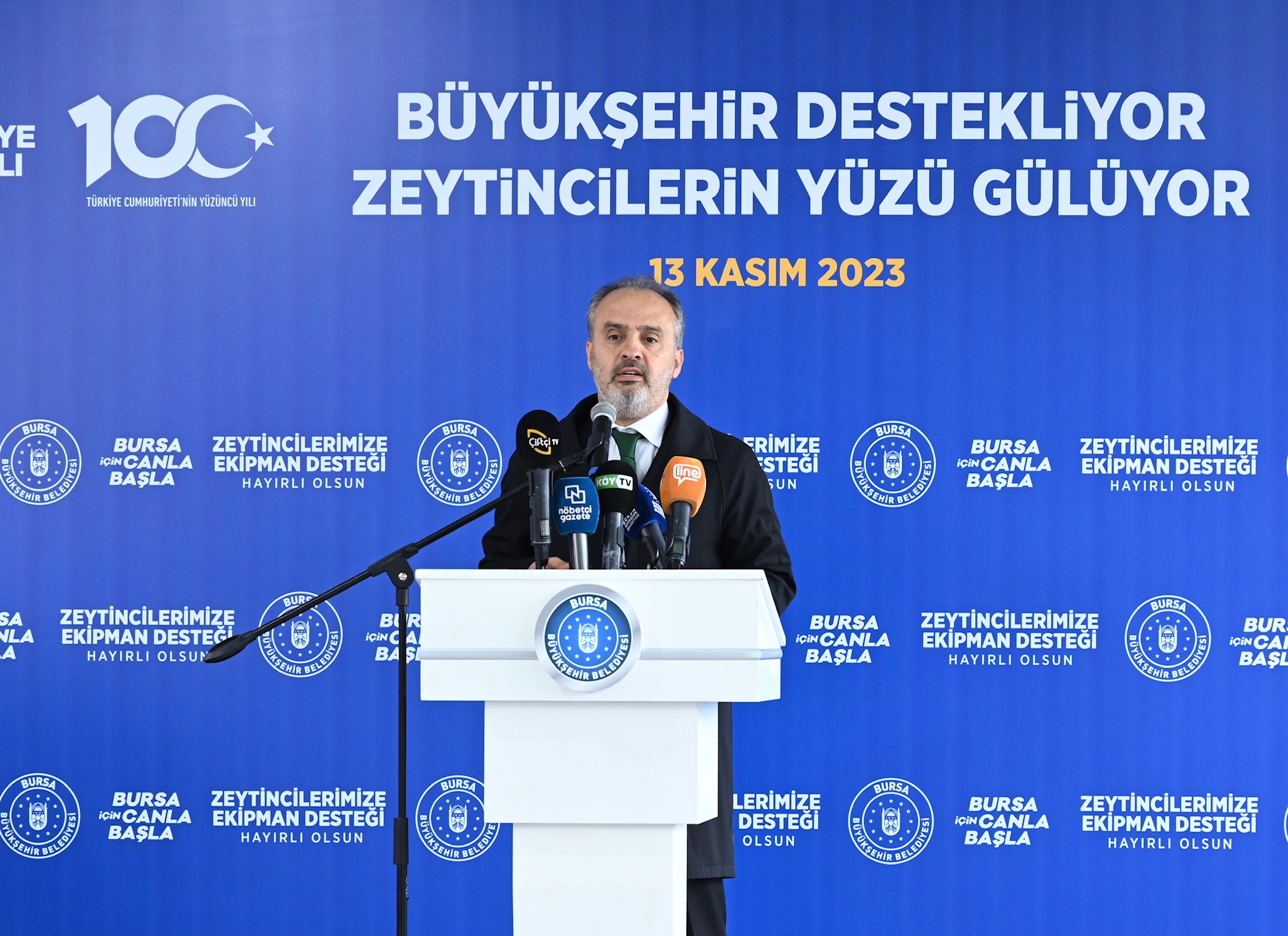 Bursa’daki zeytin üretiminde, kalite ve ürün artışını sağlamak, pazarlama koşullarını iyileştirmek ve üreticimize destek olmak amacıyla ‘Zeytin toplama örtüsü projesi’ni de hayata geçirdiklerini belirten Başkan Aktaş, “Bu kapsamda 250 zeytin üreticimizin her birine 2 adet 6x8 ebatlarında olmak üzere toplamda 500 adet zeytin yaygı desteği sağlıyoruz. Lisanslı depo ve zeytin hali oluşumuyla alakalı müthiş bir proje hazırlıyoruz. Proje yapıldığında bölgeye gerçek manada hizmet edecektir. Gemlik zeytinini tüm Türkiye’ye ve dünyaya anlatmalıyız. Şuan planlama çalışmalarını yapıyoruz. Bittiğinde Gemlik adına çok önemli kazanım olacaktır. Tüm üreticilerimize hayırlı bereketli bir sezon diliyorum” dedi.