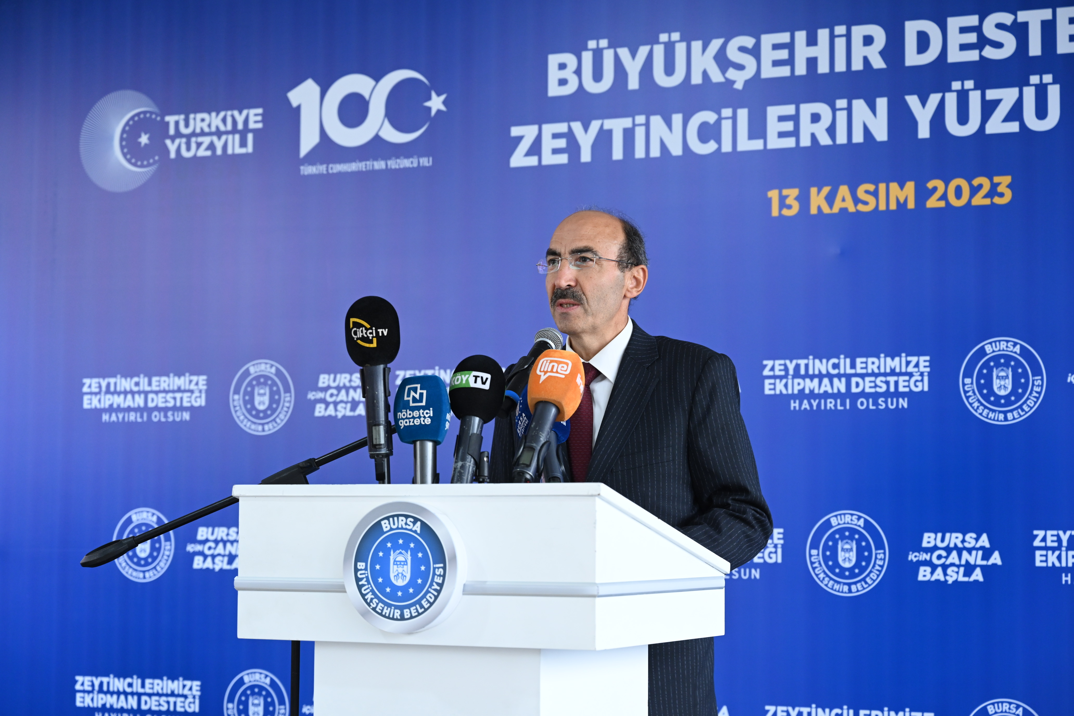 Bursa Vali Vekili Mustafa Kılıç, tarıma ve üreticiye verdiği desteklerden dolayı Bursa Büyükşehir Belediyesi’ne teşekkür etti. Tarihi 8 bin yıl öncesine kadar dayanan zeytinin, tüm medeniyetlerde bereket, barış, uzun ömür ve olgunluk değerlerini temsil ettiğini hatırlattı. Sağlık açısından da faydalı olan zeytine talebin giderek arttığını ifade eden Kılıç, “Zeytin, dünyada olduğu gibi ülkemizde de önemli bir üründür. Ülkemizdeki toplam zeytin üretiminin yaklaşık yüzde 20’si Bursa’da gerçekleşiyor. Geçtiğimiz üretim sezonunda 187 bin 692 ton sofralık zeytin üretimiyle Bursa ikinci sırada yer almıştır. Bursa özelinde zeytin üretimi konusunda Gemlik ilk sırada yer almaktadır. Gemlik’le özdeşleşmiş Gemlik zeytini coğrafi işaret alarak tescil edilmiş, bunun yanında AB tarafından da bu yıl tescil edilmiştir. Üretim sezonunun hayırlı uğurlu olmasını diliyorum” diye konuştu.
