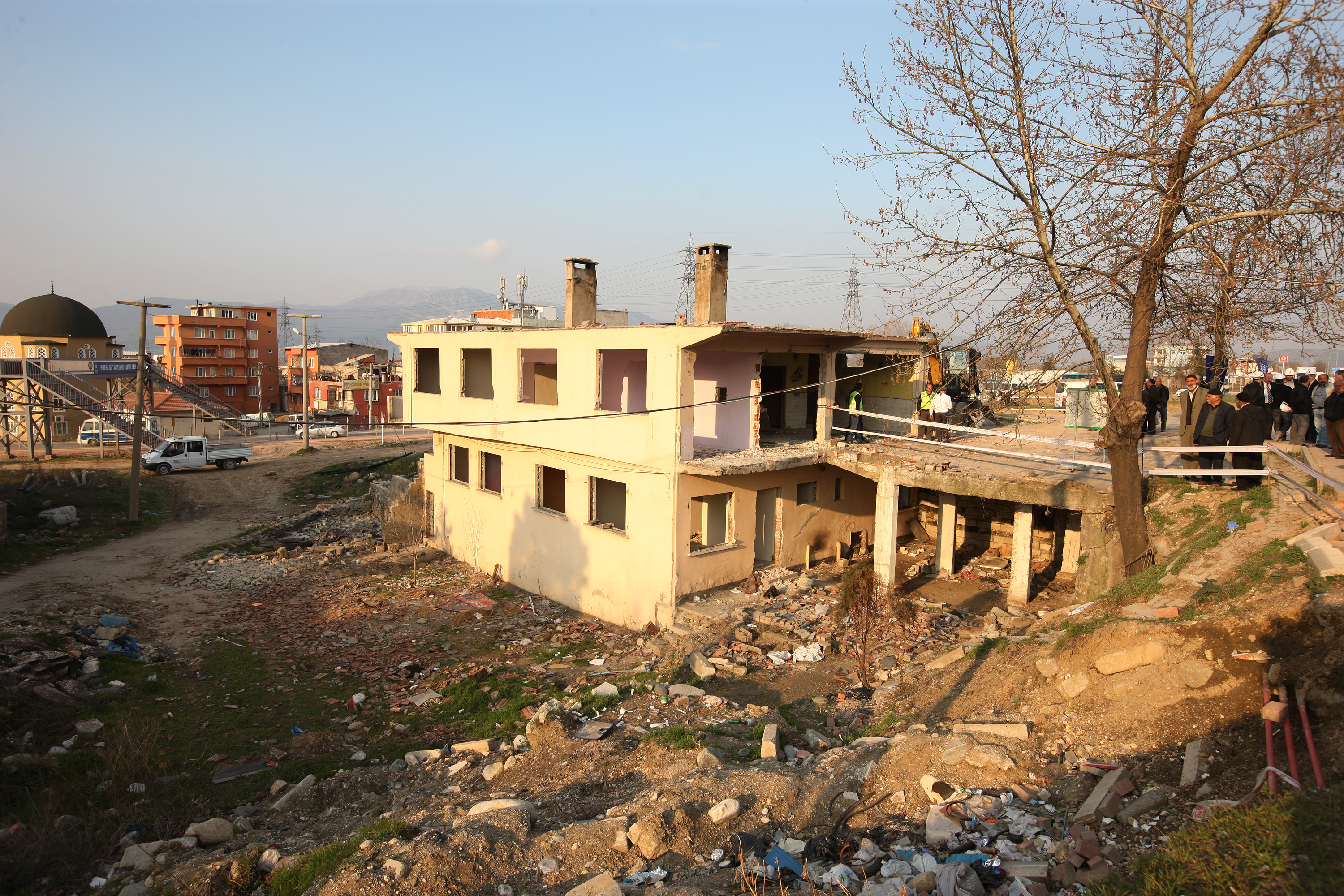 BURSA – Bursa Büyükşehir Belediyesi tarafından hafif raylı sistemi kentin doğusuyla buluşturmak amacıyla sürdürülen çalışmalar kapsamında, Şirinevler Mahallesi’nde kamulaştırılan 2 katlı bina yıkıldı.
