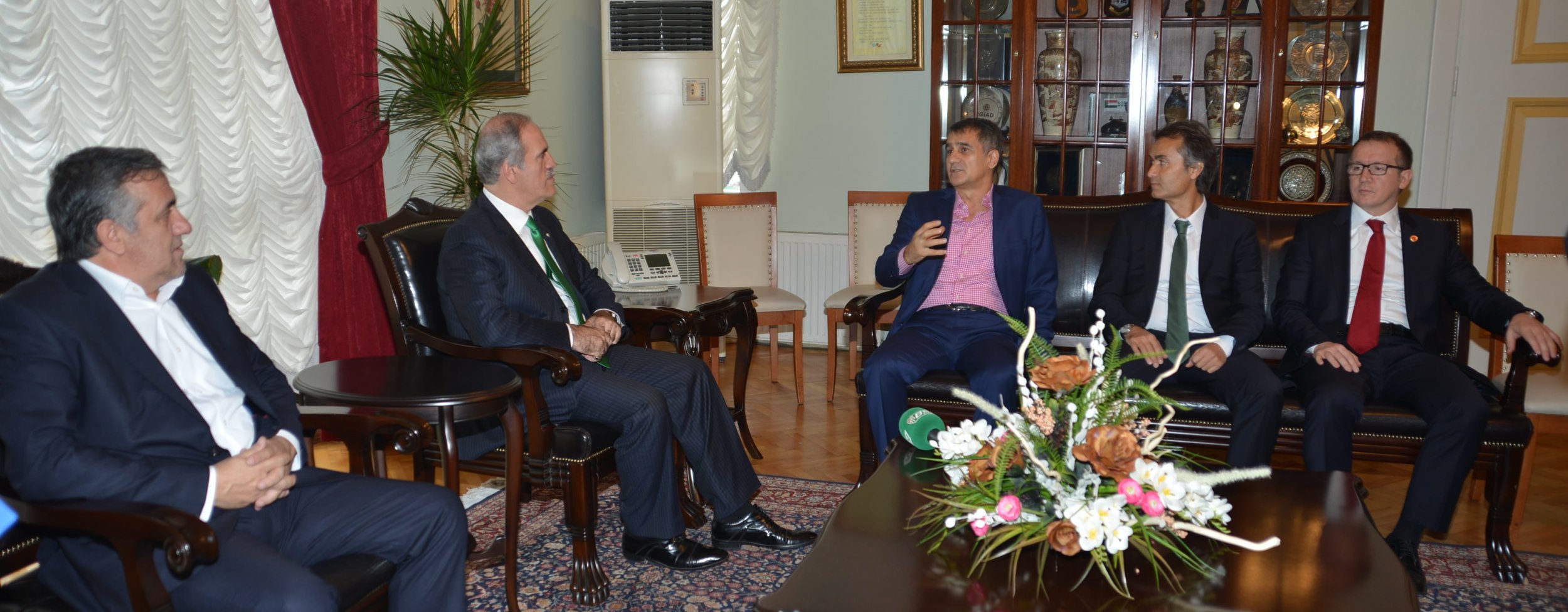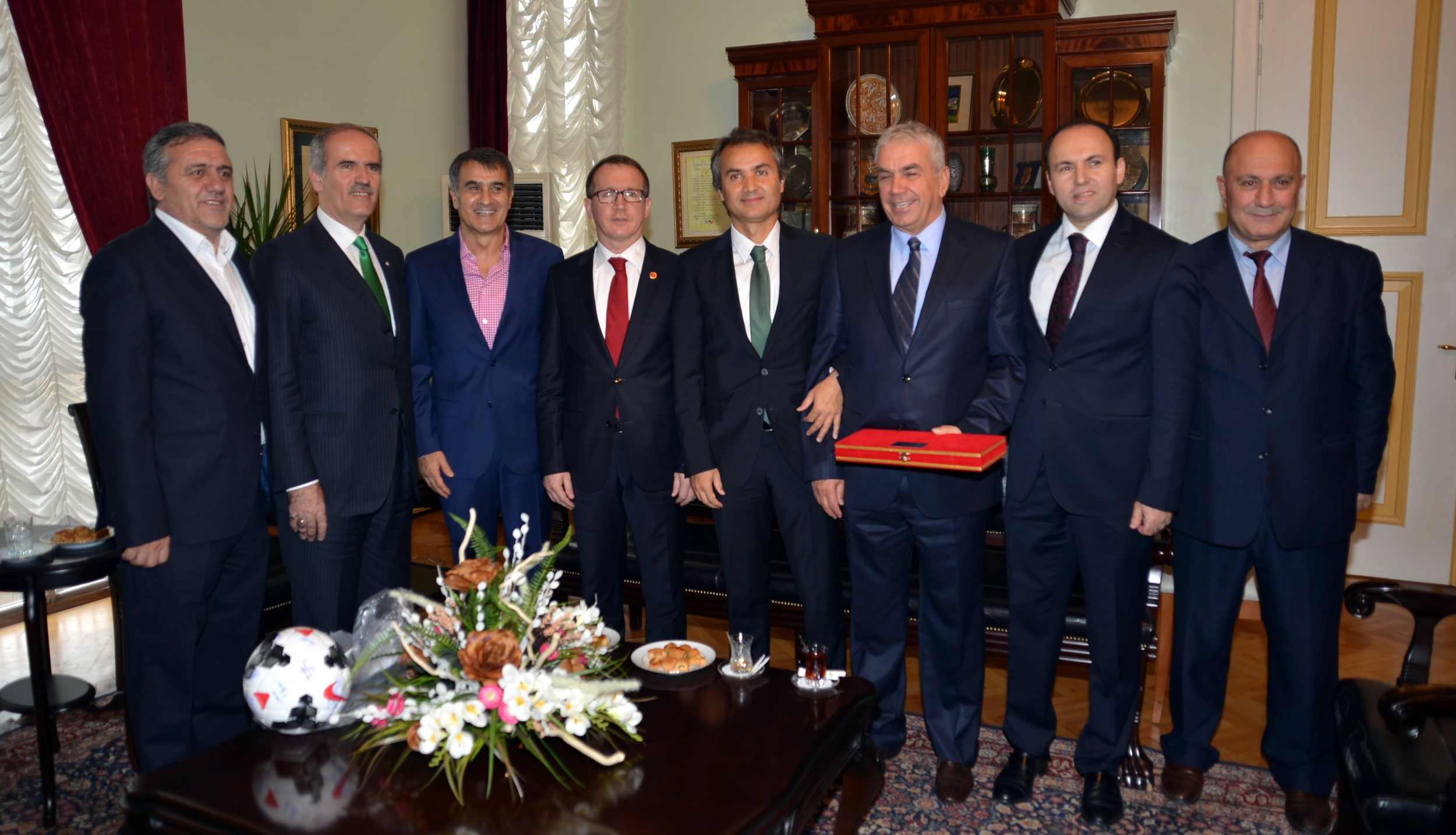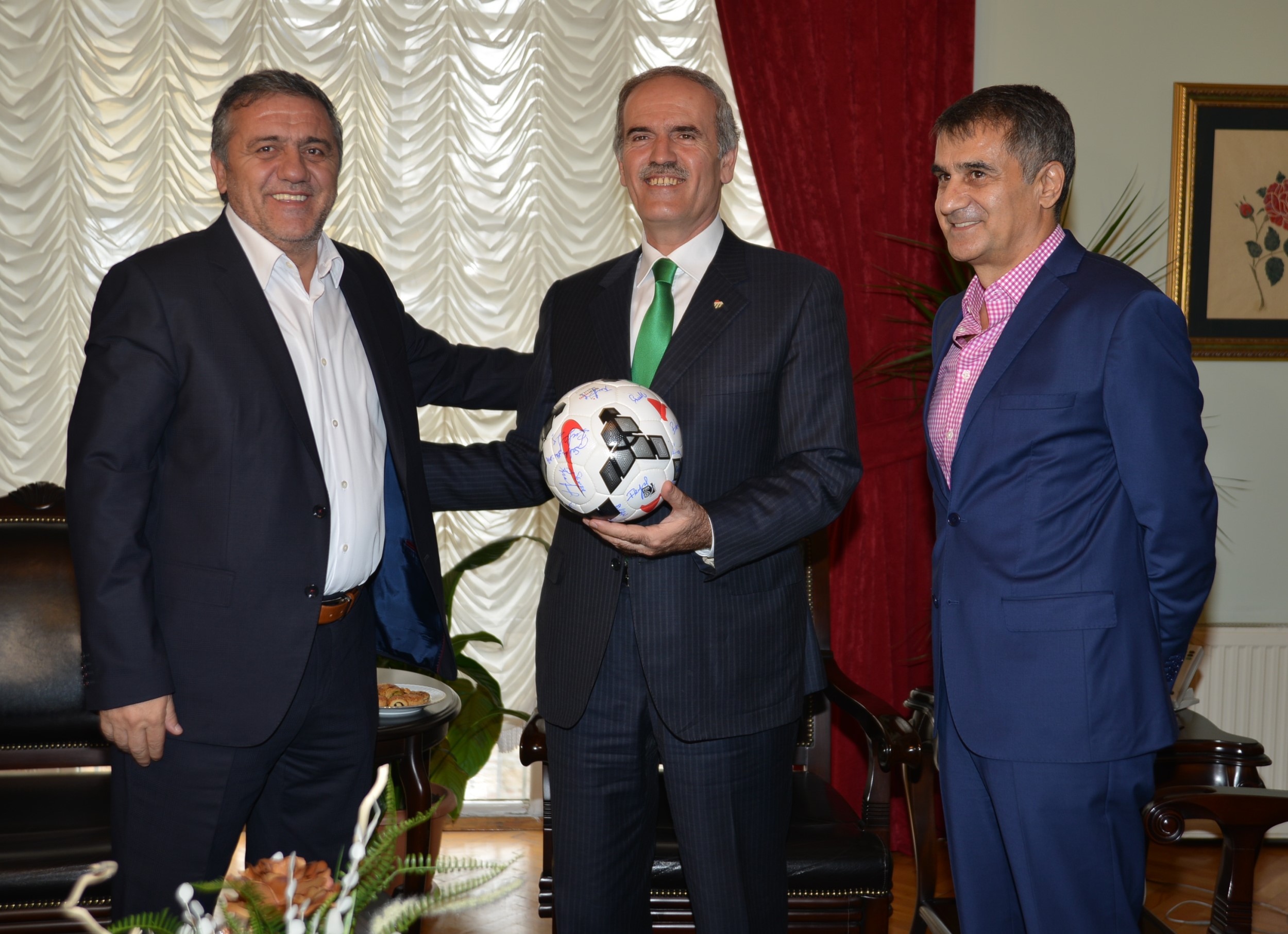 Büyükşehir Belediye Başkanı Recep Altepe, Bursaspor Teknik Direktörü Şenol Güneş, Bursaspor İdari Menajeri Adil Cenkçiler ile yardımcı antrenörler Ersel Uzgur ve Mehmet Kulaksızoğlu’nu Tarihi Belediye Binası’ndaki makamında ağırladı. Bursaspor sevdalısı olduğu bilinen Büyükşehir Belediye Başkanı Recep Altepe, “Bursaspor’un başarısı, bu kent için, bu şehirde yaşayan Bursasporlular için çok büyük bir moral kaynağı oluyor” dedi.
