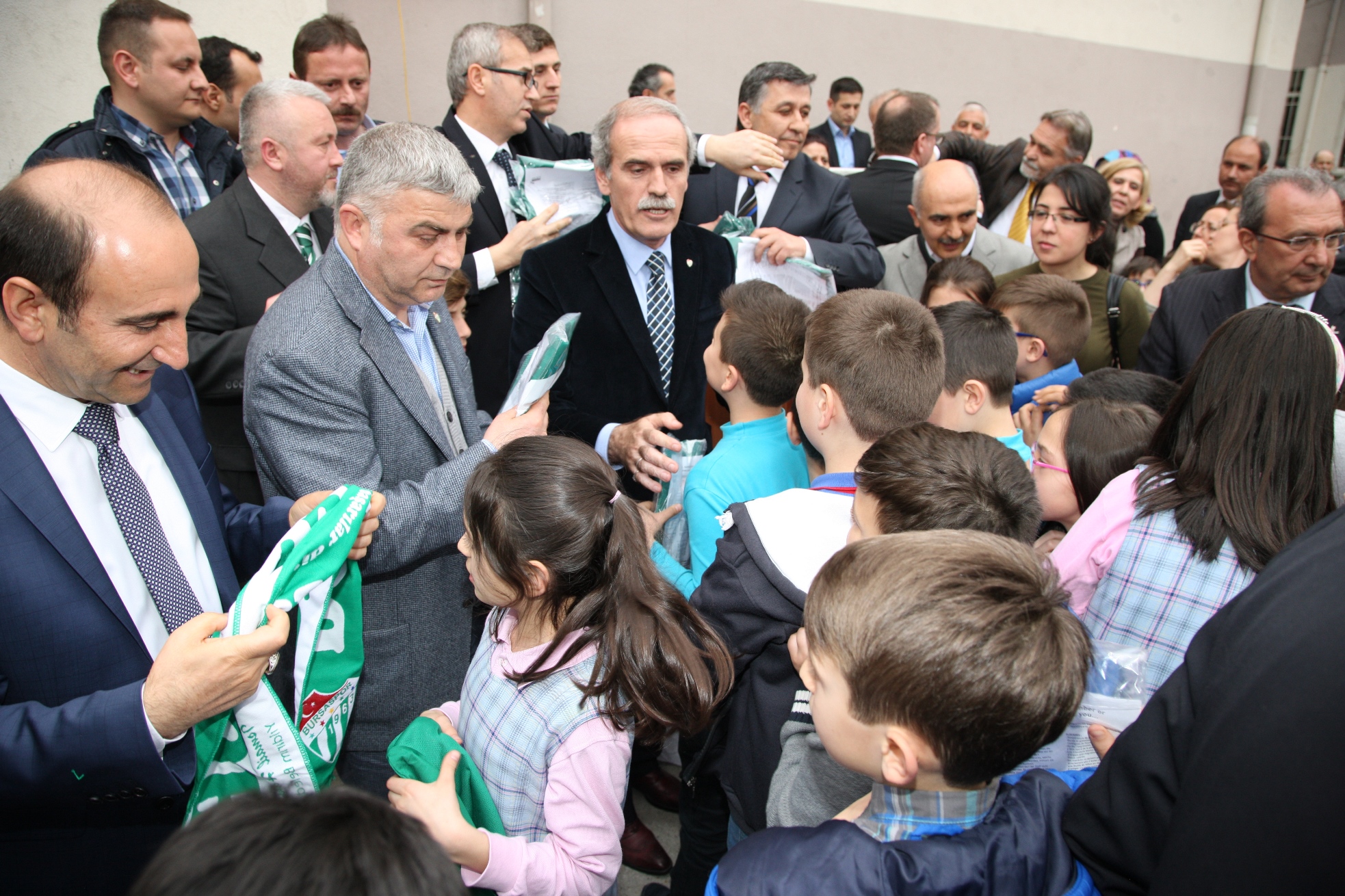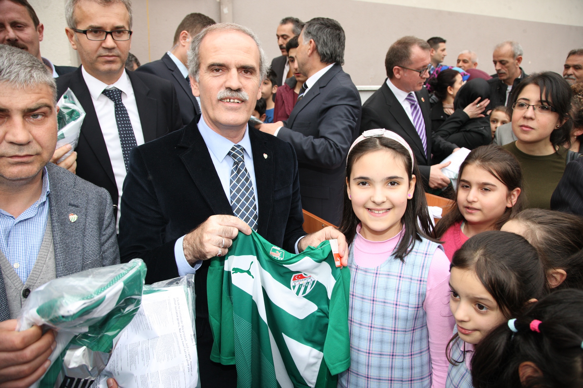 Törende; Yıldırım Belediye Başkanı İsmail Hakkı Edebali, Kaymakam Mehmet Aydın, Bursaspor Alt yapı Sorumlusu Ali Turan ve Okul Müdürü Bilal Taşçı da birer konuşma yaptı. Konuşmacılar, Bursa ve Bursaspor’a verdiği destekler nedeniyle Başkan Altepe’ye teşekkür etti. Konuşmaların ardından protokol üyeleri, Bursaspor forması ve atkısından oluşan paketleri öğrencilere dağıttı.