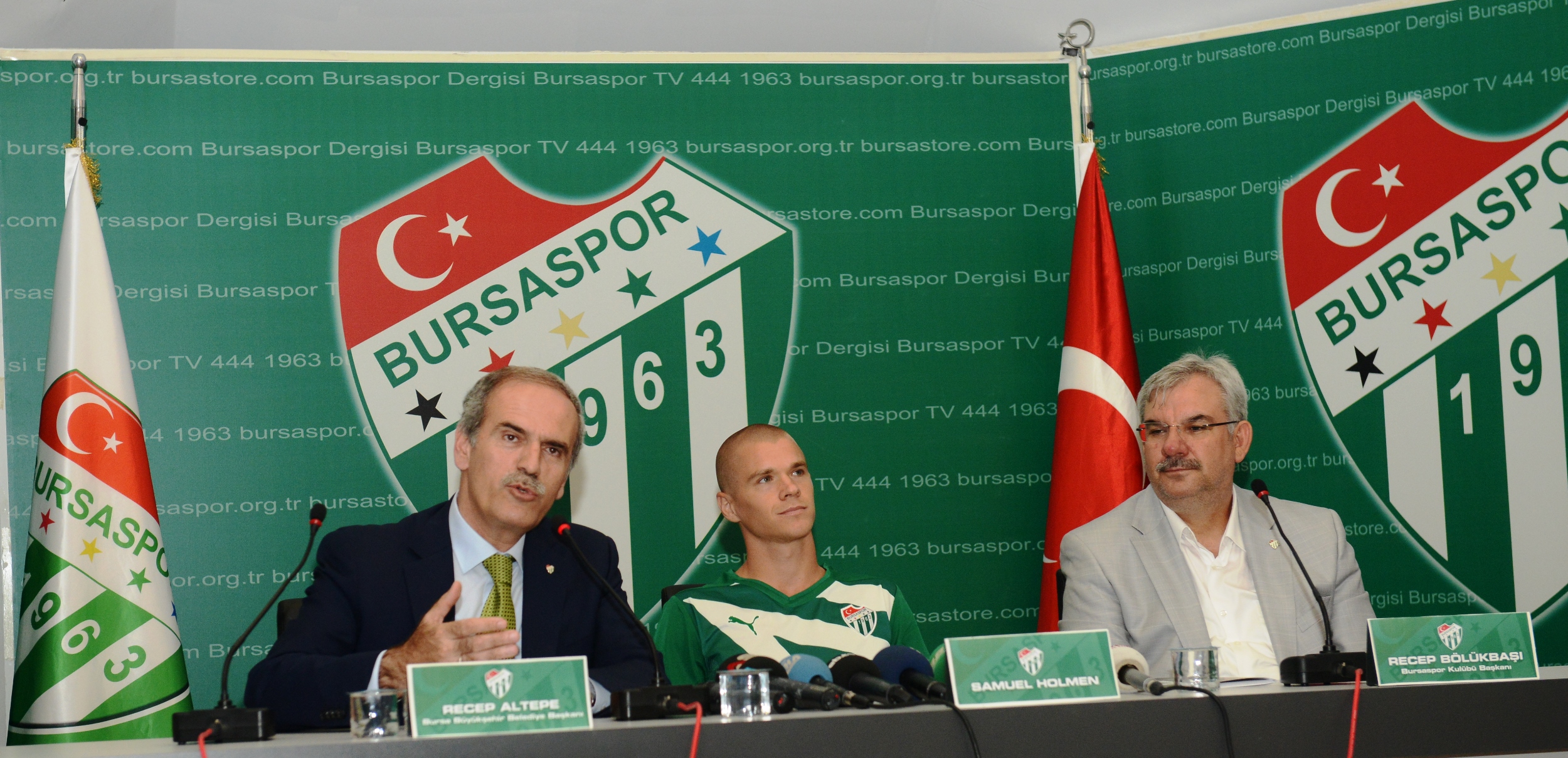 Bursaspor, prensipte anlaştığı İsveçli yıldız Samuel Holmen ile Özlüce Tesisleri’nde 1 yıllık sözleşme imzaladı. İmza törenine Bursa Büyükşehir Belediye Başkanı Recep Altepe, Bursaspor Başkanı Recep Bölükbaşı ve yeşilbeyazlı yönetim katıldı.