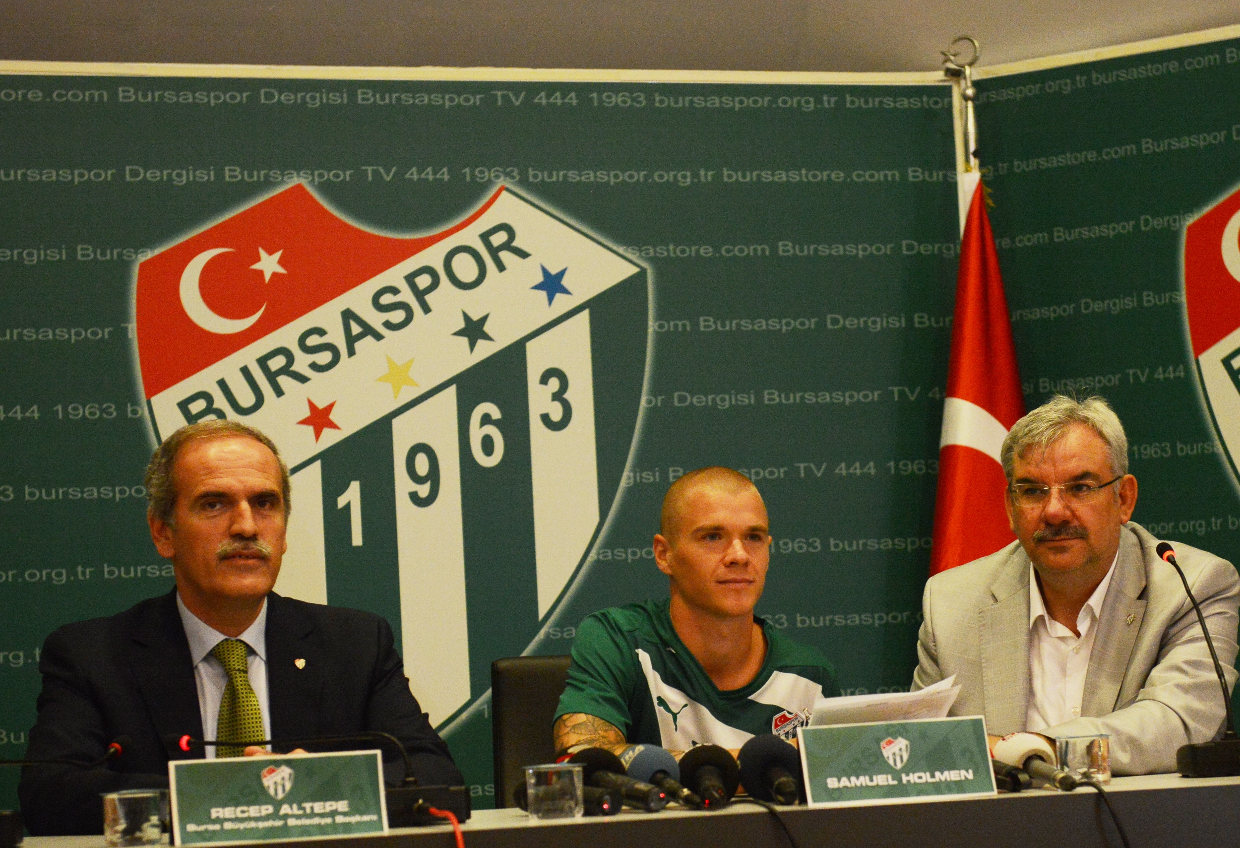 İsveçli yıldız Samuel Holmen ise, “Geçen sene benim için zor bir sezon oldu. Çünkü istediğim kadar maç oynayamadım. Daha fazla maç oynamak istediğim bir kulübe geldim. Bursaspor benim için en iyi seçenekti. Muhteşem taraftarı olan çok büyük bir kulüp. İyi futbol oynamayı isteyen ünlü bir teknik adama sahip. Burada olduğum için çok mutlu ve heyecanlıyım. En kısa zamanda takımıma katılmayı hedefliyorum. Çok mutluyum gerçekten” dedi.