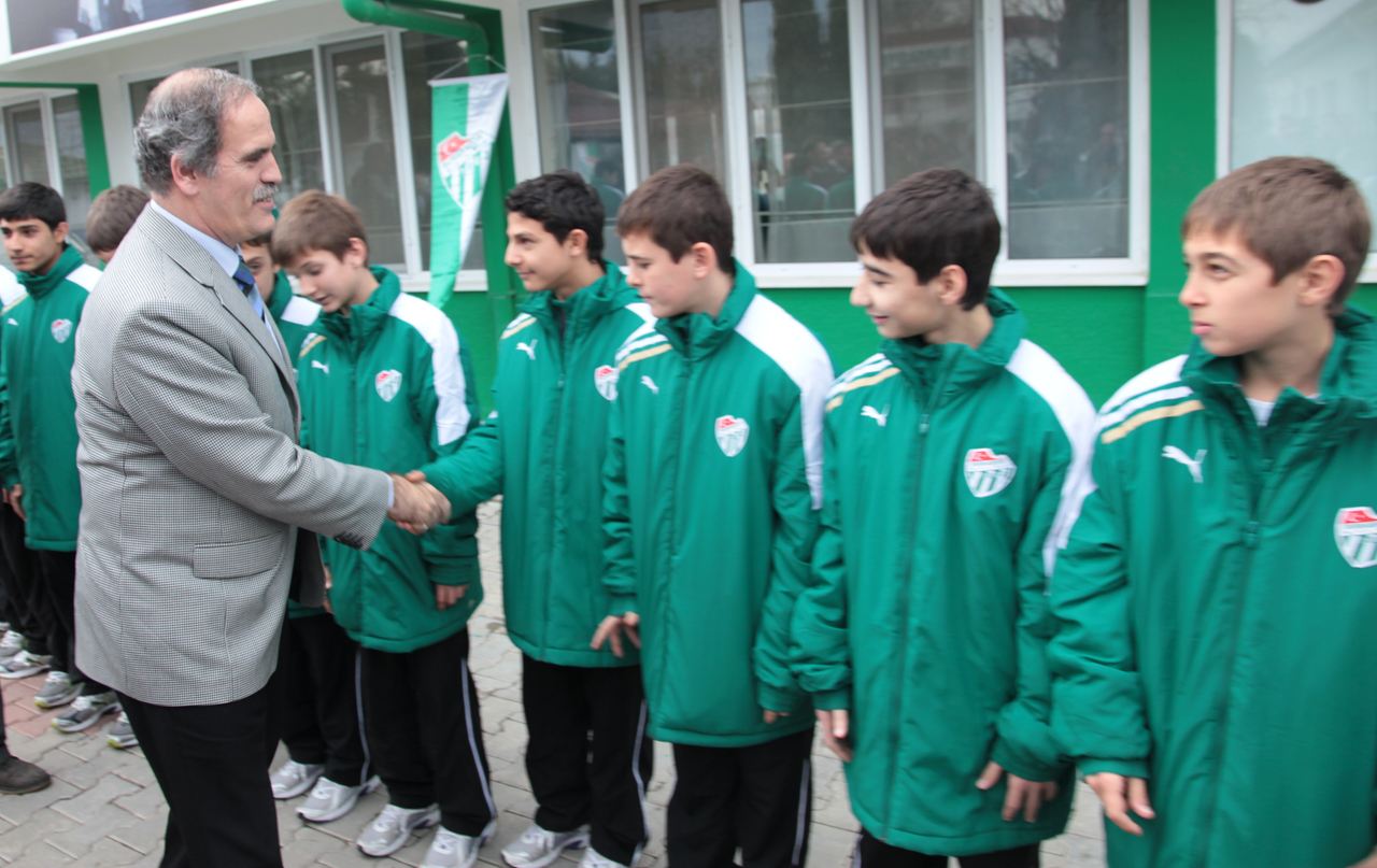 Bursa’nın spor kenti kimliğini öne çıkarmak için Bursaspor başta olmak üzere tüm amatör spor kulüplerine tesisleşme konusunda destek sağlayan Büyükşehir Belediyesi’ne bir teşekkür de Bursaspor Kulübü Yönetimi’nden geldi. Bursaspor Kulübü Başkanı İbrahim Yazıcı, Teknik Direktör Ertuğrul Sağlam ve yönetim kurulu üyeleri, Vakıfköy Tesisleri’nin sil baştan yenilenmesine katkı sağlayan Büyükşehir Belediye Başkanı Recep Altepe’yi Vakıfköy Tesisleri’nde ağırladı. Tesislerin girişinde Kulüp Başkanı Yazıcı, Teknik Direktör Sağlam ve yönetim kurulu üyeleri tarafından karşılanan Başkan Altepe, daha sonra teknik ve idari kadro ile yemek yedi.